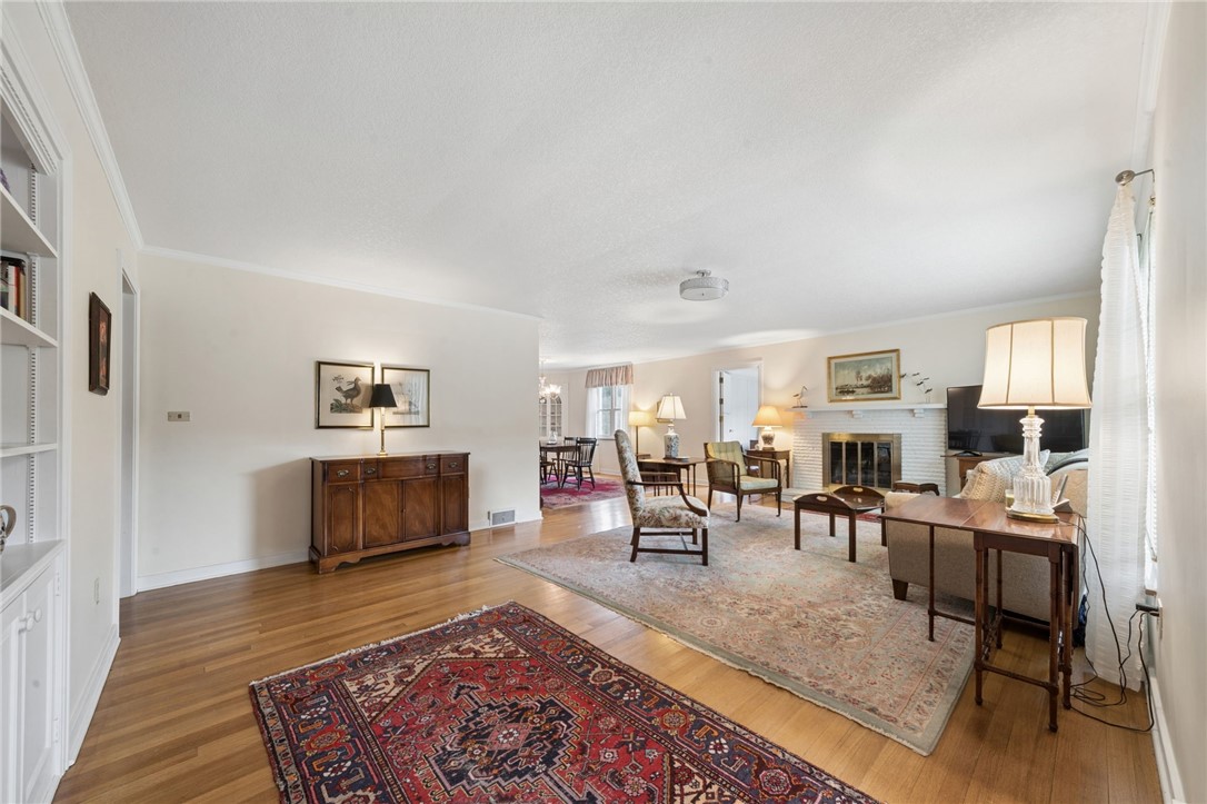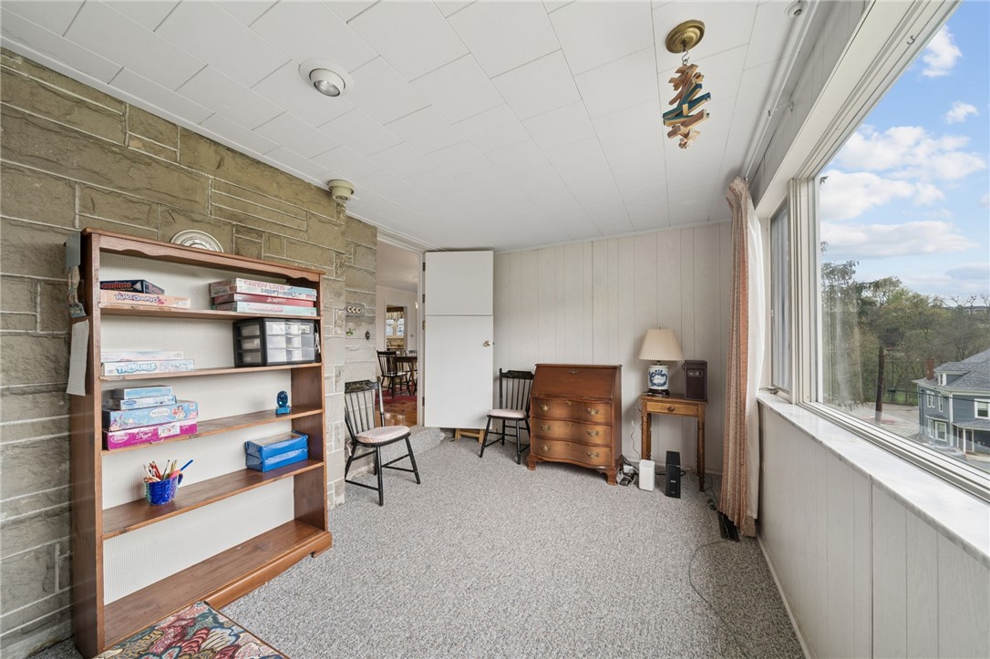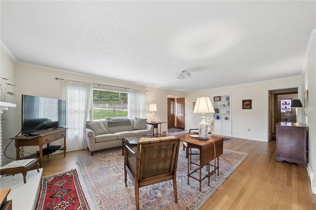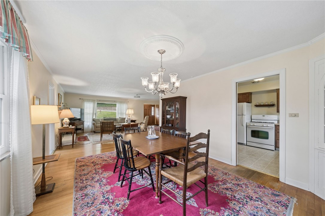 Classic charm meets an unbeatable location in this solid cut stone ranch tucked away at the end of a quiet street in Academy Hill, Greensburg. This well-maintained home offers an expansive living room filled with natural light from a large picture window and anchored by a cozy fireplace, seamlessly flowing into the formal dining room featuring timeless built-in corner cupboards. There are beautiful hardwood floors throughout. The fully equipped kitchen provides ample cabinetry and workspace, while a versatile first-floor den or home office offers flexibility for today's lifestyle. Spacious bedrooms and a ceramic tile bath complete the main level. The finished daylight, walk-out lower level adds valuable living space with a convenient half bath and shower - perfect for entertaining, guests, or a recreation area. Step outside to enjoy the level backyard and charming flagstone patio, ideal for relaxing or hosting gatherings. An integral garage adds to the home's functionality and convenience. Located within walking distance to the museum, local shops, and restaurants, this home offers the perfect blend of classic character, comfort, and accessibility in one of Greensburg's most desirable neighborhoods. A 1 Year Guard Home Warranty is included for peace of mind.