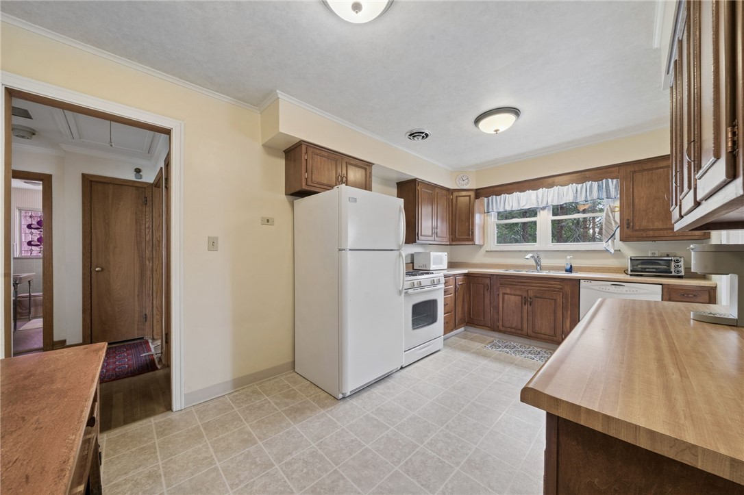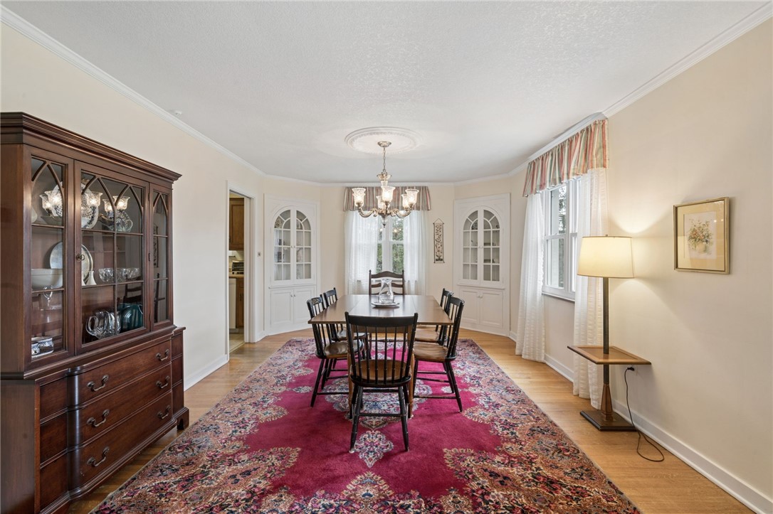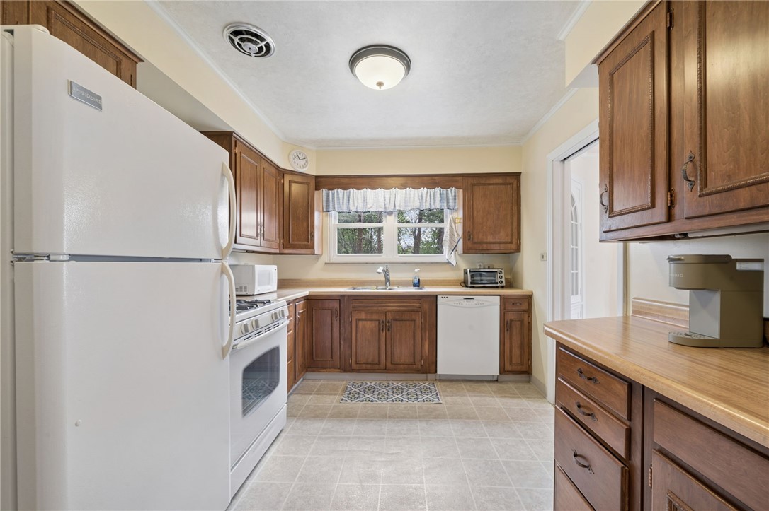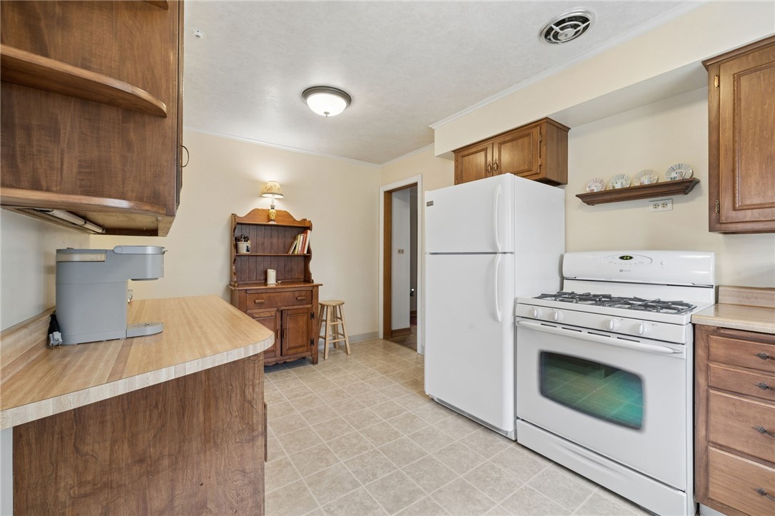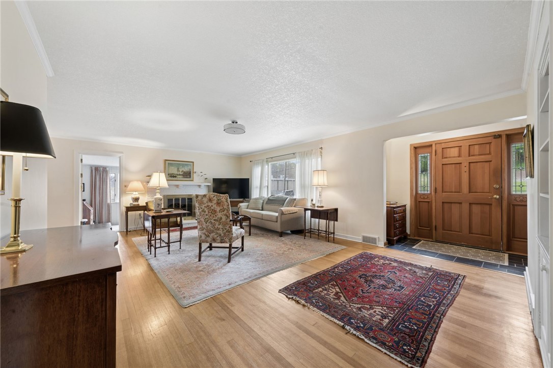 Classic charm meets an unbeatable location in this solid cut stone ranch tucked away at the end of a quiet street in Academy Hill, Greensburg. This well-maintained home offers an expansive living room filled with natural light from a large picture window and anchored by a cozy fireplace, seamlessly flowing into the formal dining room featuring timeless built-in corner cupboards. There are beautiful hardwood floors throughout. The fully equipped kitchen provides ample cabinetry and workspace, while a versatile first-floor den or home office offers flexibility for today's lifestyle. Spacious bedrooms and a ceramic tile bath complete the main level. The finished daylight, walk-out lower level adds valuable living space with a convenient half bath and shower - perfect for entertaining, guests, or a recreation area. Step outside to enjoy the level backyard and charming flagstone patio, ideal for relaxing or hosting gatherings. An integral garage adds to the home's functionality and convenience. Located within walking distance to the museum, local shops, and restaurants, this home offers the perfect blend of classic character, comfort, and accessibility in one of Greensburg's most desirable neighborhoods. A 1 Year Guard Home Warranty is included for peace of mind.