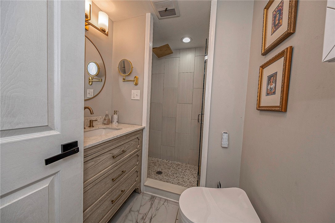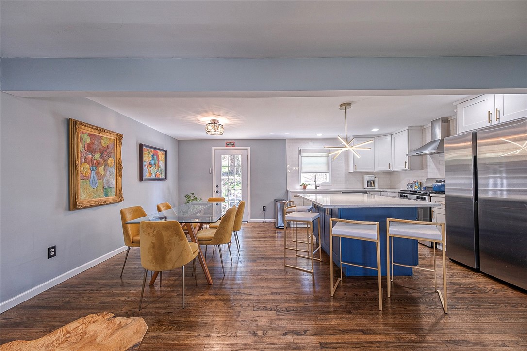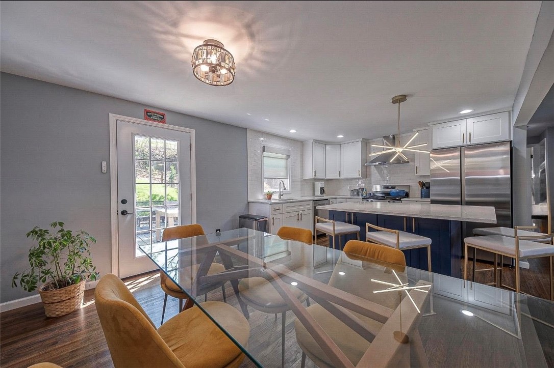 Welcome to this stunning, fully renovated gem situated in a great neighborhood just minutes from local schools and shopping. Every inch of this home was meticulously updated less than three years ago, offering an open floor plan that seamlessly connects the main living areas for modern lifestyles. The gourmet kitchen and dining area flow directly onto a spacious rear deck, perfect for indoor-outdoor entertaining overlooking the yard. The primary suite, a bedroom and a powder room complete the first floor. The upper level host two generous bedrooms and a full bathroom, providing ample space and privacy for everyone. Downstairs, the professionally finished basement serves as the ultimate retreat, complete with a custom bar and extensive storage solutions to keep your home organized. Practicality meets curb appeal with an integral garage and an impressive extended driveway that accommodates multiple vehicles. This turn-key residence combines high-end finishes with a functional layout in one of the area's most convenient locations.