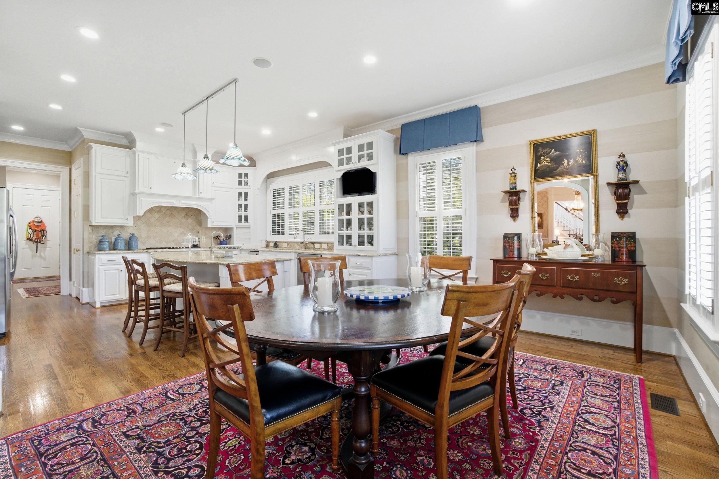 Stunning all-brick estate situated on a beautifully landscaped 0.5-acre corner lot in one of Columbia's most desirable neighborhoods. This one-owner home offers close to 6,000 sq ft of timeless elegance, with 4 spacious bedrooms, 4.5 baths, and an oversized 3-car garage with additional storage. High ceilings, heavy custom molding, and plantation shutters accentuate the sophisticated design throughout. The gourmet kitchen features granite countertops, double ovens, custom cabinetry, and a large island that opens to a bright breakfast area. Multiple living and entertaining spaces include a formal dining room, library with custom built-ins, and great room with a fireplace. The backyard is an entertainer's dream with a private, fenced oasis featuring a Gunite pool and fully equipped cookhouse, featuring a built-in gas grill, power burner, XL Primo ceramic grill, refrigerator, wood-burning fireplace, bath, and storage rooms - all under a beautiful wood-paneled ceiling with electric infrared heaters for year-round enjoyment. Immaculately maintained and thoughtfully designed, this property combines classic Southern architecture with luxurious outdoor living - truly a rare opportunity in-town. Disclaimer: CMLS has not reviewed and, therefore, does not endorse vendors who may appear in listings.