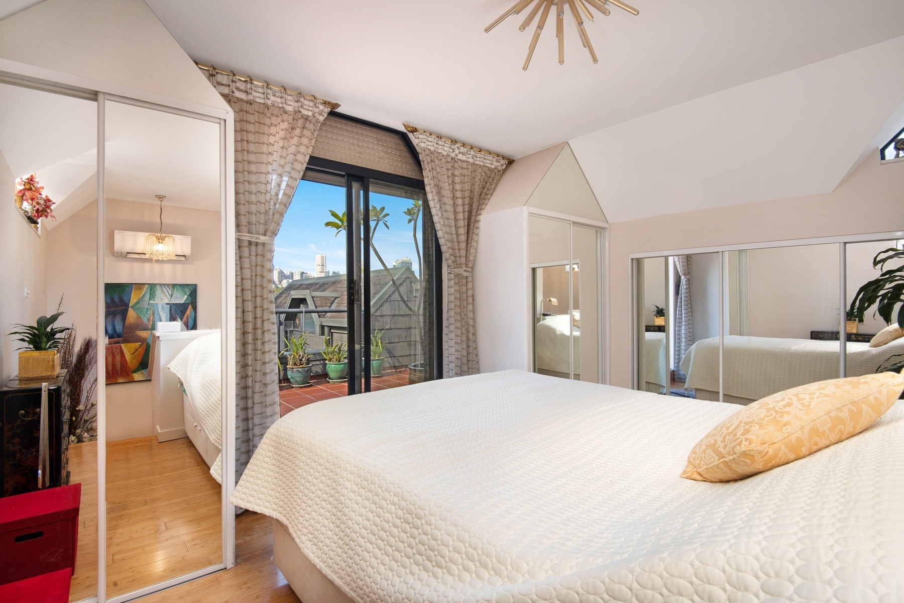 Upper-level master retreat with wide balcony capturing 270° views