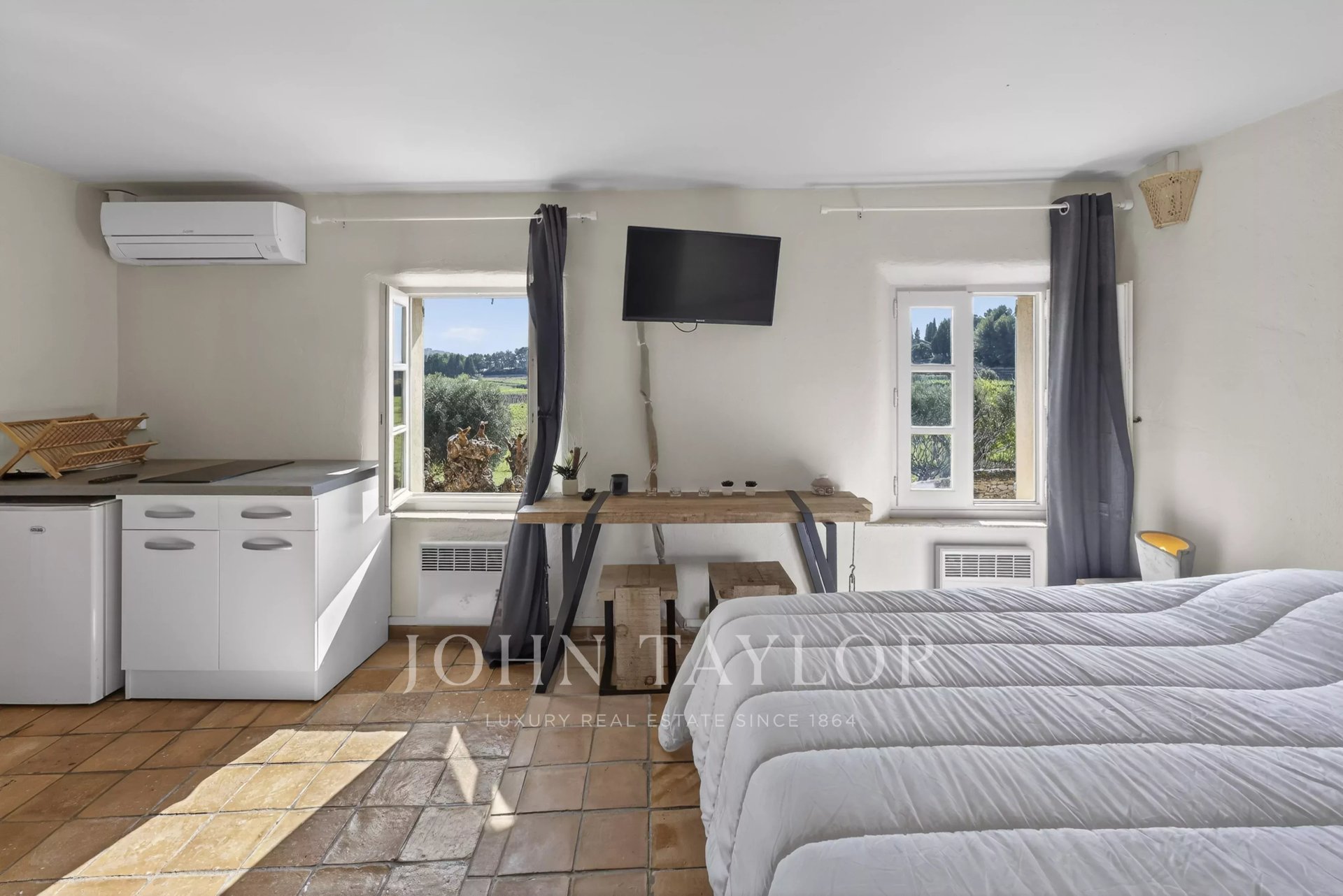 John Taylor is delighted to present this characterful Provençal farmhouse, set in the heart of a preserved natural environment, just a few minutes from the village of Le Castellet and 15 minutes from the beaches.Combining the authentic charm of traditional stone with contemporary comfort, this rare property offers remarkable versatility of use.A rental activity is already in place, with rental history and operating statements available upon request, ensuring an ideal balance between private residence and hospitality project.The main house features a welcoming living area comprising a lounge with open-plan kitchen, a dining area and a utility room.Upstairs, two bedrooms share a shower room.Two independent studios, each with their own kitchen, shower room, WC and private terrace, provide fully autonomous accommodation for guests or holidaymakers.The outdoor areas, designed as a true invitation to the Provençal art of living, include an infinity pool, a stone cabanon, two charming and atypical summer bedrooms, an outdoor bathroom, a shaded terrace and several parking spaces.The property extends over approximately 2,355 sqm of land, offering absolute peace and privacy.An ideal opportunity as a primary or secondary residence, or for a high-quality hospitality project.