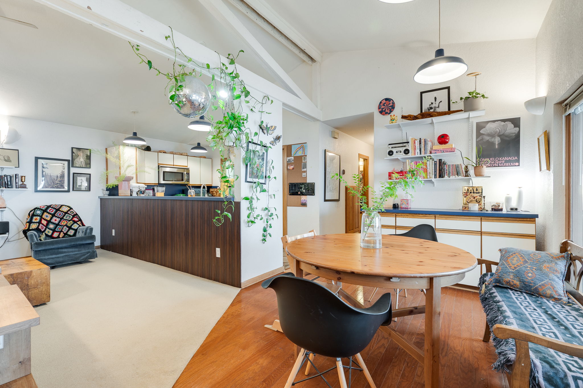 Welcome to a true time capsule in Edgewater Lakepointe! This custom built 1986 home has been impeccably preserved, showcasing its original character and design in every detail. From the moment you enter, you’ll appreciate the intentional layout centered around a private courtyard, with every room thoughtfully oriented to bring in natural light and create a seamless indoor-outdoor experience. The joint living room and kitchen space features soaring vaulted ceilings and a striking freestanding wood-burning fireplace, anchoring the room with warmth and architectural flair. The spa-like primary suite is its own retreat, complete with a soaking tub and a lofted space with private sauna. An oversized closet connects directly to the laundry room, adding an extra layer of everyday convenience and thoughtful functionality. The home includes two additional sizable bedrooms and a full bathroom, providing flexibility for guests, family, or additional workspace. Designed well ahead of its time, the home features a dedicated office wing, offering the ideal work from home setup with separation and privacy from the main living areas. This home is more than just a residence, it is a rare architectural experience, blending vintage charm with functional design that still feels relevant today! Whether you’re drawn to its originality, its peaceful courtyard setting, or its versatile layout, this property offers something truly special.