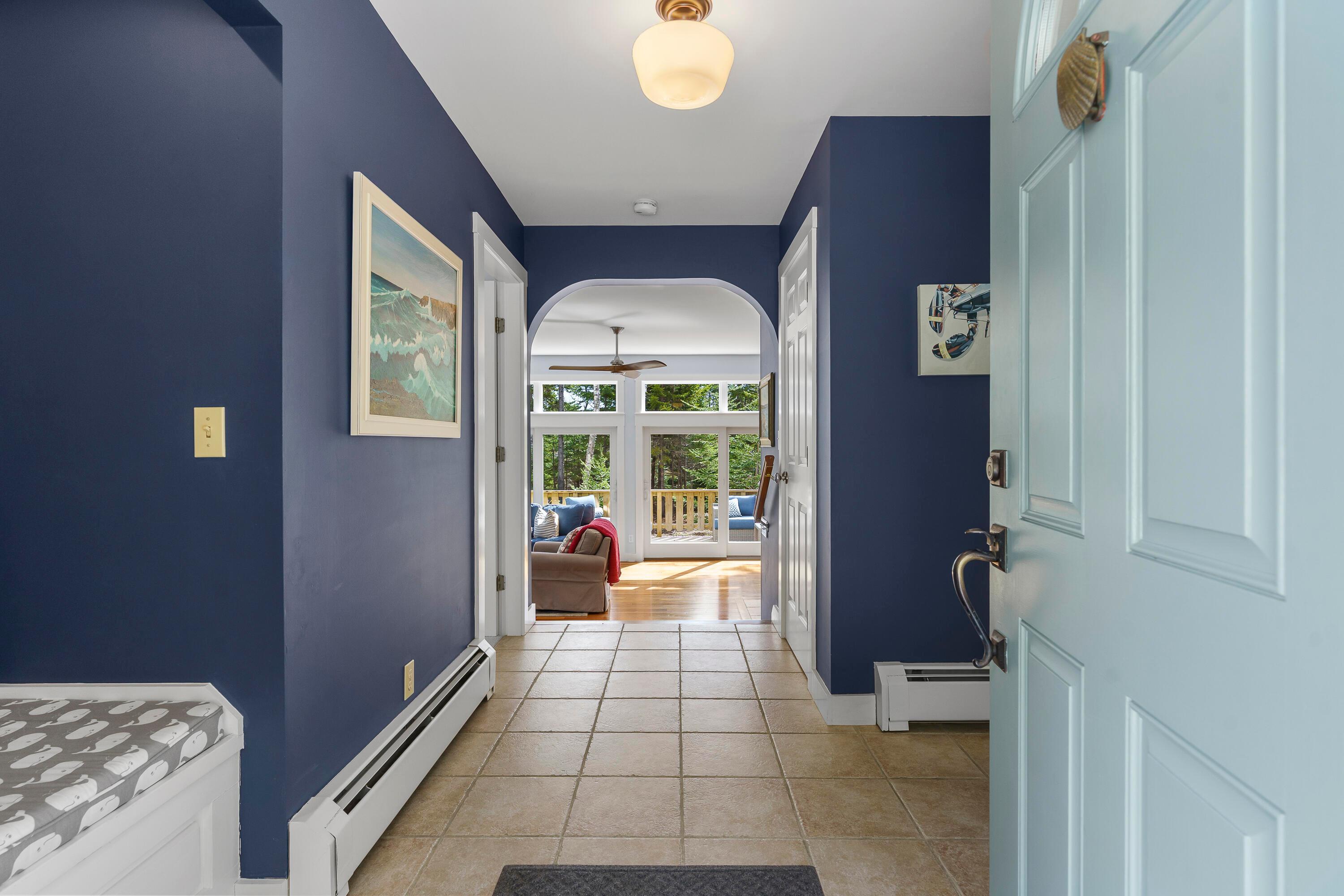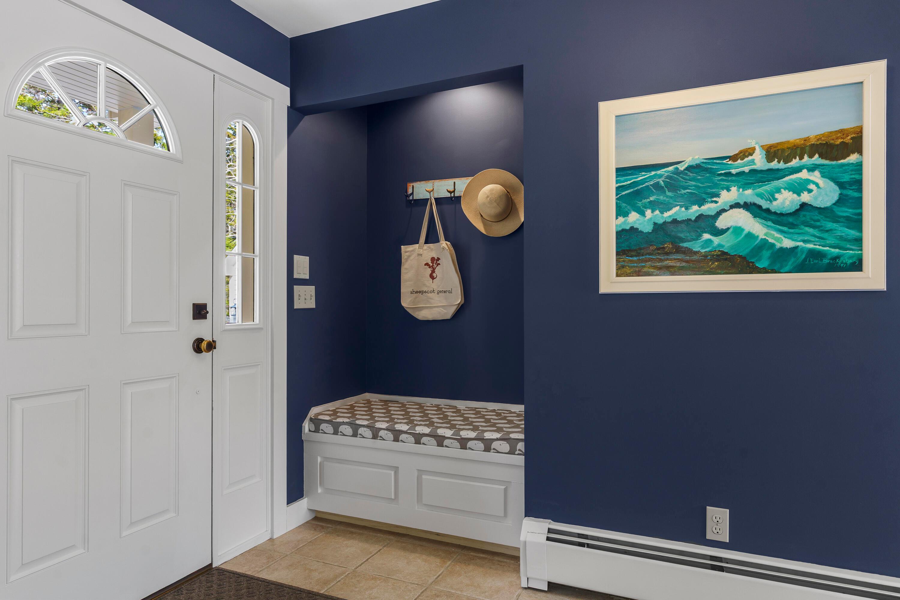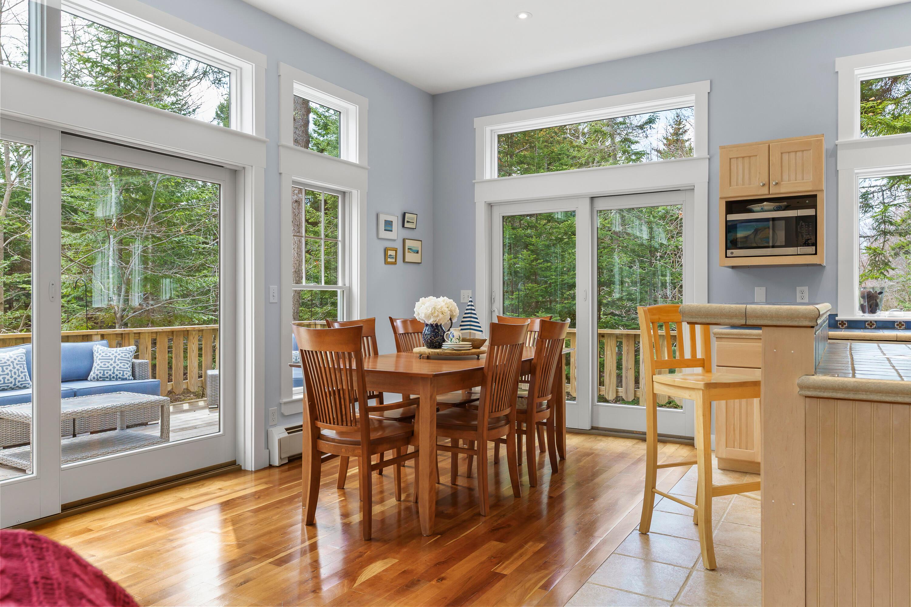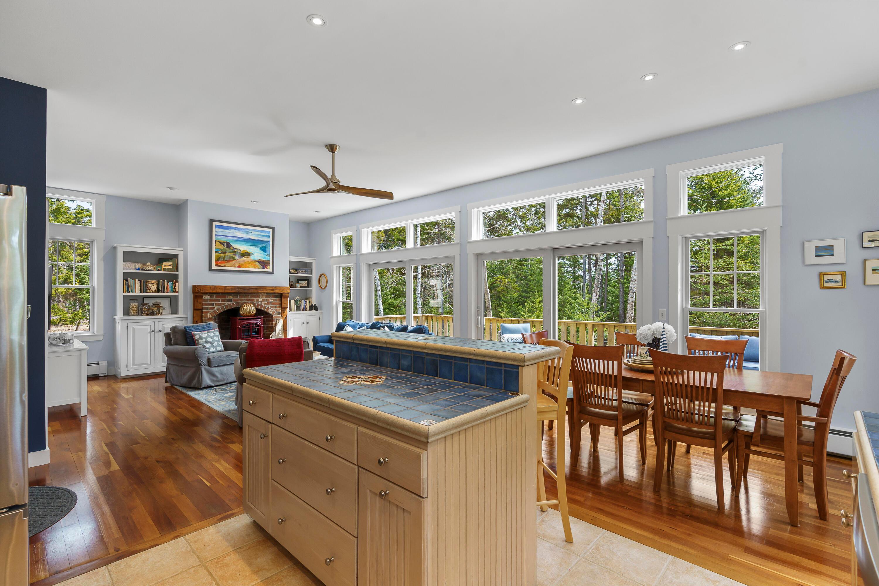A rare opportunity to own a home in the highly sought-after Pumpkin Cove neighborhood in Bristol, this charming residence offers a deeded right-of-way to the picturesque shores of Pumpkin Cove. Built in 2003, the home is thoughtfully designed with an open floor plan, soaring ceilings, and dramatic floor-to-ceiling windows that fill the interiors with natural light, creating an airy and inviting atmosphere. Rich cherry flooring, a Vermont Castings gas fireplace, and a sunlit kitchen with new appliances create a warm yet refined setting ideal for both everyday living and entertaining. An expansive deck extends the living space outdoors, overlooking a private, semi-wooded landscape. The recently expanded lawn and stone patio with fire pit area provide a perfect gathering place, where the scent of ocean air and the sound of waves enhance the coastal experience. The second-floor primary suite offers a serene retreat, featuring a luxurious full bath with a custom designed oversized shower finished with artisan tile and a spacious walk-in closet by Tailored Closets. Flexible layout with 1st floor Bedroom and 2nd floor Bedroom/Office. The home has been meticulously maintained and thoughtfully updated, including fresh interior paint, new luxury carpeting in all bedrooms, and the addition of a whole-house Cummins generator. A recently constructed two-car garage with generous attic space above offers exceptional storage or potential for studio use. Equally suited as a year-round residence, vacation getaway, or investment property, the home has a strong history as a successful summer rental. Set within a small neighborhood of similarly well-kept homes, it offers an easy walk to this quiet dead end road with shared beach perfect for kayaking, picnics, or enjoying sweeping views toward Monhegan Island and sea birds. Just minutes to Pemaquid Lighthouse Park, Pemaquid Beach, a local grocer, art galleries, and restaurants. This home is truly turn-key.