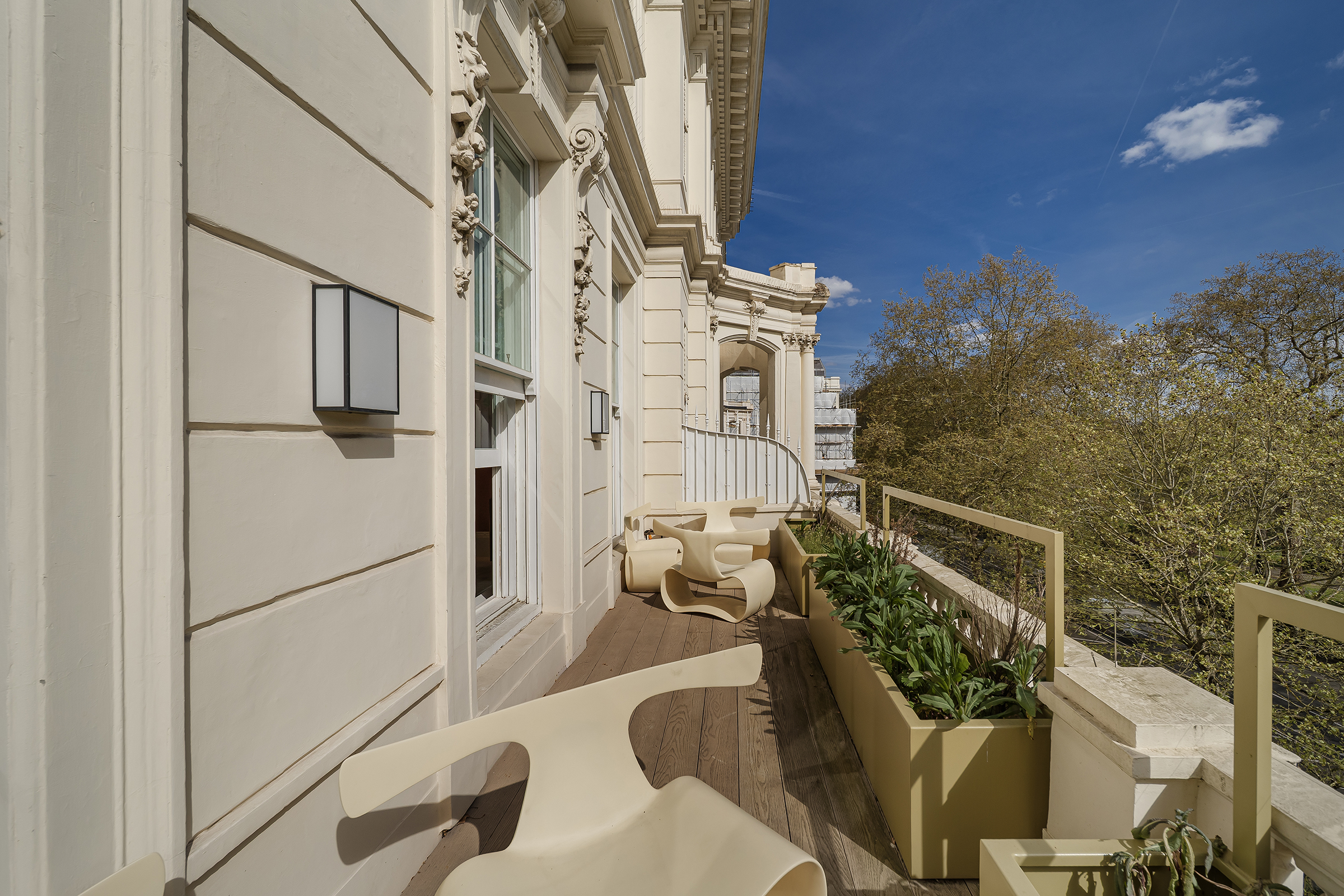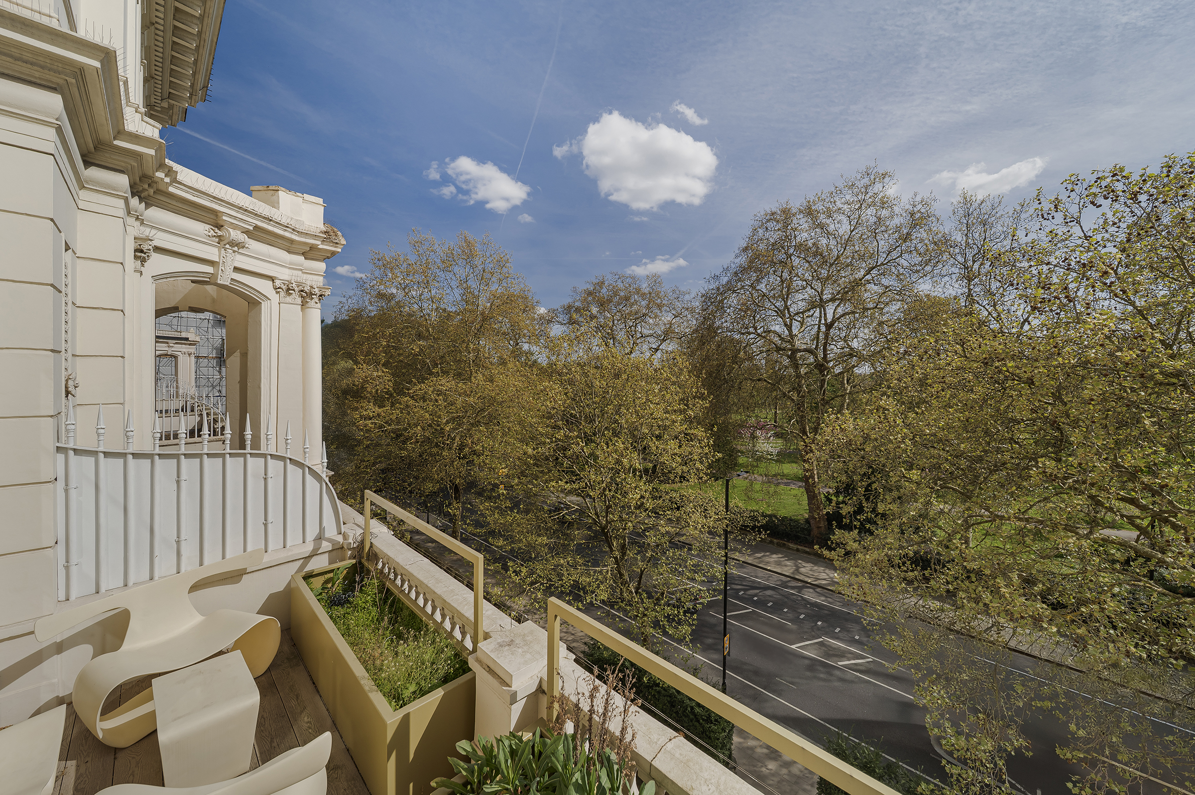 Occupying the second floor of a handsome Grade II listed terrace, this beautifully proportioned three-bedroom apartment pairs rare scale with an unusually joyful sense of style, all set against open views across Hyde Park.