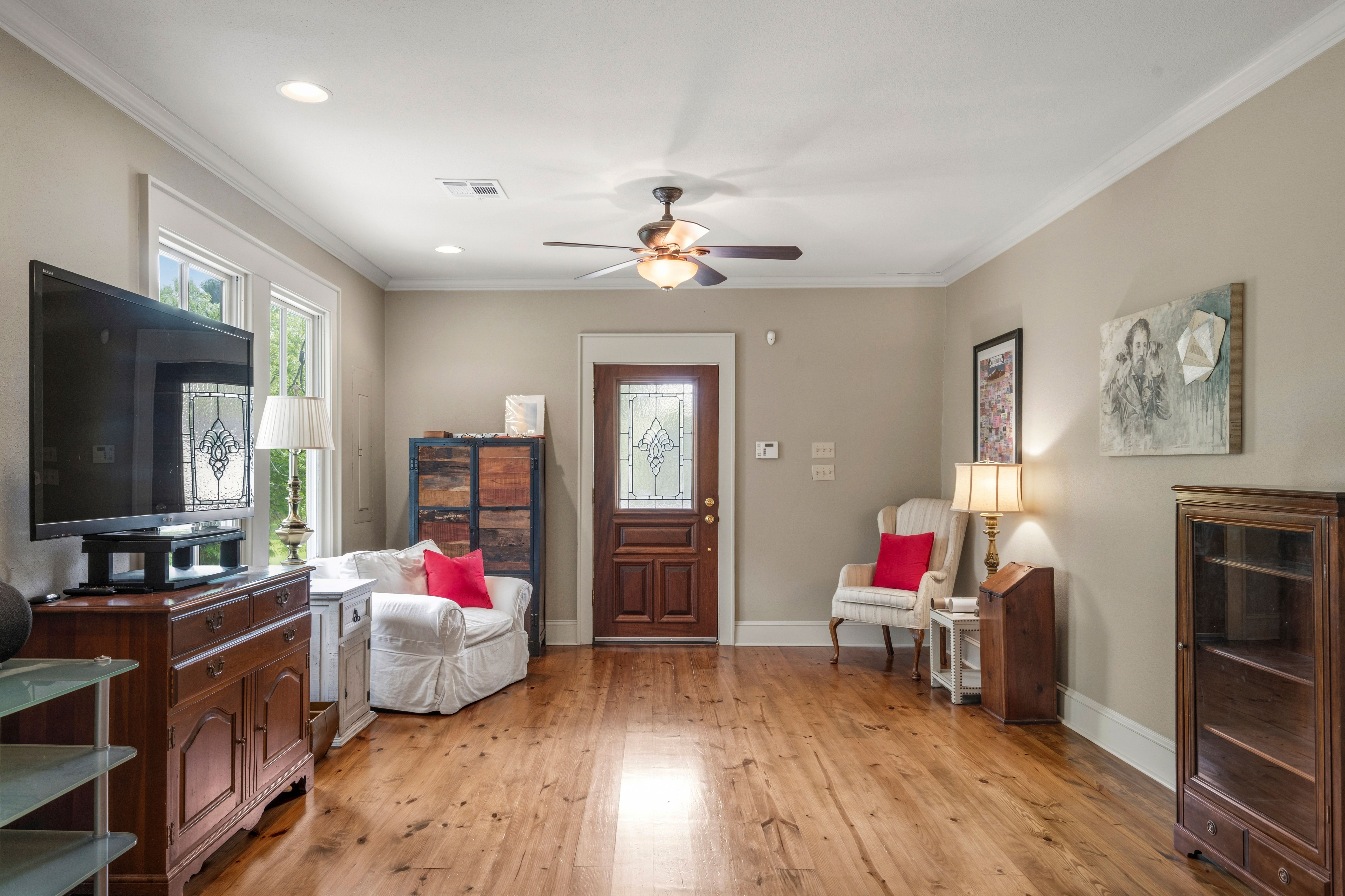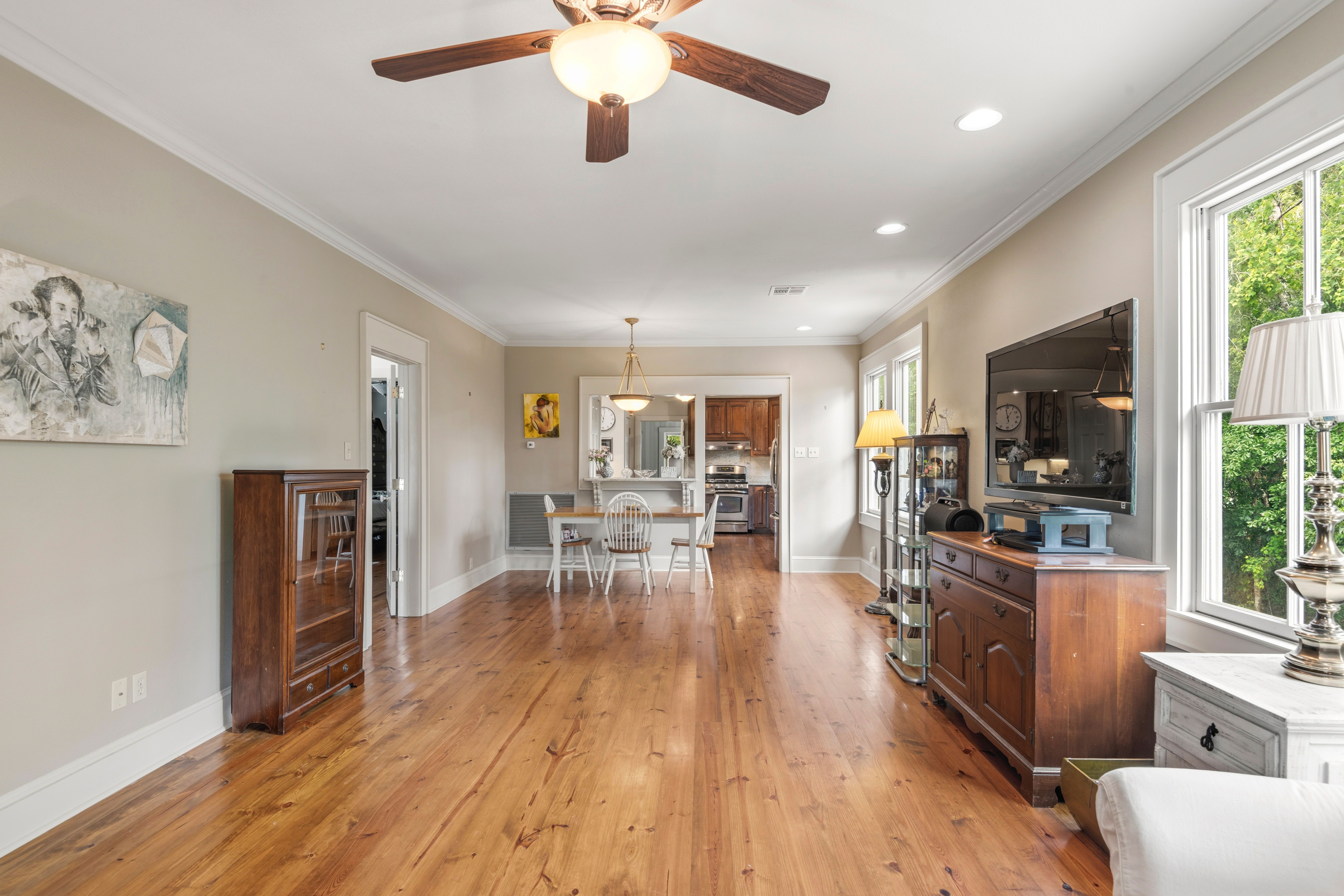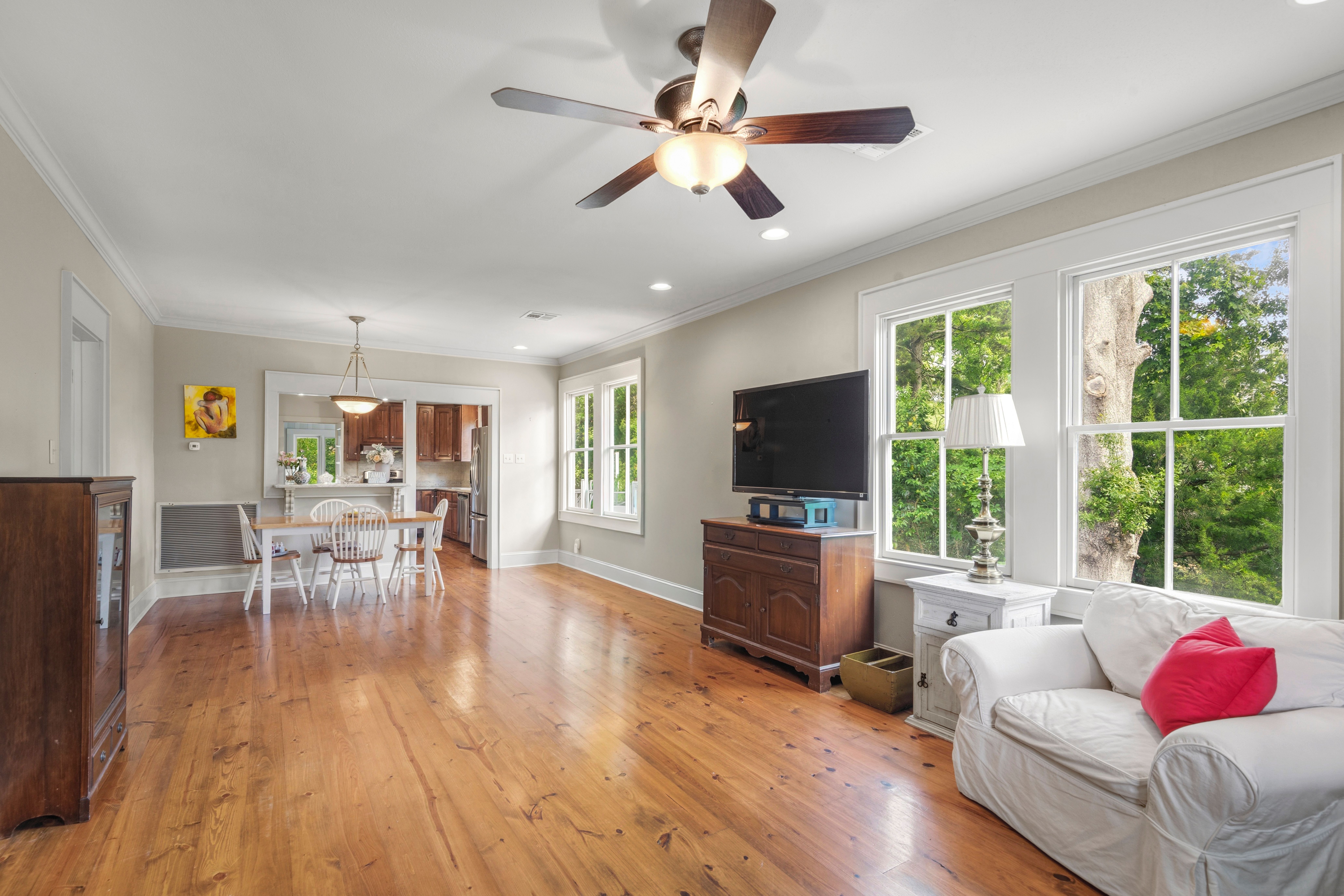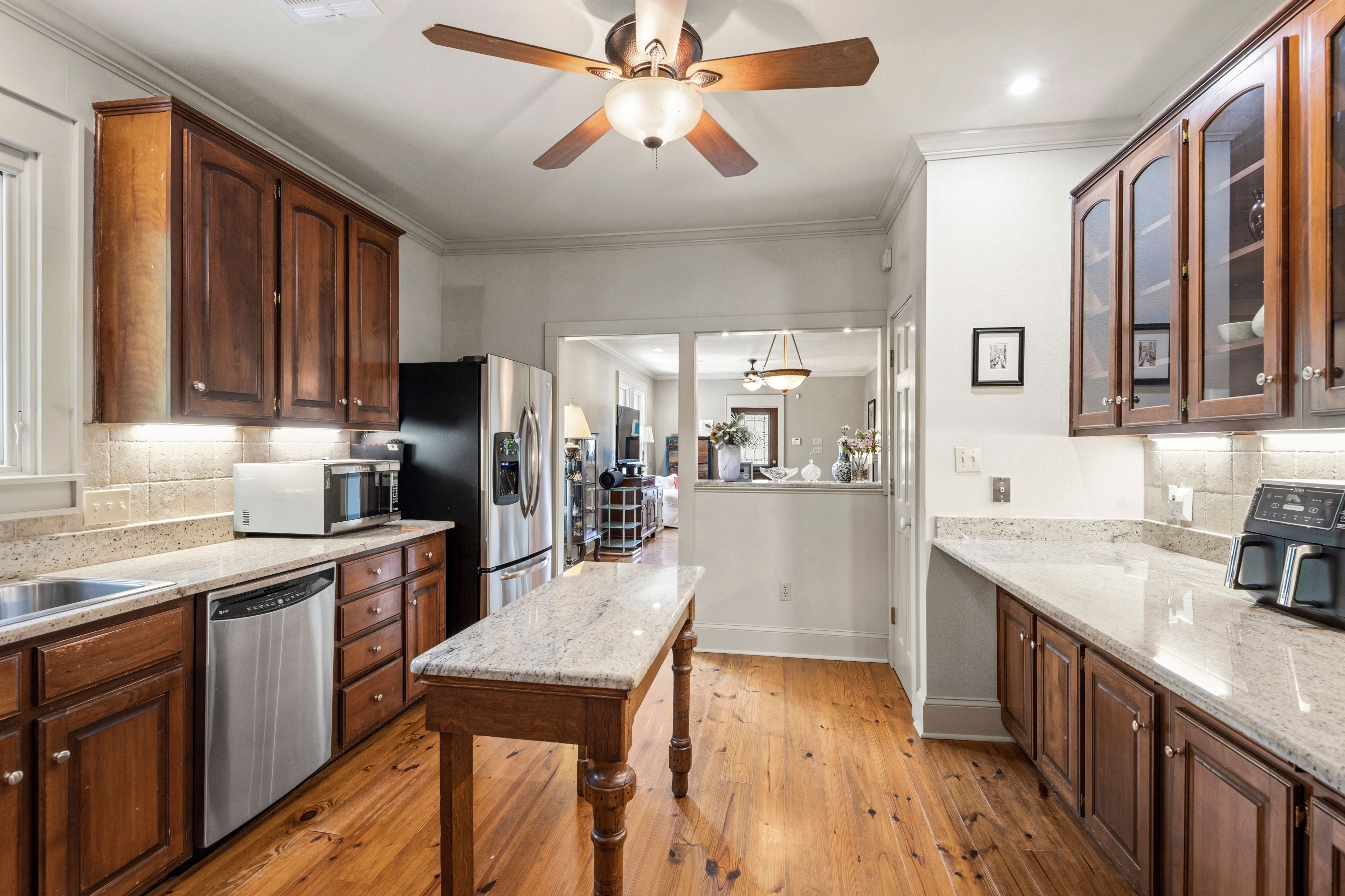 This charming 3-bedroom, 2-bath raised cottage is perfectly situated in the heart of historic downtown Mandeville, just two blocks from the lakefront. Blending classic character with everyday comfort, the home welcomes you with warm hardwood floors and a seamless, easy flow from the entryway through the living, dining, kitchen, and sunroom spaces. The spacious kitchen is a standout, offering abundant storage, generous countertop space, and stainless steel appliances—ideal for both everyday living and entertaining. Natural light fills the interiors, enhancing the inviting atmosphere and making each room feel connected yet distinct. The layout is perfectly suited for relaxed living or hosting guests. Outdoor spaces are just as appealing, with a delightful front porch that captures the charm of the neighborhood and an expansive back deck designed for entertaining, dining, or simply enjoying quiet evenings. This home offers the perfect balance of location, character, and livability.