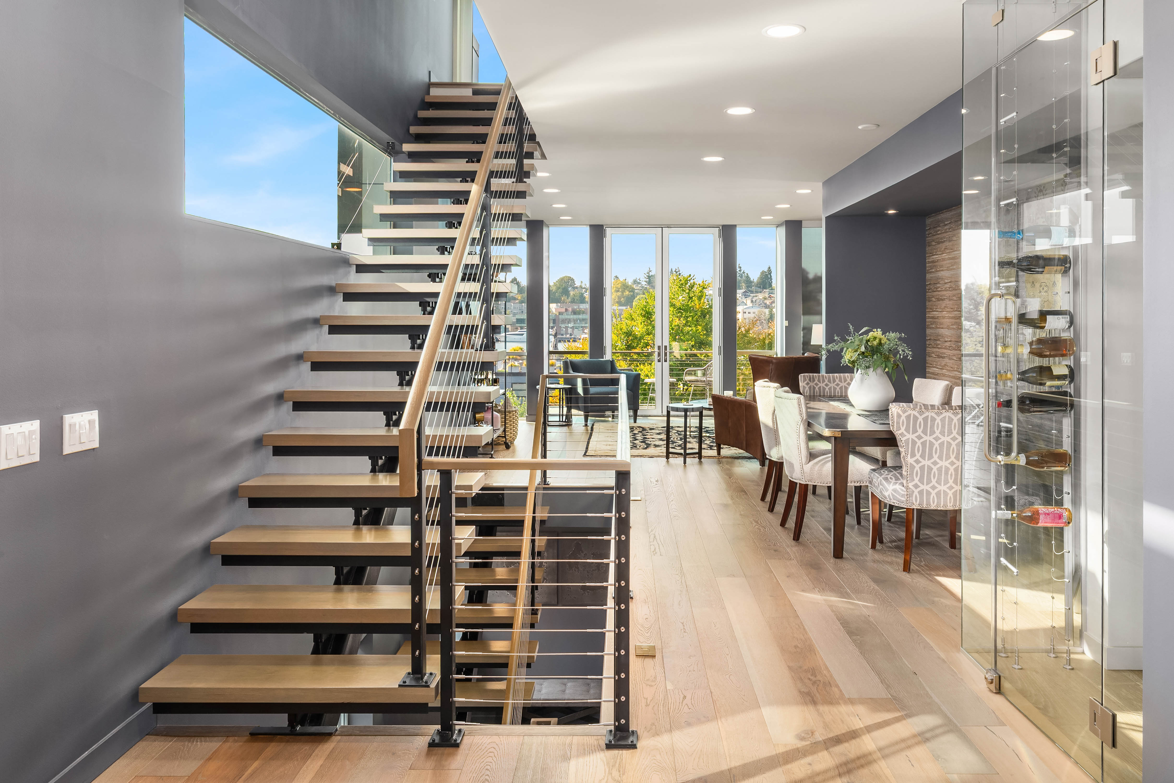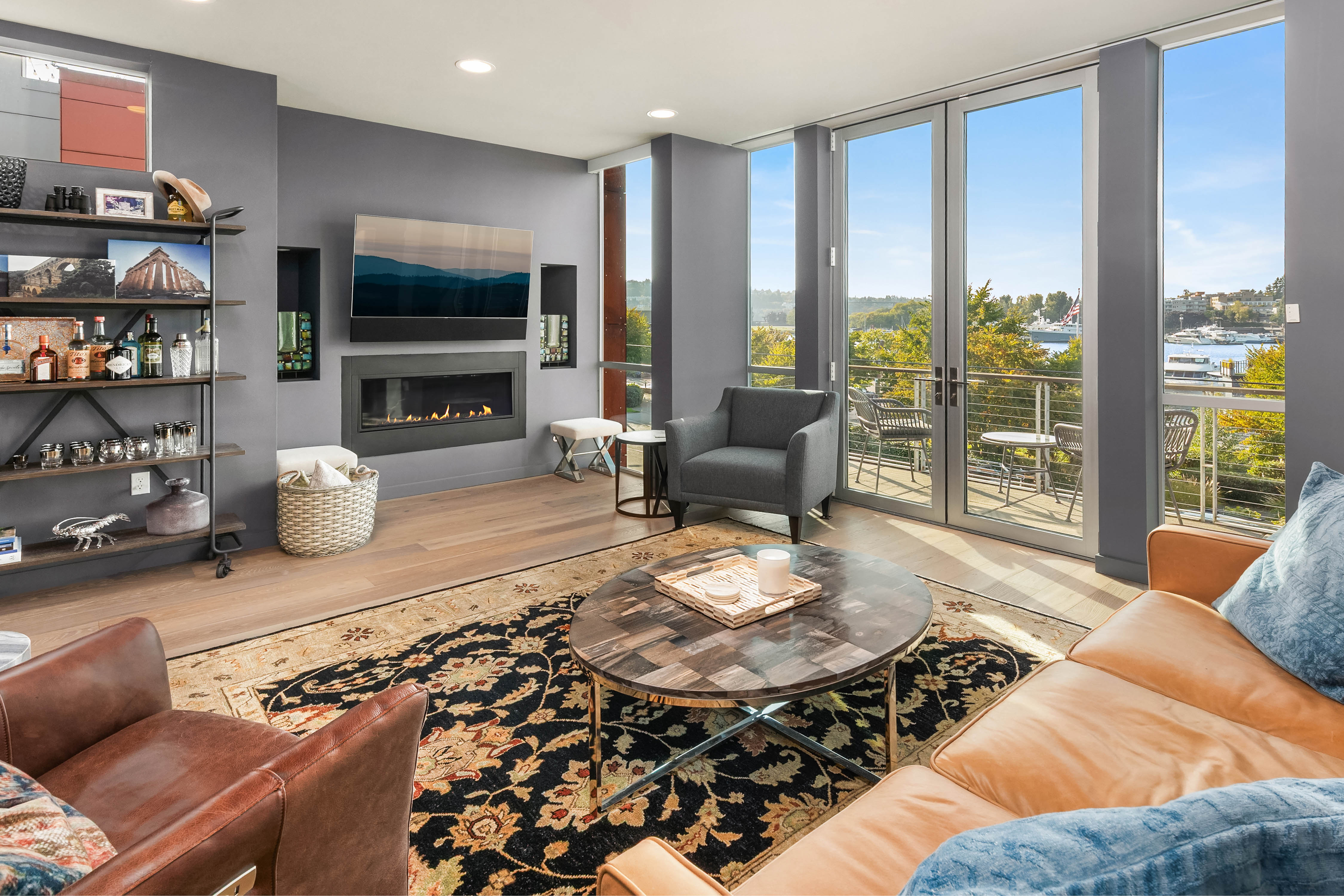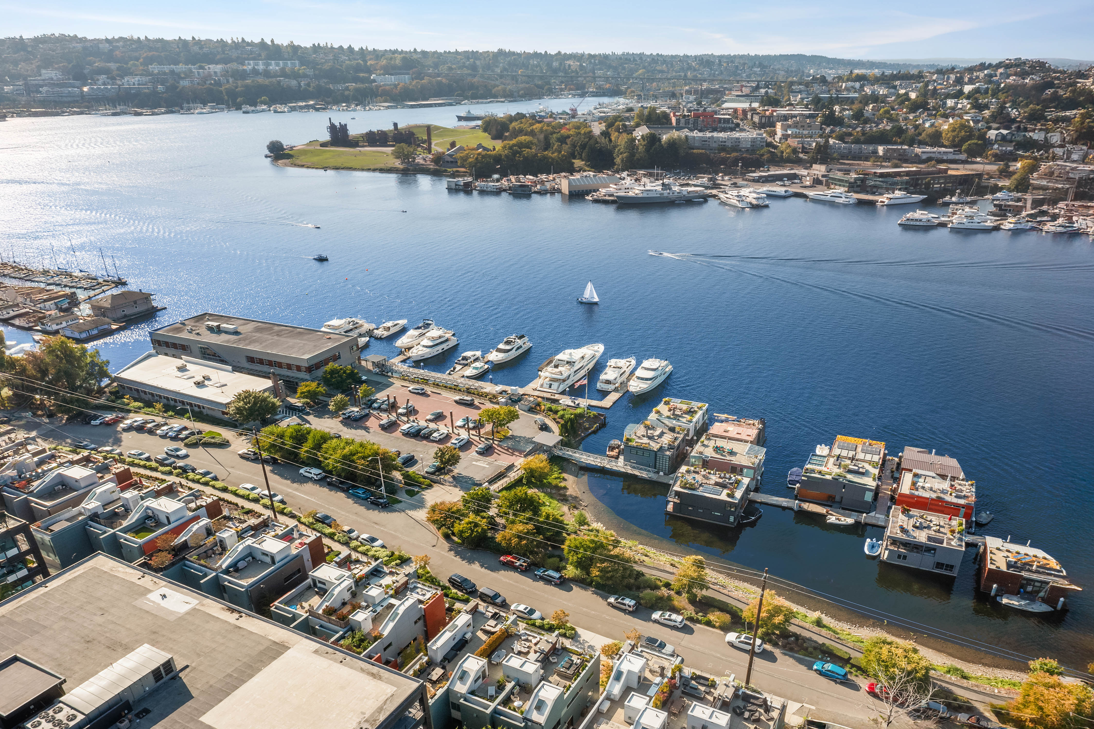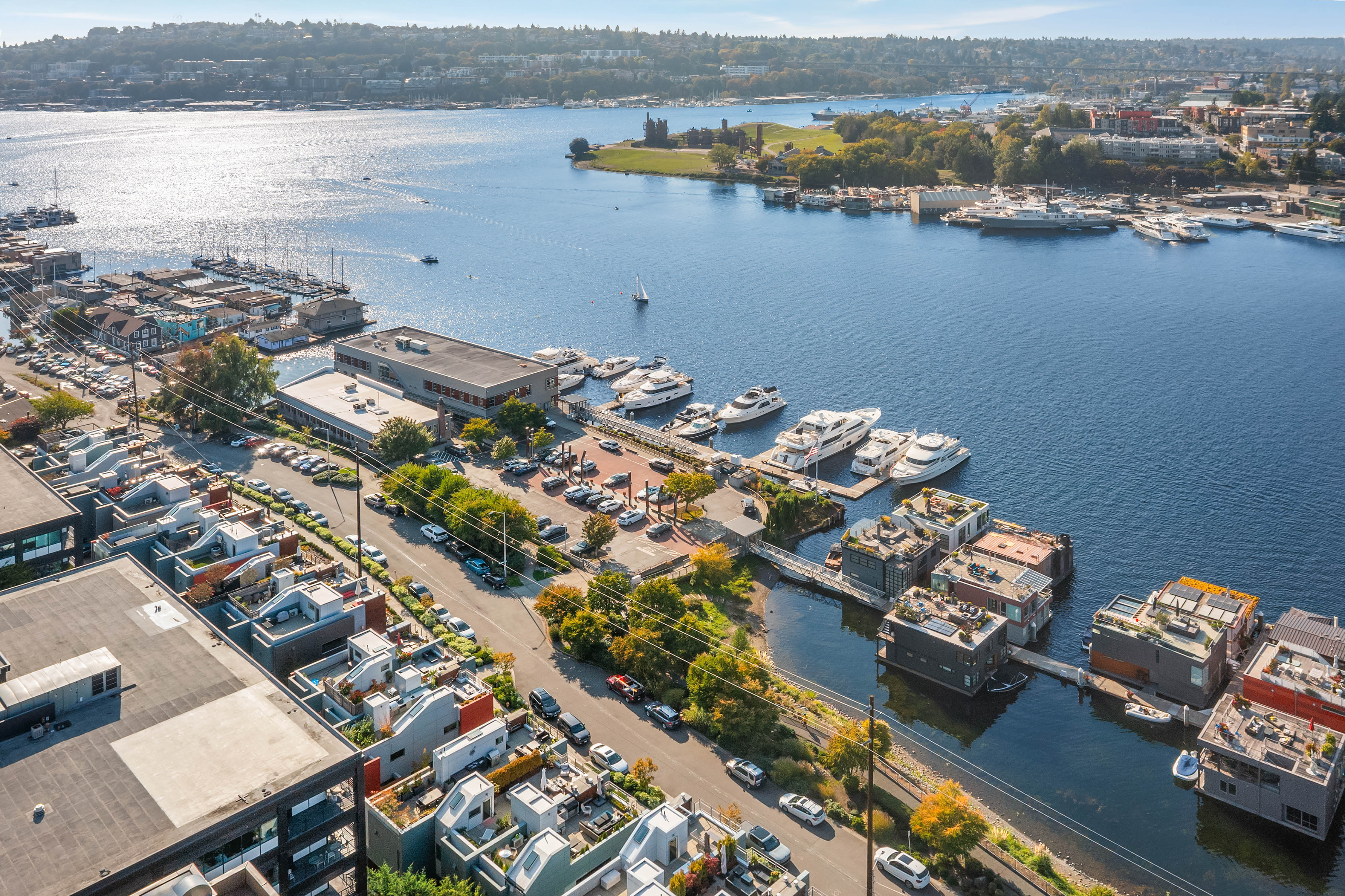 Enjoy seaplanes landing on Lake Union, increasable sweeping views of the lake, and the downtown Seattle skyline. High-end design throughout with over $100,000 in personalized designer upgrades. Truly a wonderful home. A chef’s dream kitchen with a sitting area to share with family and friends. Commercial-grade appliances including WOLF and SUB-Zero, quartz countertops, large island, and lots of cabinets. The living room enjoys the delightful views and is accentuated by a metal-clad gas fireplace. Next to the custom dining room you will find a climate-controlled glass wine room. Very cool.. On the first floor are two bedrooms, the west facing bedroom features a uniquely private patio. Perfect for those coffee mornings. The primary bedroom features a wall of windows, walk-in closet, and spa-inspired 5-piece bath with heated floors. A genuinely stunning rooftop deck with built-in BBQ and fireplace captures unobstructed views of Lake Union and skyline. A two-car garage, electric blinds and hardwood flooring throughout the home. Owners enjoy access to Ward Cove Marina amenities including moorage, fitness center, bike storage, and guest suite. Perfect for full-time living or a Seattle retreat. Located in one of Seattle’s most vibrant waterfront communities with easy access to downtown, Fremont / University District, Gasworks Park. Very easy commute as well.