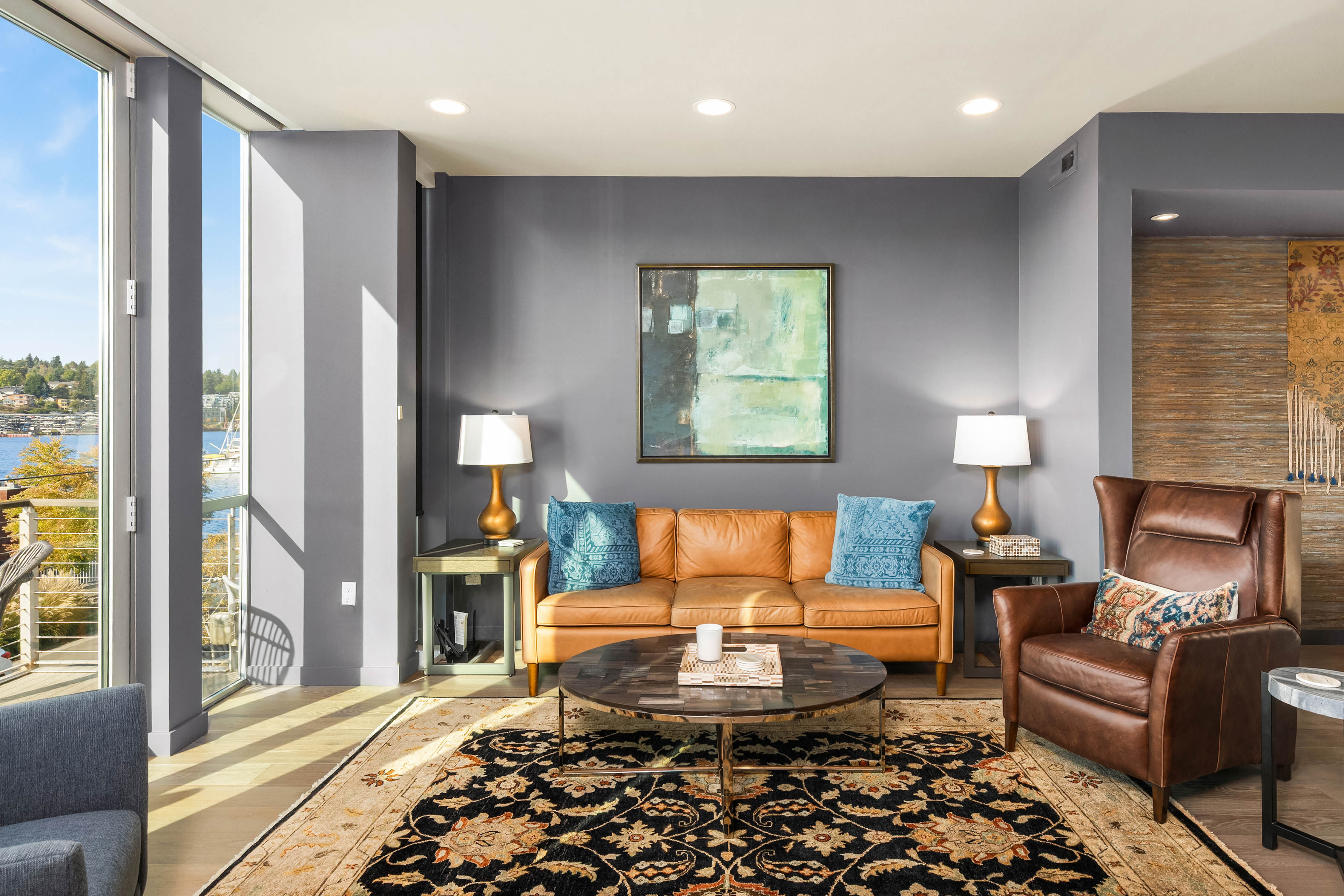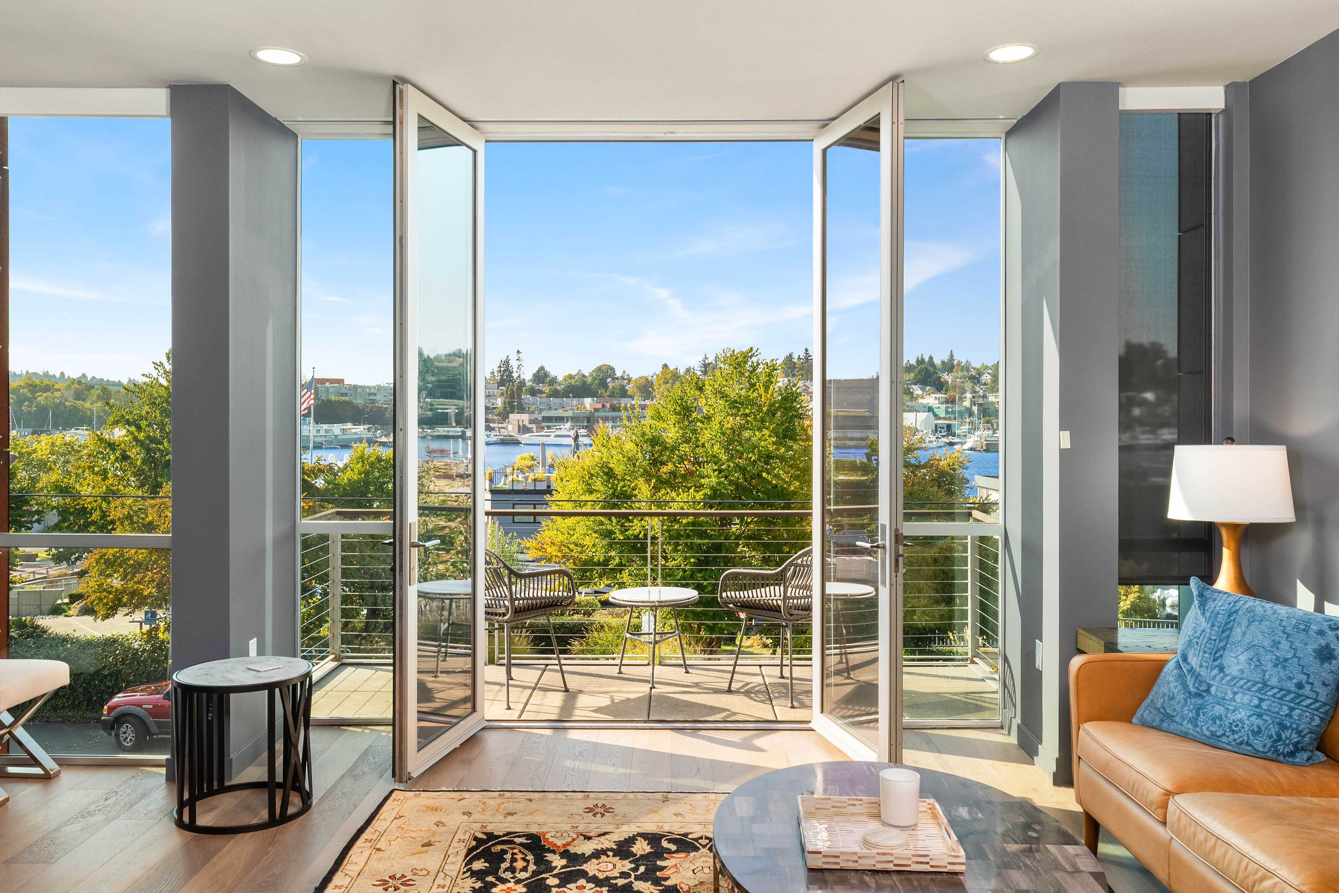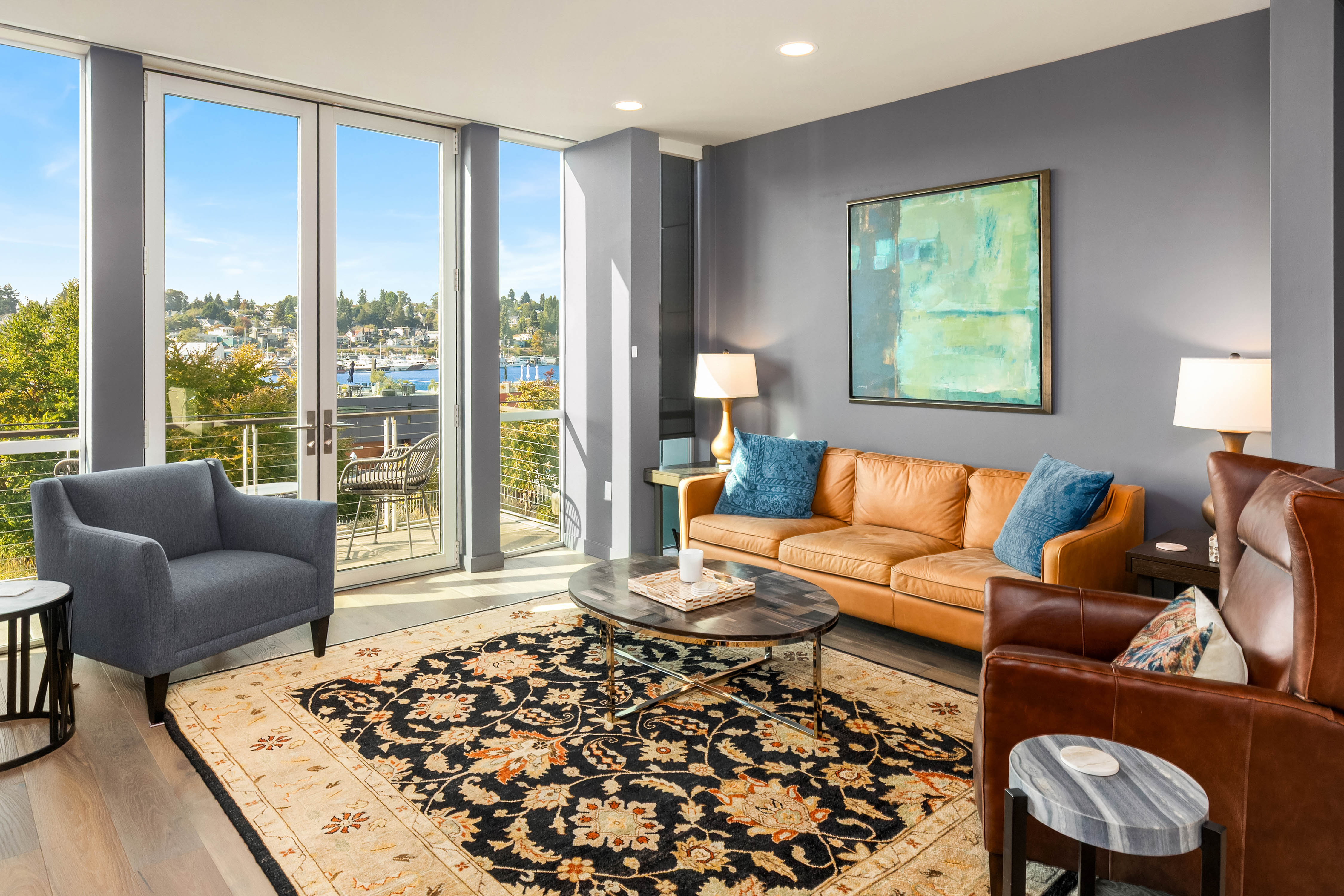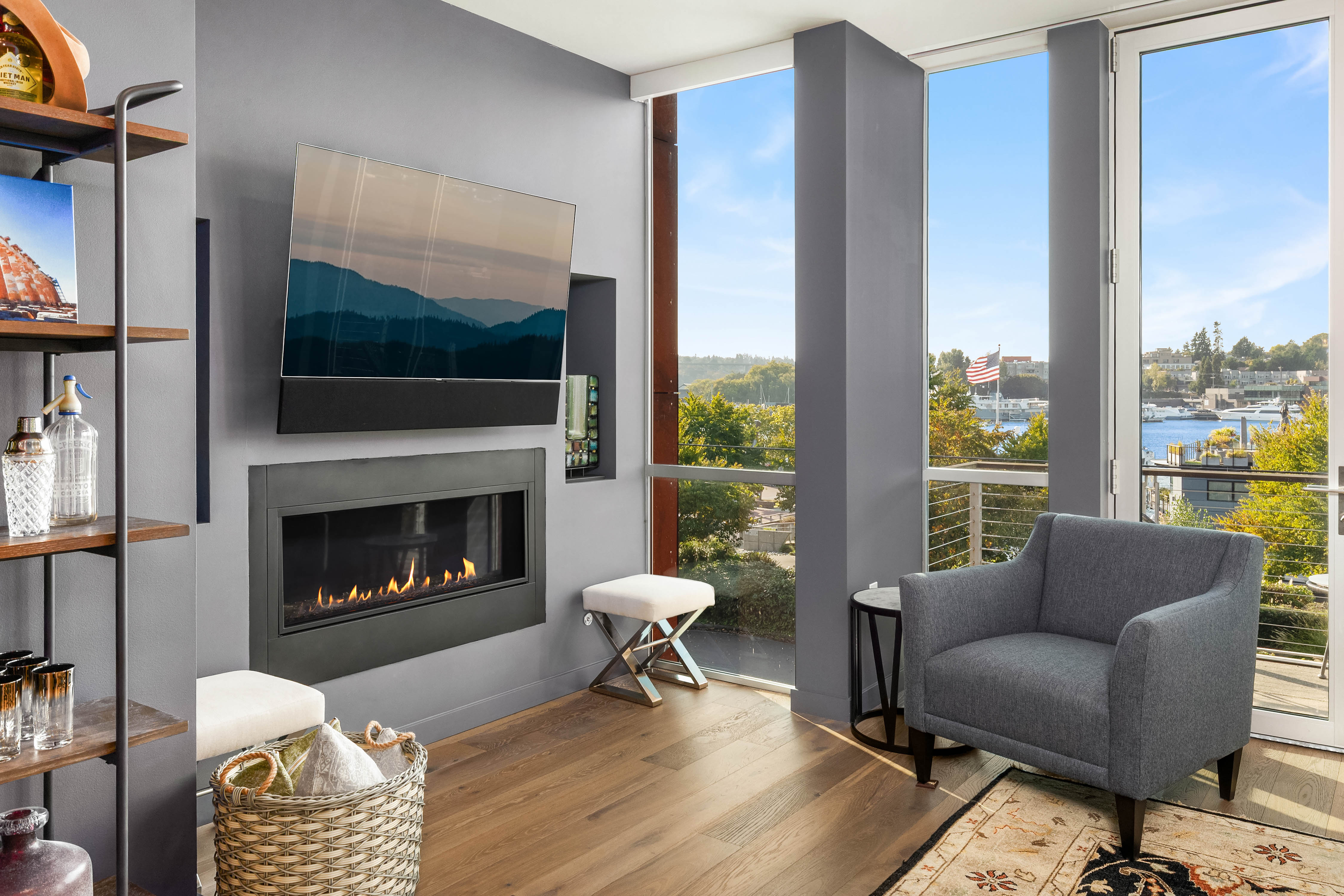 Enjoy seaplanes landing on Lake Union, increasable sweeping views of the lake, and the downtown Seattle skyline. High-end design throughout with over $100,000 in personalized designer upgrades. Truly a wonderful home. A chef’s dream kitchen with a sitting area to share with family and friends. Commercial-grade appliances including WOLF and SUB-Zero, quartz countertops, large island, and lots of cabinets. The living room enjoys the delightful views and is accentuated by a metal-clad gas fireplace. Next to the custom dining room you will find a climate-controlled glass wine room. Very cool.. On the first floor are two bedrooms, the west facing bedroom features a uniquely private patio. Perfect for those coffee mornings. The primary bedroom features a wall of windows, walk-in closet, and spa-inspired 5-piece bath with heated floors. A genuinely stunning rooftop deck with built-in BBQ and fireplace captures unobstructed views of Lake Union and skyline. A two-car garage, electric blinds and hardwood flooring throughout the home. Owners enjoy access to Ward Cove Marina amenities including moorage, fitness center, bike storage, and guest suite. Perfect for full-time living or a Seattle retreat. Located in one of Seattle’s most vibrant waterfront communities with easy access to downtown, Fremont / University District, Gasworks Park. Very easy commute as well.