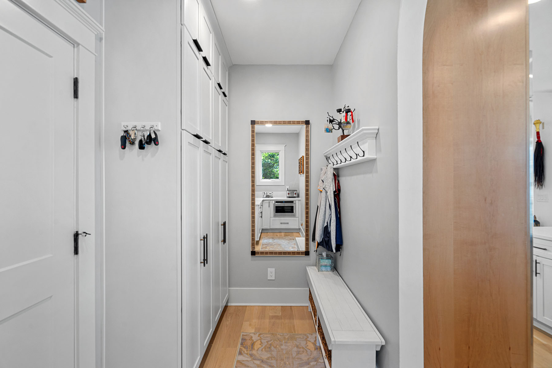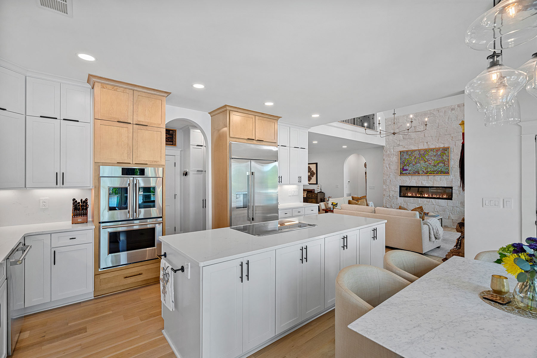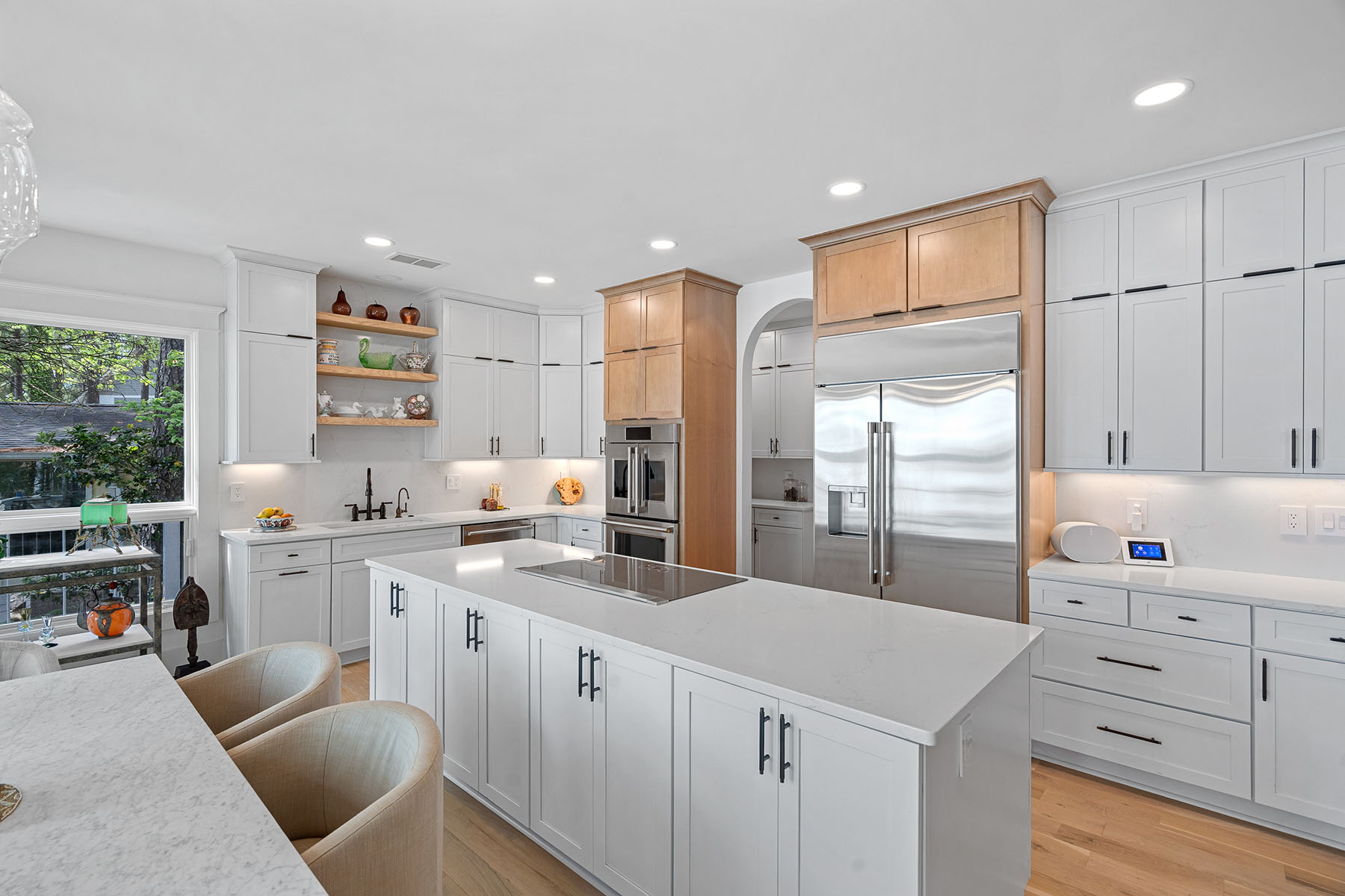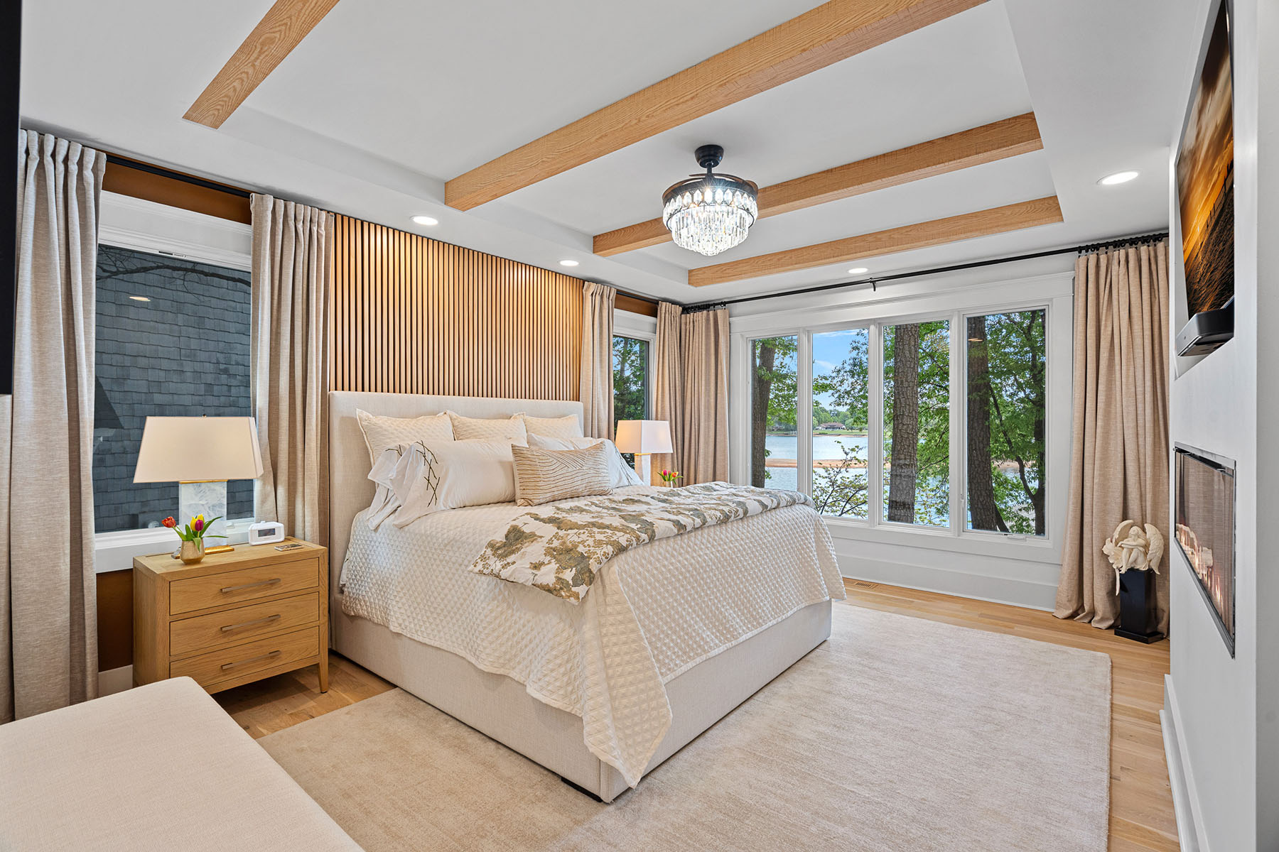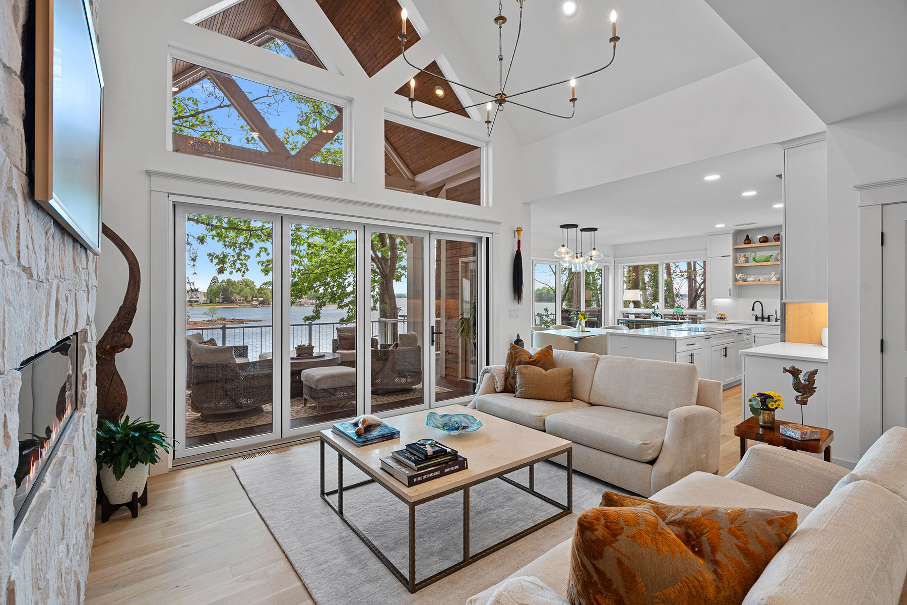 This masterfully reimagined Lake Norman estate is a masterclass in "Classical Craftsman" elegance, blending timeless architectural detail with cutting-edge smart technology. From the moment you approach the Smart Door—which toggles between privacy and clear glass—it is evident that no detail has been overlooked. The home's open-concept design is anchored by stunning white oak flooring and elevated by custom arches, built-ins, and solid-core shaker doors adorned with crystal knobs. At the heart of the residence, the chef's kitchen serves as a culinary showpiece featuring specialty cabinetry, WiFi-enabled appliances, and a butler's pantry with a convenient drawer microwave, while California Closets and full-house plantation shutters throughout provide both beauty and organizational bliss. The private sanctuaries within the home include a primary suite that acts as a true retreat, complete with a private fireplace and a spa-like bath equipped with a steam shower and an oversized soaking tub. The upper level is ideal for family or guests, offering three bedroom suites, a versatile loft, and an additional full bath. For hosting, the walkout lower level serves as the ultimate entertainment hub, boasting a second kitchen, a great room with a rugged stone fireplace, and a dedicated craft and laundry room, as well as a bedroom suite. This space flows seamlessly outdoors through panoramic glass sliding doors with integrated screens, leading to a multi-level paradise finished with bluestone patios, outdoor kitchen, and an expanded rear deck featuring recessed lighting. The property is a boater's dream, featuring a private dock with a 10,000 lb boat lift, a brand-new floating jet ski dock, and access to the Island Forest private community boat ramp. The outdoor oasis is rounded out by a custom fire pit area and full property landscape and balcony lighting. Beyond its aesthetic appeal, the home is equipped with modern essentials and security, including a full-home sound system, HVAC air purification, a tankless water heater, and a comprehensive security system. Even the garage has been upgraded with epoxy flooring and a new smart opener, ensuring every inch of the estate is as functional as it is beautiful.