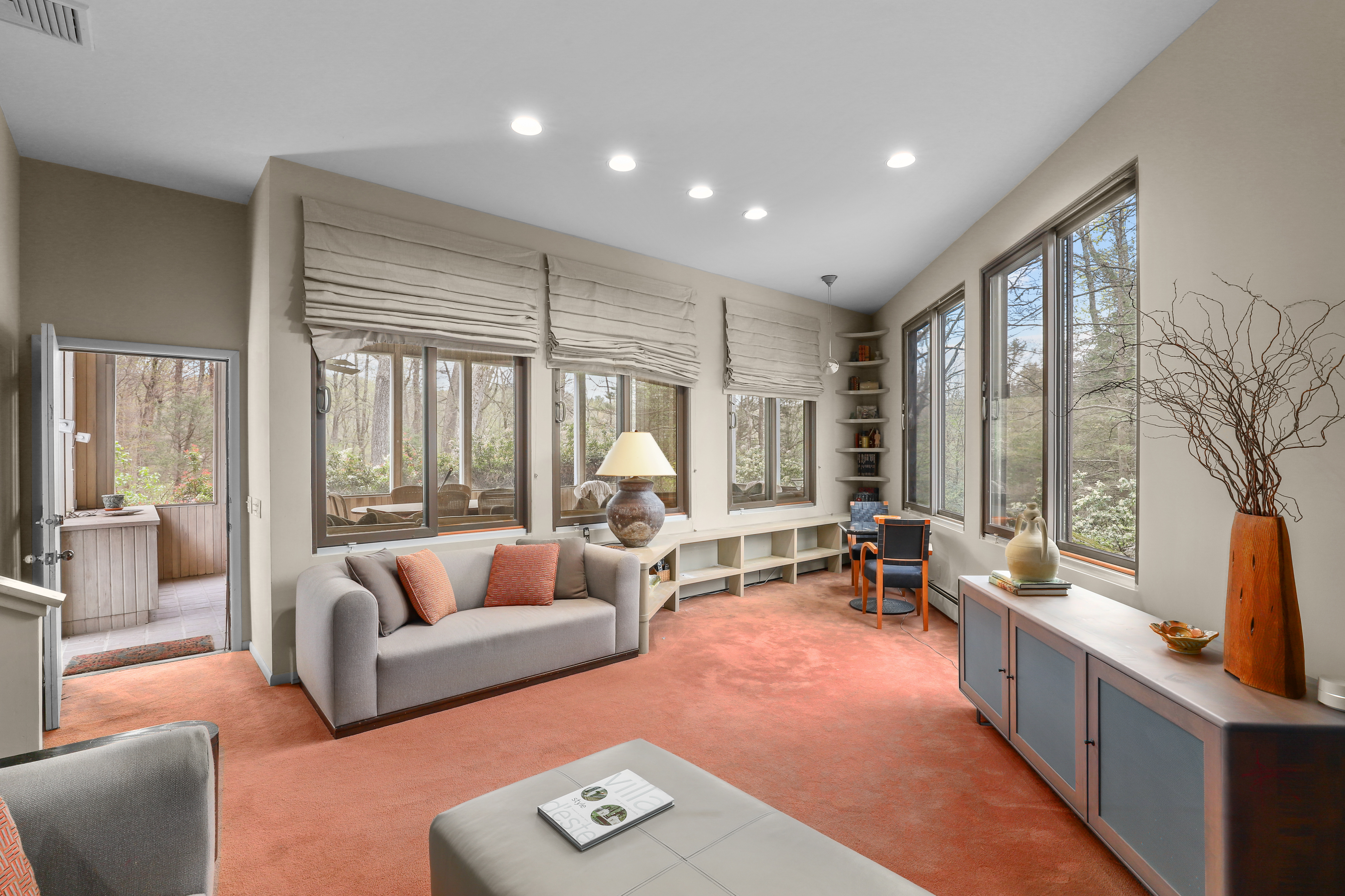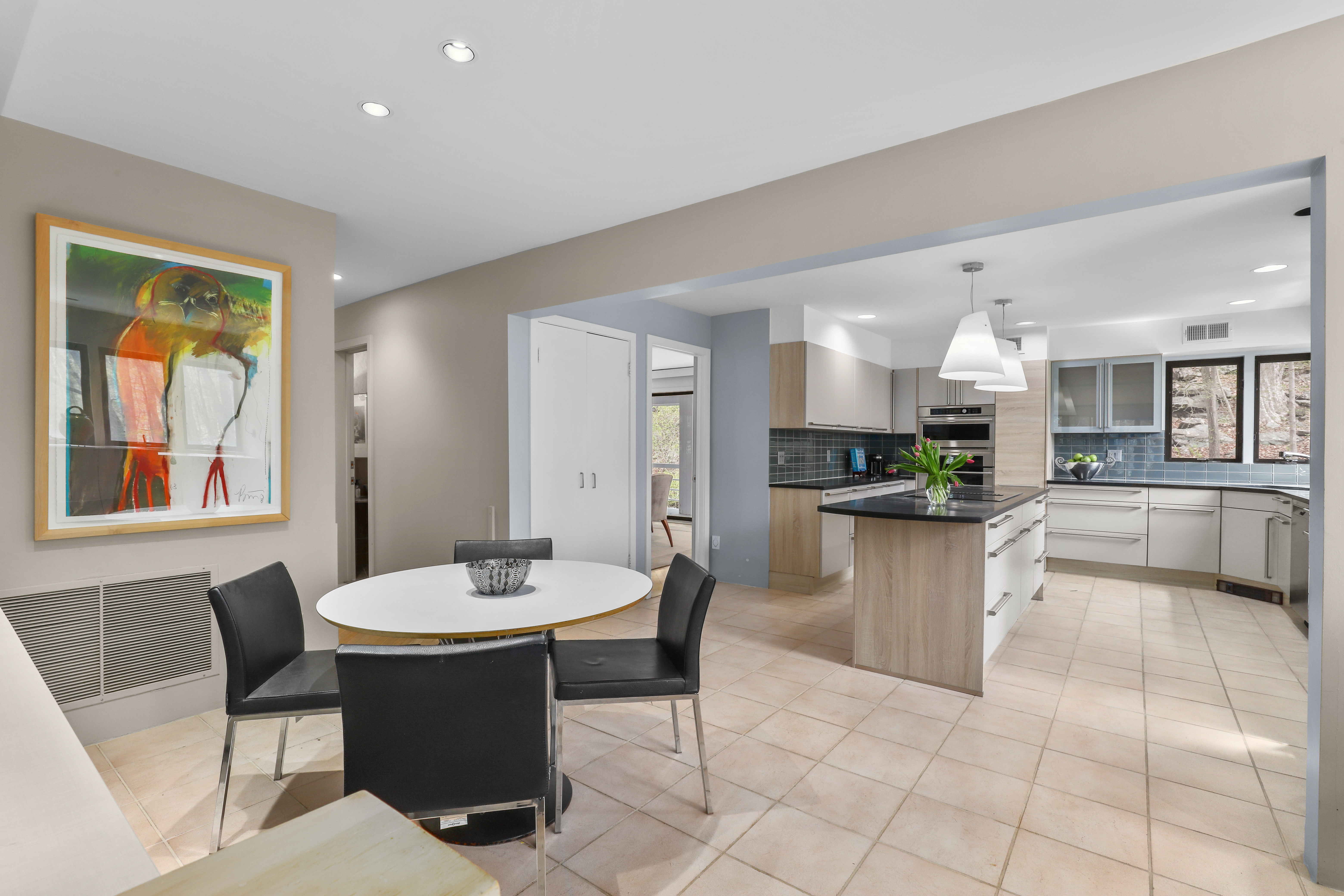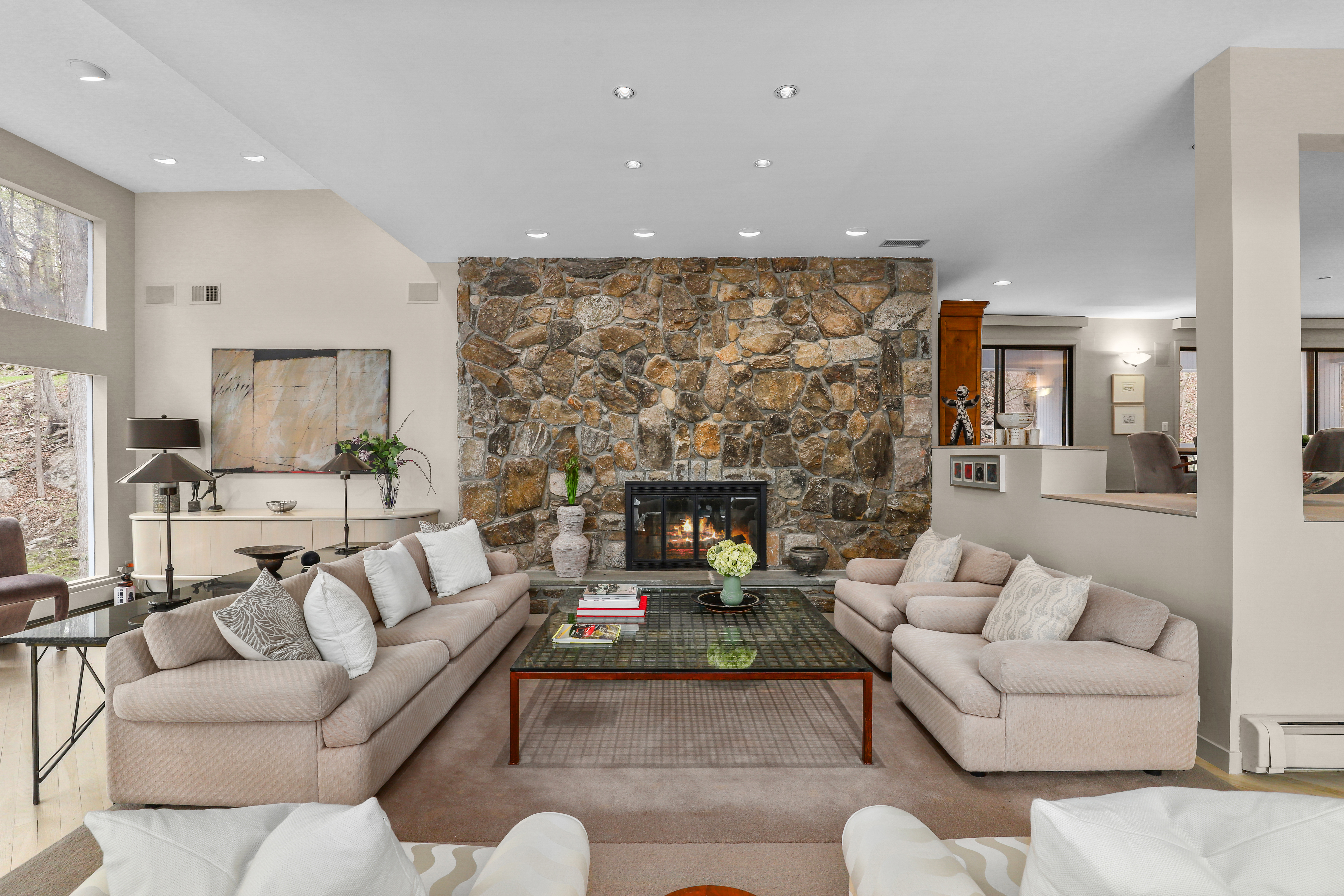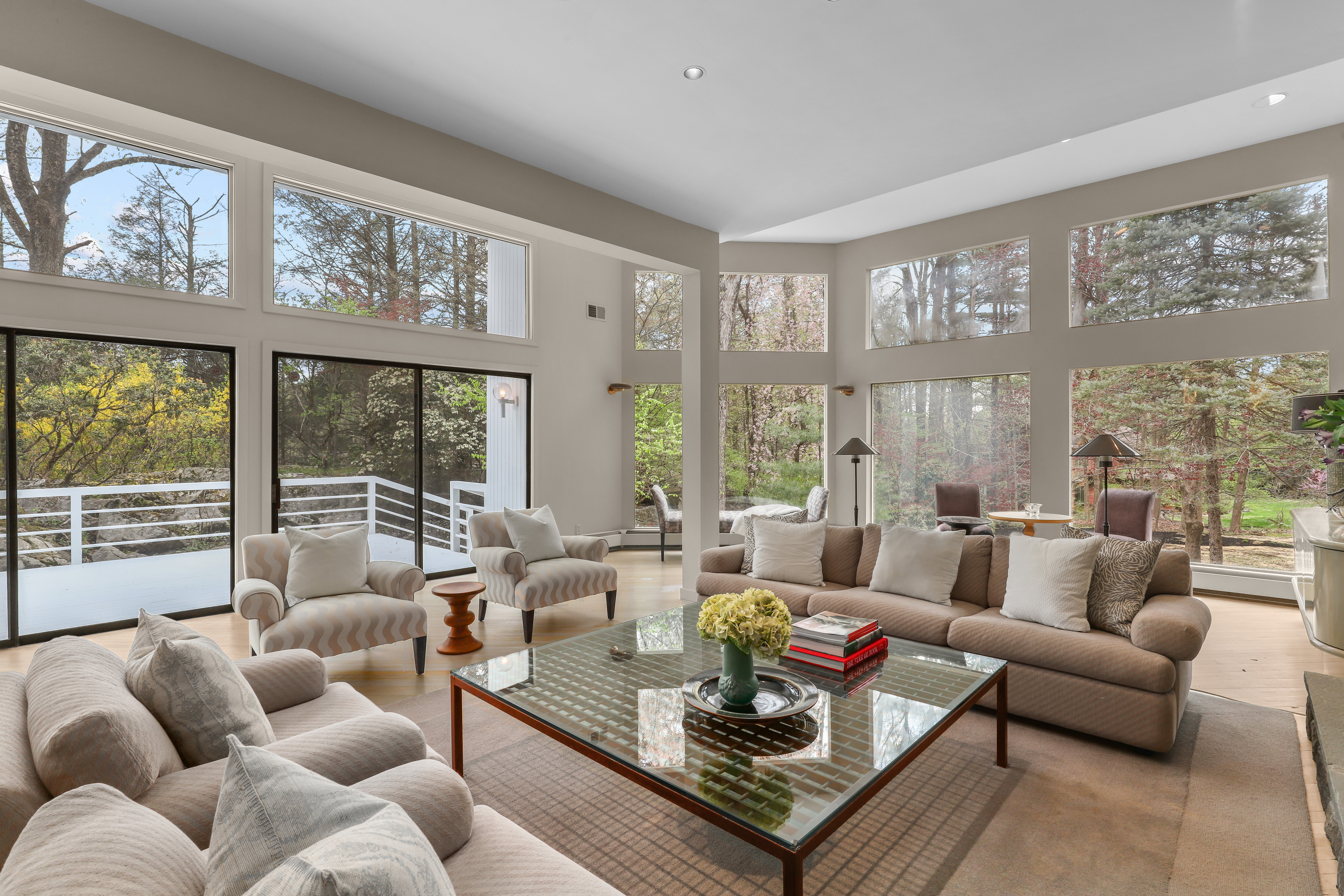 Welcome to this fabulous 4-bedroom, 2.5-bath contemporary Colonial home, perfectly designed for today's lifestyle with a seamless blend of style and comfort. Set on 2.26 private acres with vast views of the private community lake, this home offers open, luminous living spaces flooded with natural light and thoughtful architectural detail throughout. As you enter the home, you step into the formal living room featuring sliding glass doors to deck, a wood-burning fireplace and floor to ceiling windows that frame the surrounding landscape and bathe the room in sunlight. The formal dining room with balcony provides a large space for entertaining, while the flowing layout ensures effortless movement between spaces. The gourmet eat-in kitchen with center island is steps away from the family room, fireplace, and screened in porch. The primary bedroom suite offers privacy and separate home office with three walls of windows looking over the backyard and lake. Three additional bedrooms and full bathroom complete the second floor. The large private property is ideal for fun outdoor activities, stroll to the lake to kayak or quiet evenings at home. There is more to enjoy when you live in Chappaqua, from the award winning school district, dining in town, convenient metro-north trains, and preserve hiking trails. We have it all for you!
