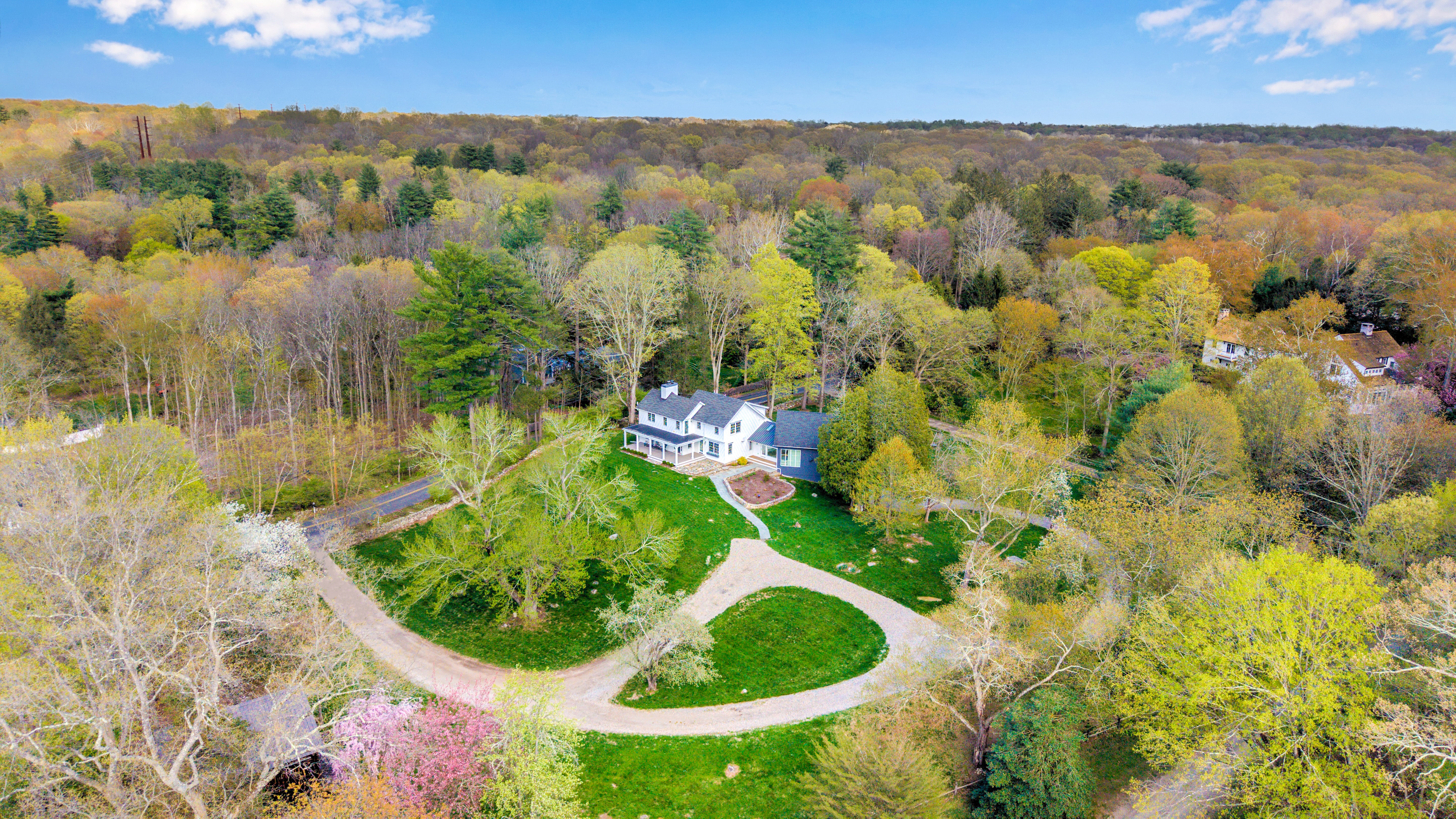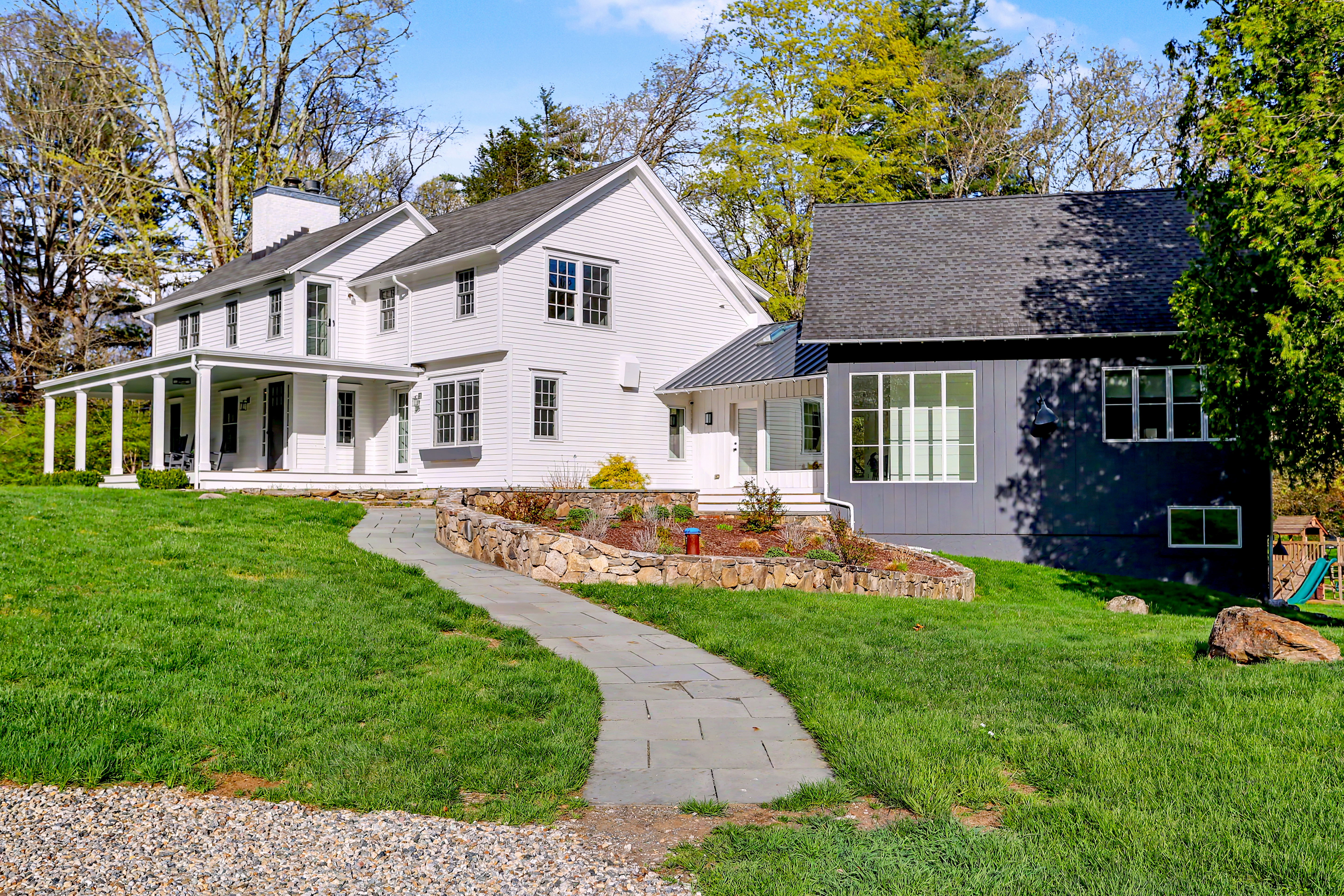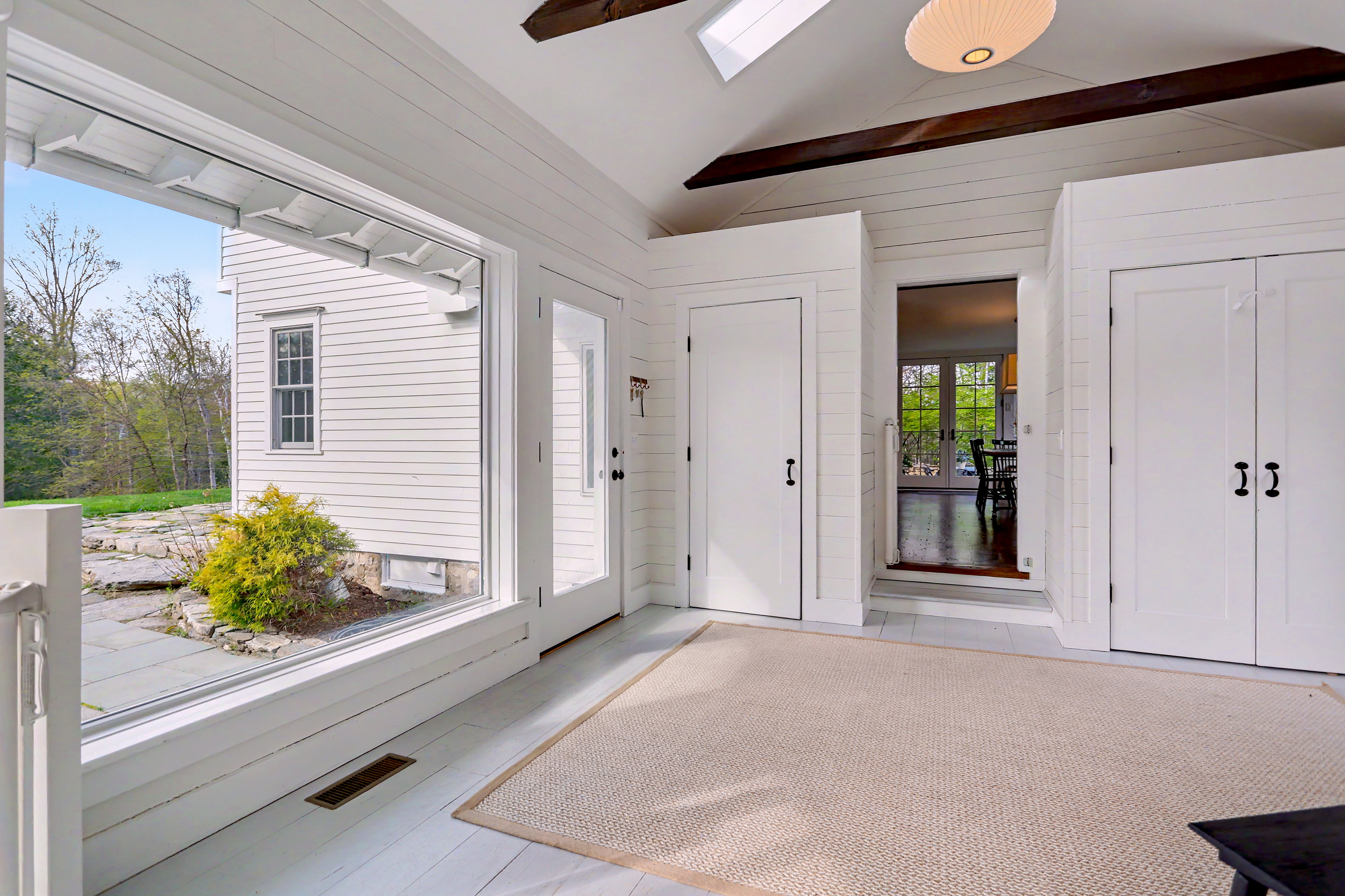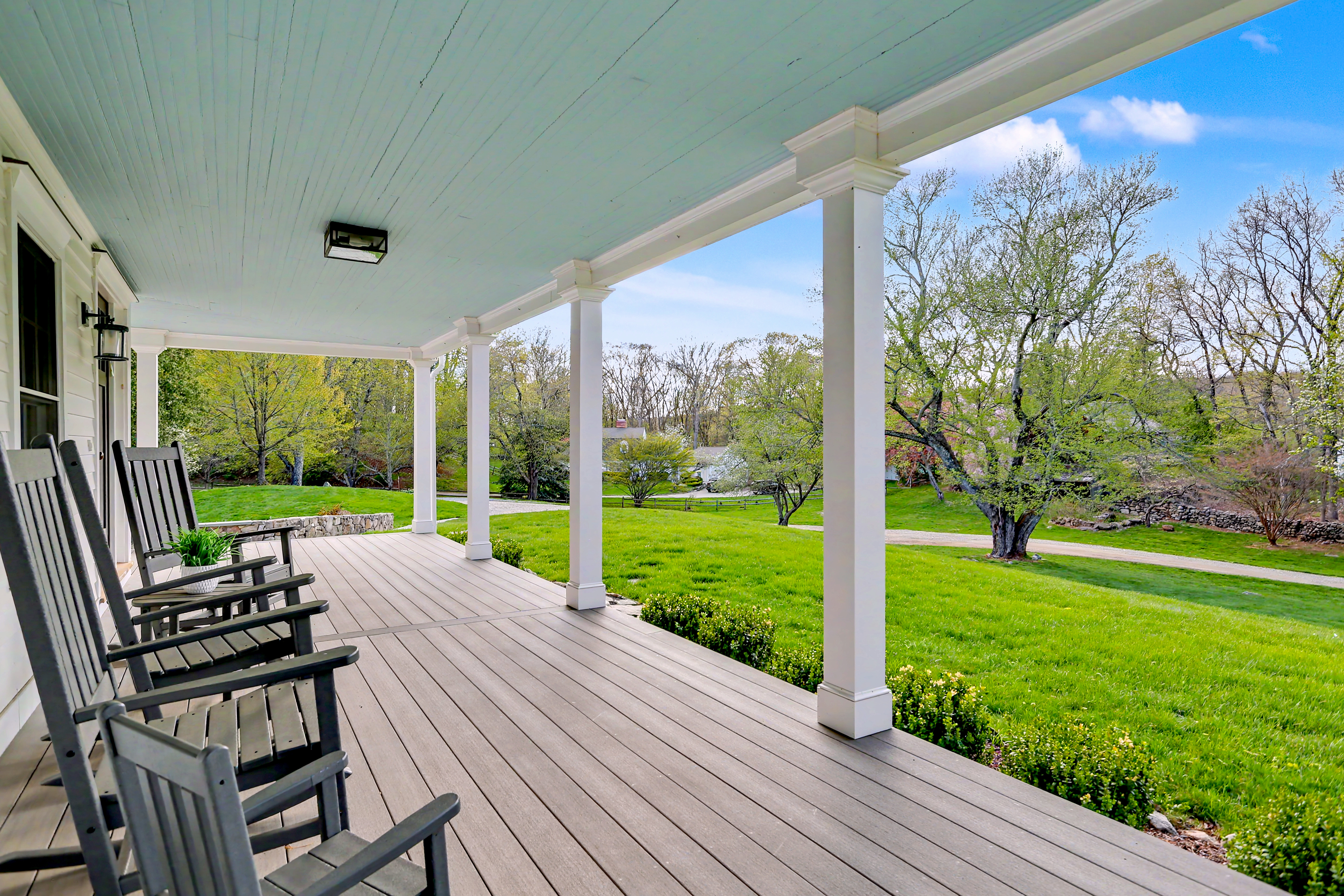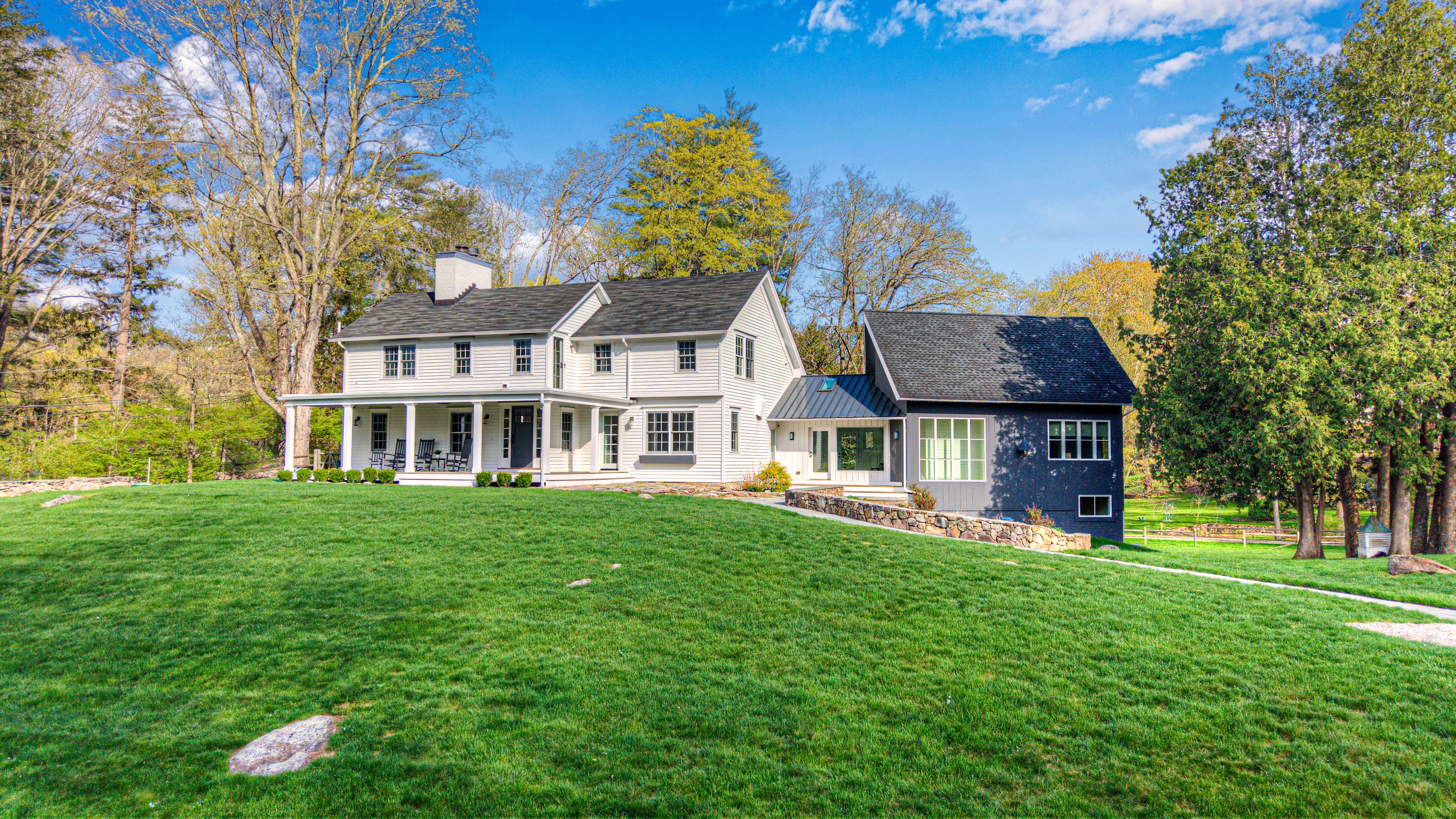 A thoughtfully restored (2012-2017) post-and-beam colonial is perched on a scenic rise with panoramic views of meticulously maintained grounds, combining timeless elegance with high-performance modern comfort and amenities. Details include original barn doors, reclaimed wide-plank floors, abundant natural light through skylights, and a gracious wrap-around veranda. First Floor: Features an inviting living room with exposed beams and a wood-burning fireplace. The heart of the home is a generous eat-in kitchen, boasting an expansive island, premium appliances, an integrated desk nook, and French doors connecting to outdoor spaces. A den includes a wet bar, wine storage, and handcrafted built-in cabinetry. Also on this level are two well-appointed bedrooms, a full bath, a powder room, and convenient first-floor laundry. Second Floor:The primary bedroom suite is a true retreat with a wood-burning fireplace, separate sitting area, a custom closet system, and a spa-like bathroom offering pastoral vistas. Two additional bedrooms, a second full bath, and upper-level laundry complete this floor. Lower Level: A newly converted, climate-controlled, recreational / play room. A separate detached barn offers multiple possibilities-workshop, studio, storage, or a future renovation project. Barn-featuring a restored roof and structural reinforcements-is as-is and stands ready for conversion, with architectural plans included in a sale