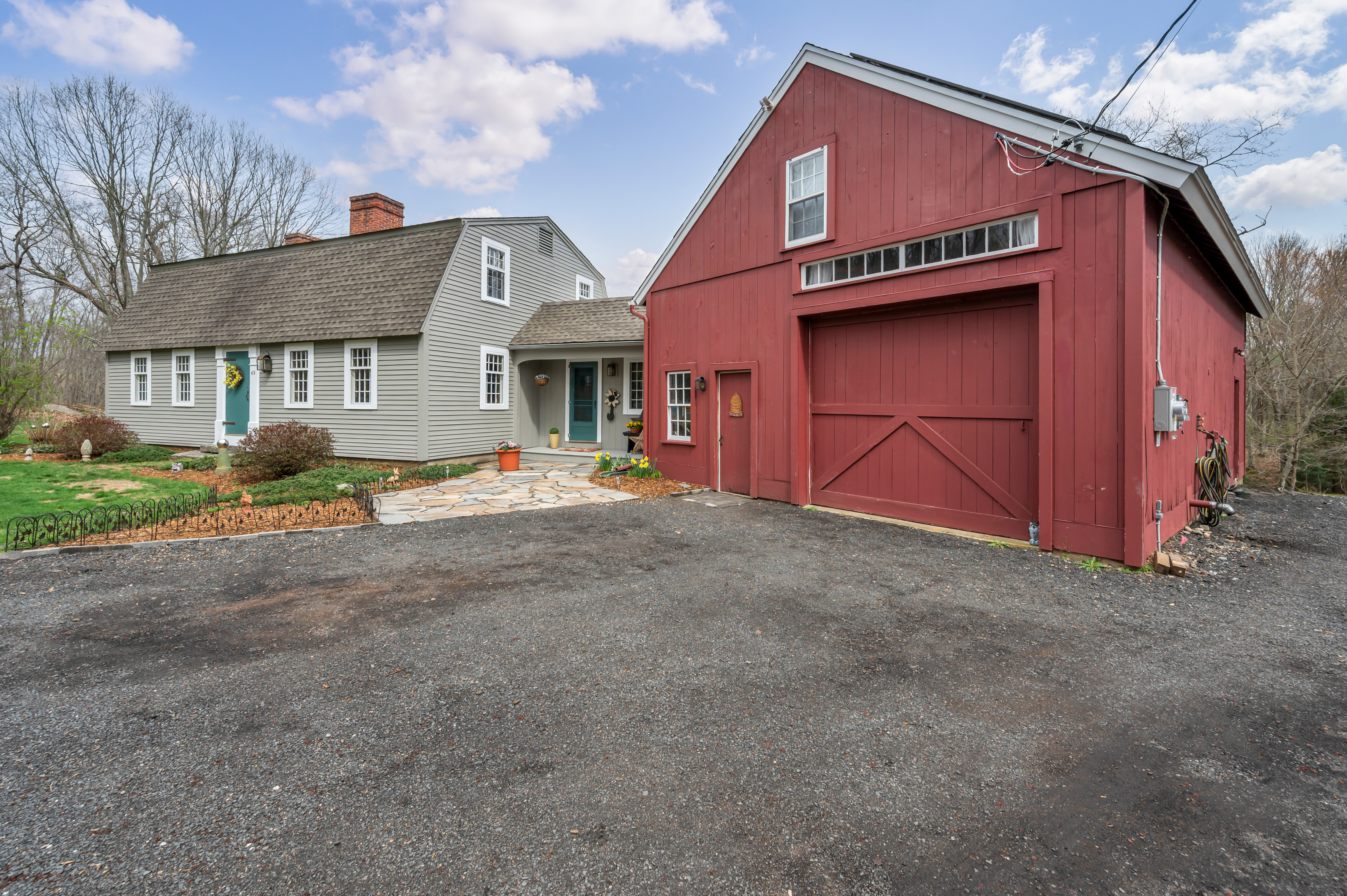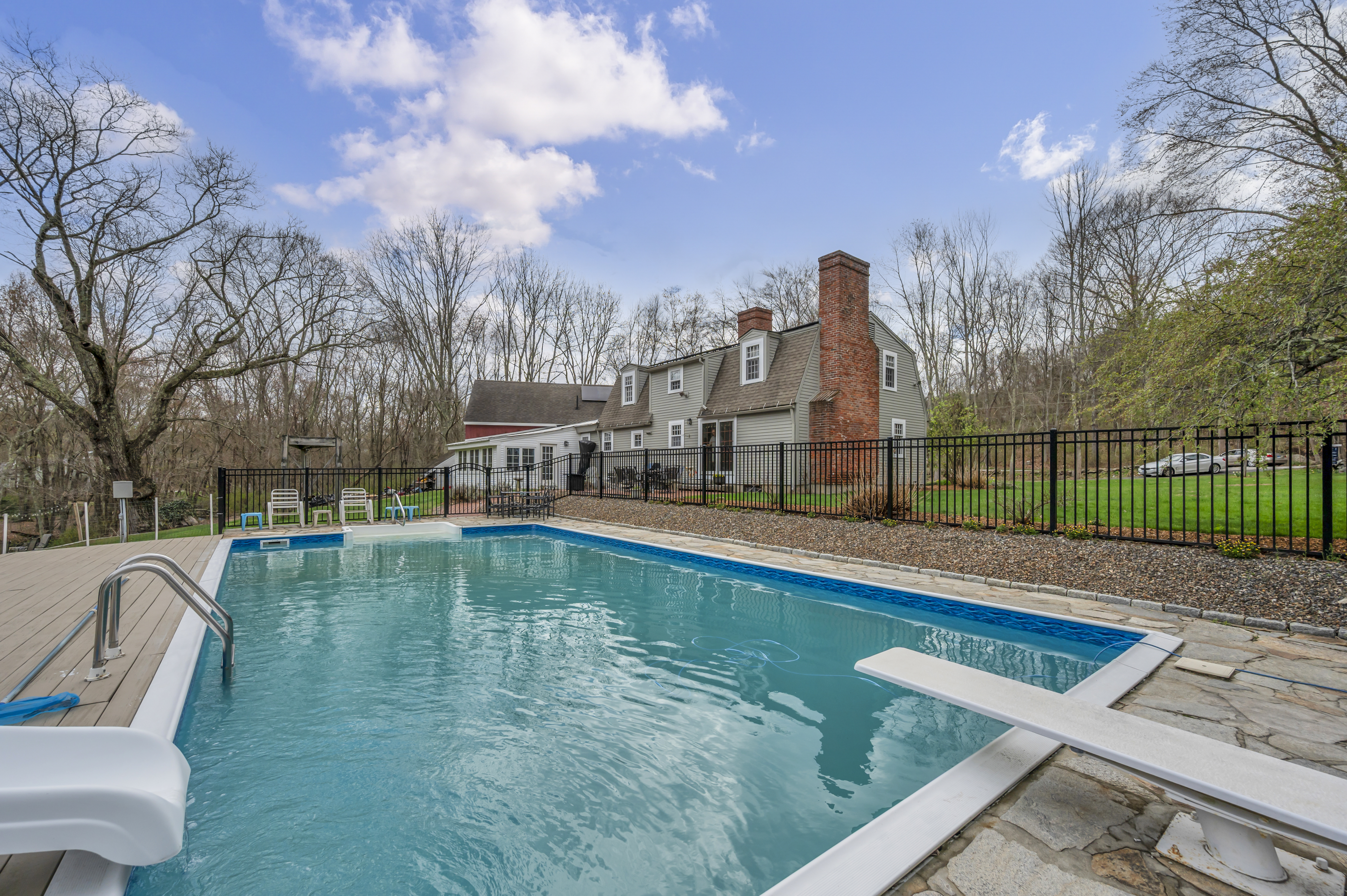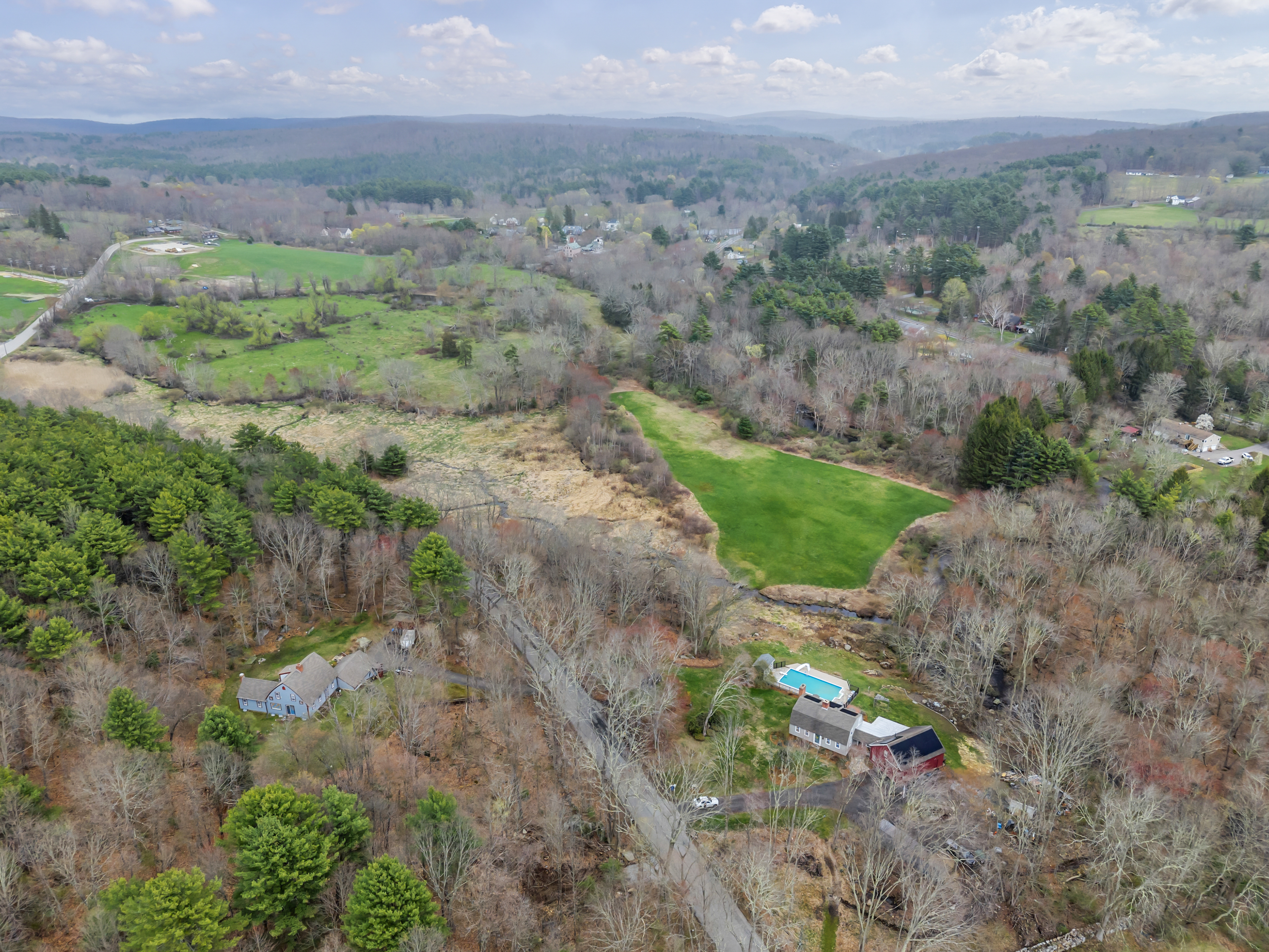 Welcome to your Quintessential New England Farm Homestead set on 10 beautiful acres! The property is so special with its babbling brook running through and firepit overlooking the stream. The built-in swimming pool also embraces the view of your land along with a new deck, slide, and pool house! There is a sweet patio, shed, and circular driveway. Built in 1974 in reproduction style of a Gambrel Colonial you will not find another Homestead as special! Step inside to exposed beams and wood ceilings and and a warm welcoming family room! The family room leads you to the heated sunroom that overlooks the view of the stream and has stone floors plus a huge hot tub! The country kitchen has custom-built cabinets with new stainless appliances and a gorgeous hearth fireplace and antique stove for warmth + charm. There is a sliding glass door to the outside patio and yard. The dining is right off the kitchen area and has its own fireplace, corner cupboard, and real gas light fixture. The living room is a true tavern room with a custom old-world bar. Upstairs of the main house you will find three bedrooms, one a primary with stone fireplace and sitting area, walk-in closet and on-suite. Over the barn garage the is additional 2 rooms, one now an office with that incredible view, and the other a bedroom suite! The barn garage fits at least 3 cars and is the perfect heated workshop! There are wide board floors throughout, custom trim, wainscoting and so much detail! Truly a DREAM HOME!