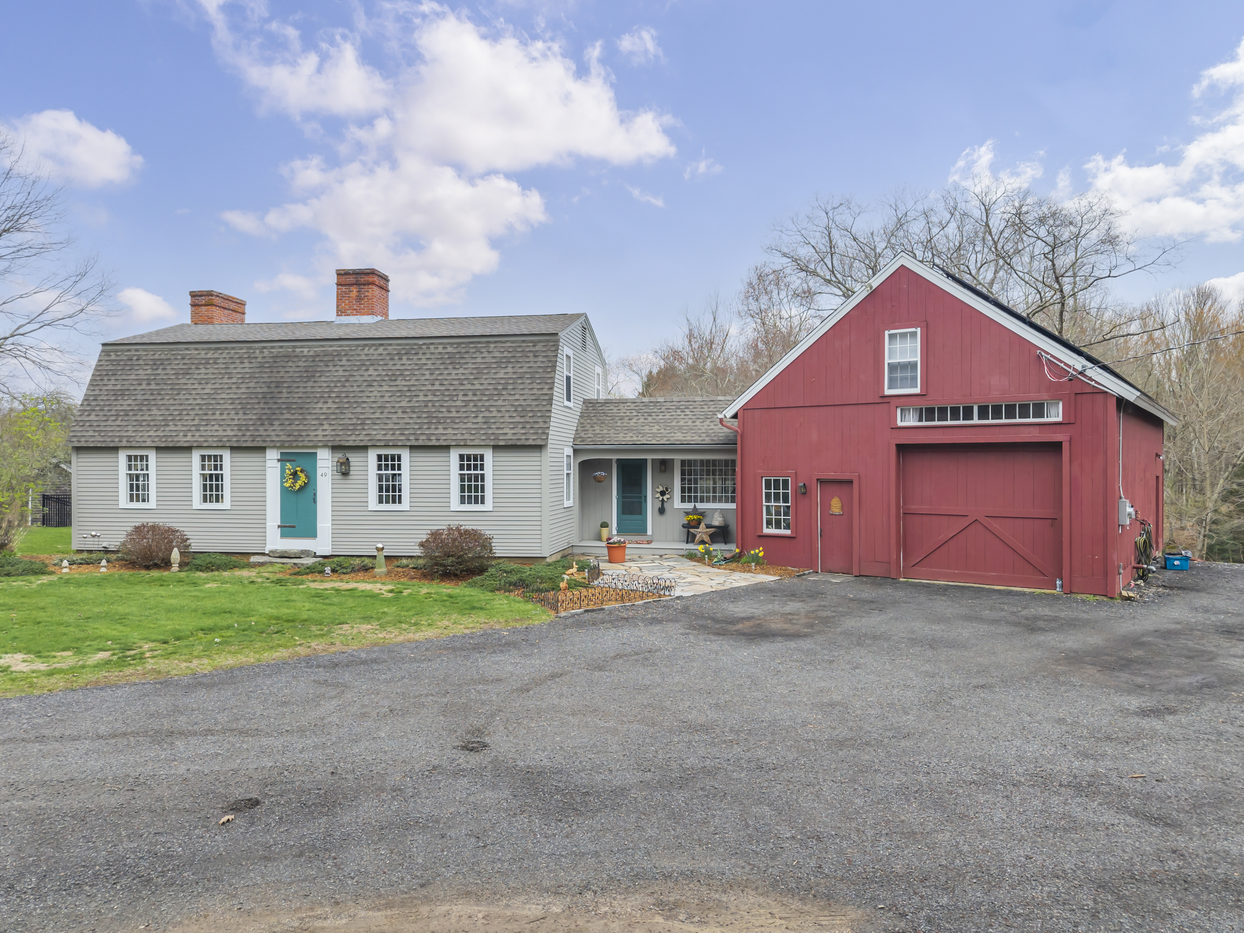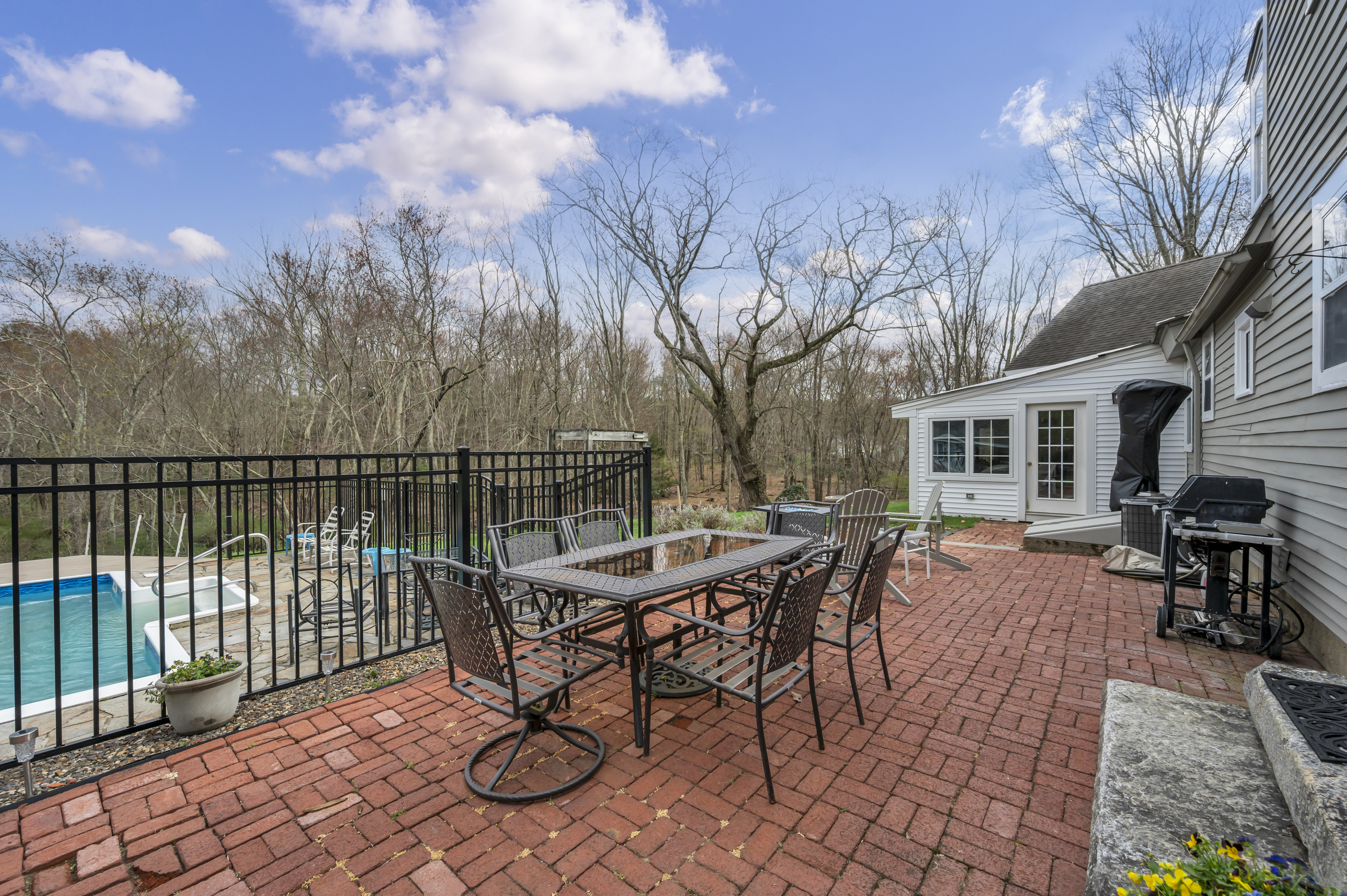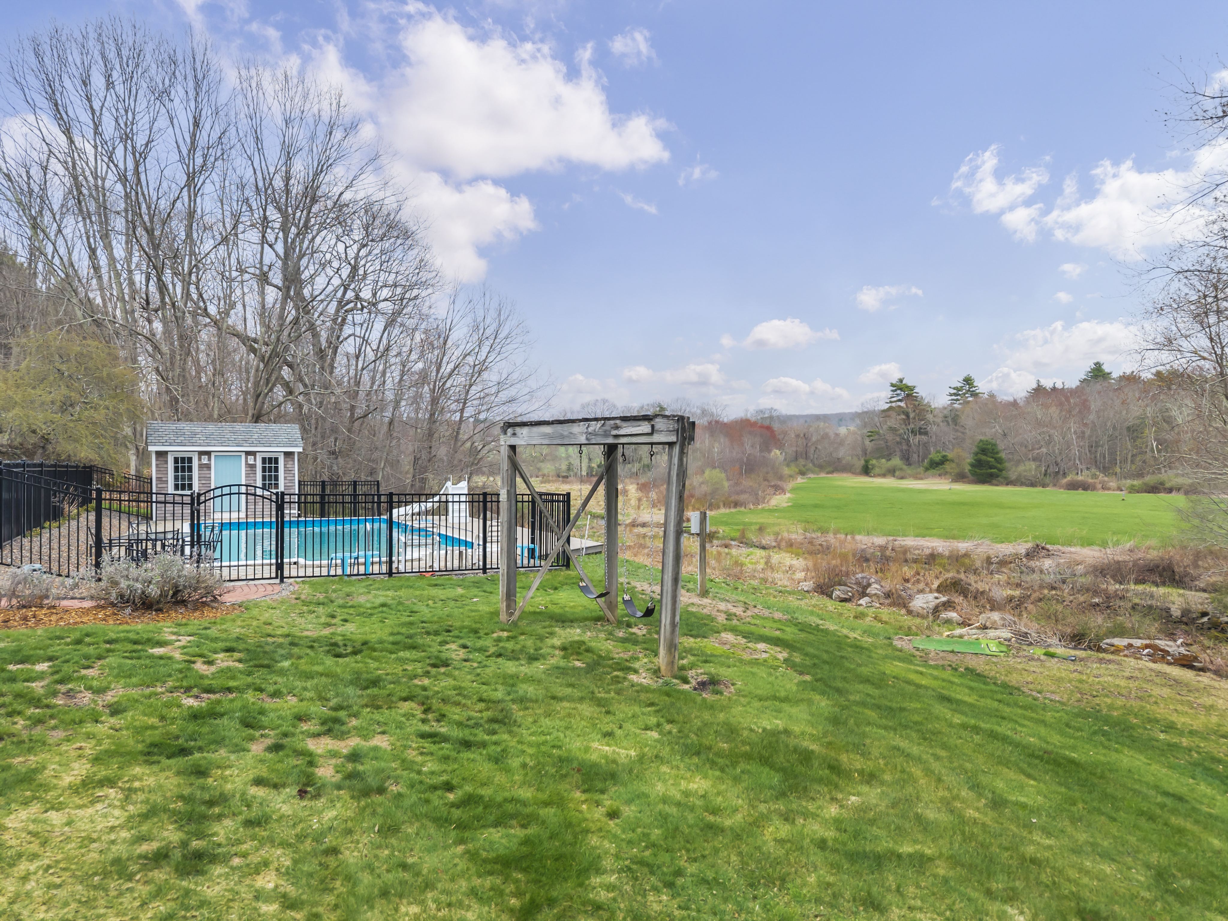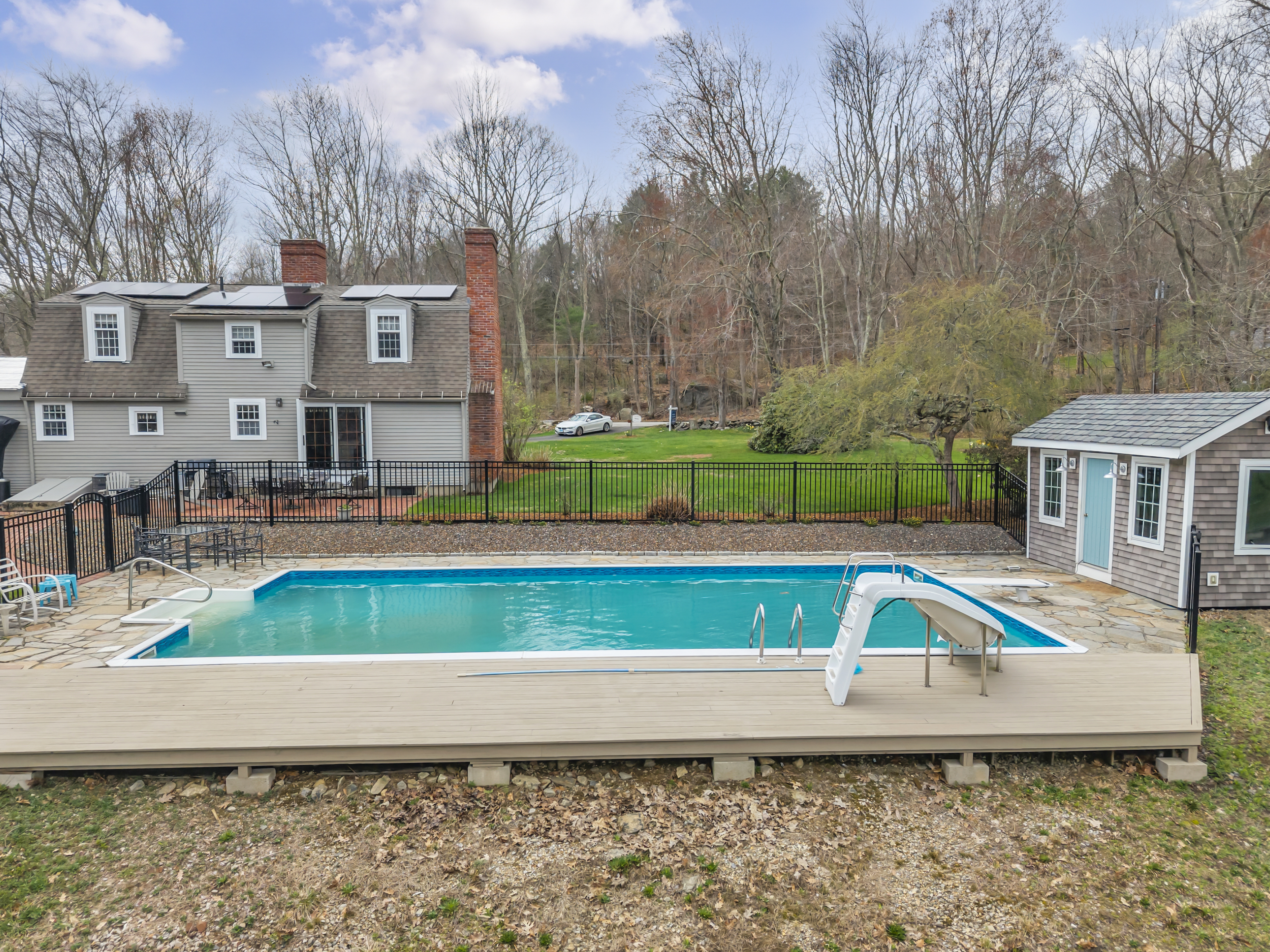 Welcome to your Quintessential New England Farm Homestead set on 10 beautiful acres! The property is so special with its babbling brook running through and firepit overlooking the stream. The built-in swimming pool also embraces the view of your land along with a new deck, slide, and pool house! There is a sweet patio, shed, and circular driveway. Built in 1974 in reproduction style of a Gambrel Colonial you will not find another Homestead as special! Step inside to exposed beams and wood ceilings and and a warm welcoming family room! The family room leads you to the heated sunroom that overlooks the view of the stream and has stone floors plus a huge hot tub! The country kitchen has custom-built cabinets with new stainless appliances and a gorgeous hearth fireplace and antique stove for warmth + charm. There is a sliding glass door to the outside patio and yard. The dining is right off the kitchen area and has its own fireplace, corner cupboard, and real gas light fixture. The living room is a true tavern room with a custom old-world bar. Upstairs of the main house you will find three bedrooms, one a primary with stone fireplace and sitting area, walk-in closet and on-suite. Over the barn garage the is additional 2 rooms, one now an office with that incredible view, and the other a bedroom suite! The barn garage fits at least 3 cars and is the perfect heated workshop! There are wide board floors throughout, custom trim, wainscoting and so much detail! Truly a DREAM HOME!