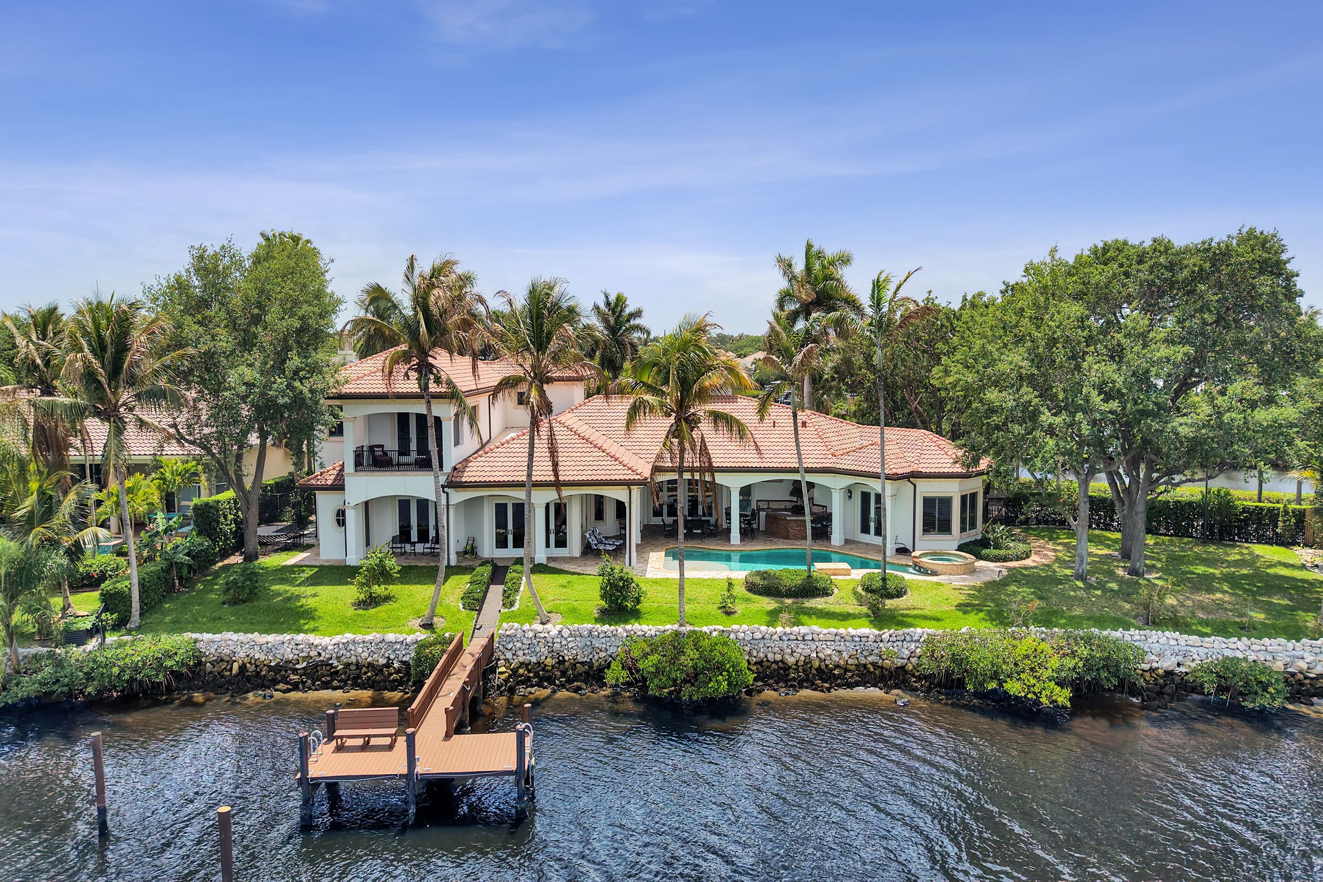 Welcome to Florida living at its best! Tucked inside the gated community of Jupiter River Estates, this custom-built home wraps you in 280 feet of shimmering water views. With plenty of space to entertain guests in the formal living/dining area and billiards room. Soaring ceilings and an open layout flood the interiors with natural light. The generous sized kitchen is equipped with premium appliances and a butler's pantry. Wind down in a primary suite designed like a boutique hotel—French doors to the outside terrace, coffee bar, and spa-style bath with dual vanities. Outside, enjoy a heated pool and spa, a summer kitchen and tranquil river views. 2 private docks provide direct ocean access. Upstairs, there's a private suite with its own kitchen that provides guests with a welcome retreat.