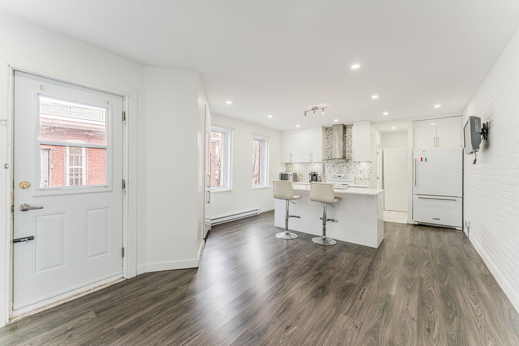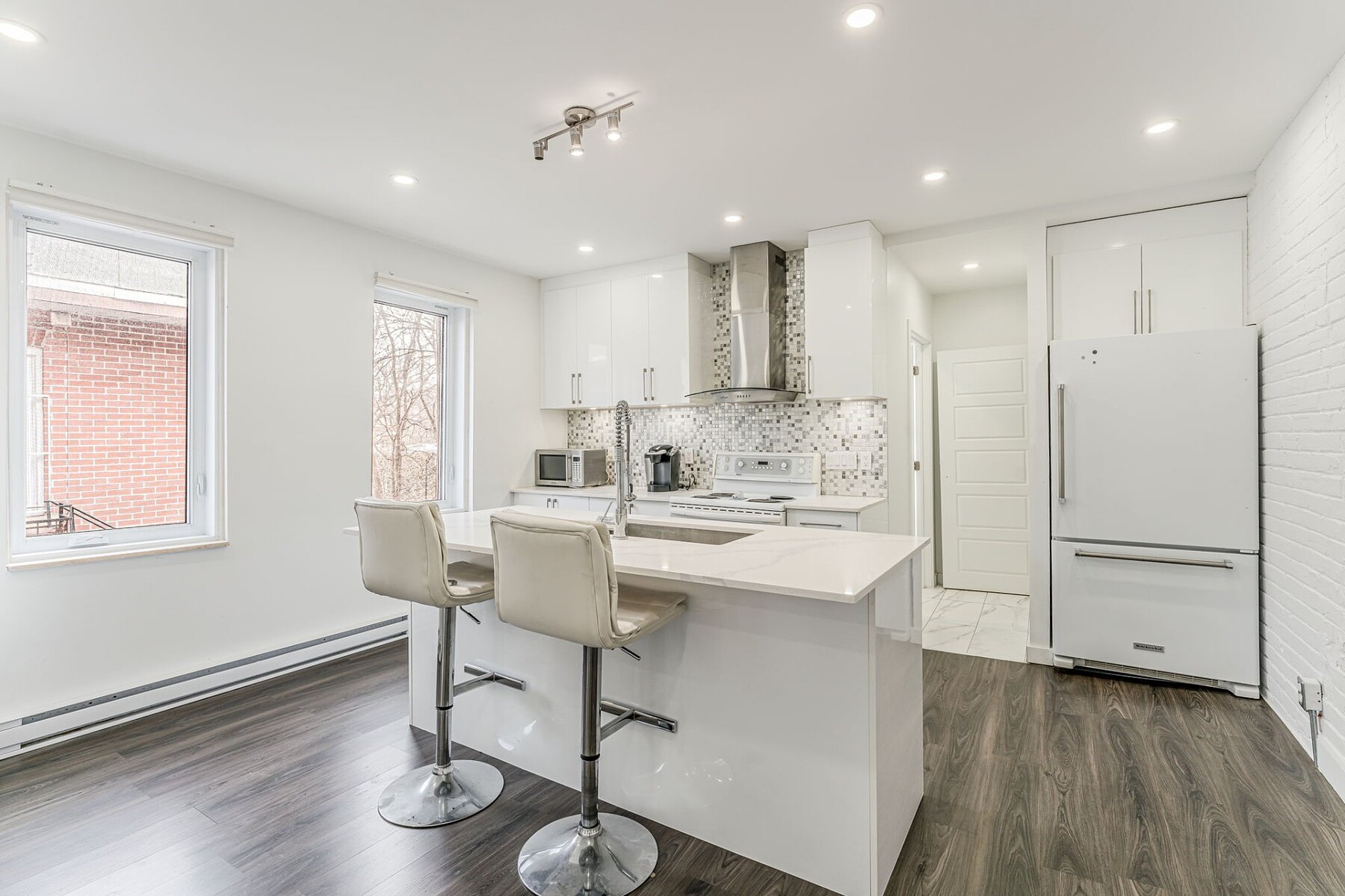 Stunning 1,274 sq. ft. apartment for rent in the Plateau-Mont-Royal, Montreal. Spacious and well laid out, it features two bedrooms and one bathroom. The main living area is bright and full of character, highlighted by an exposed brick wall. The kitchen is optimized for storage and includes an island with a comfortable dining area. Both bedrooms are equipped with wardrobe units, and the modern bathroom features a rain shower. Just steps from Mont-Royal metro station, this sought-after neighborhood is known for its cafés, restaurants, parks, and vibrant atmosphere, with easy access to services and downtown.