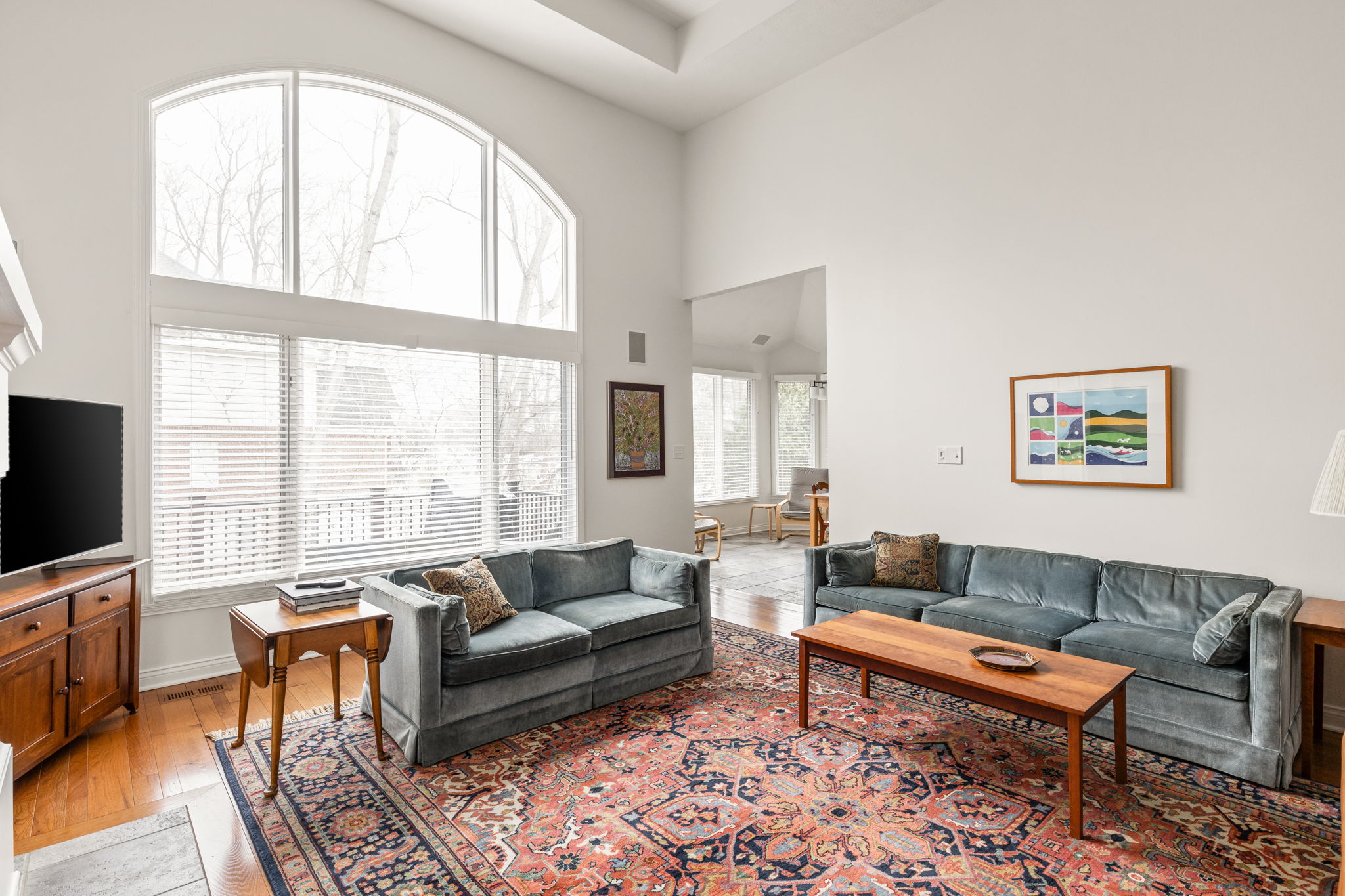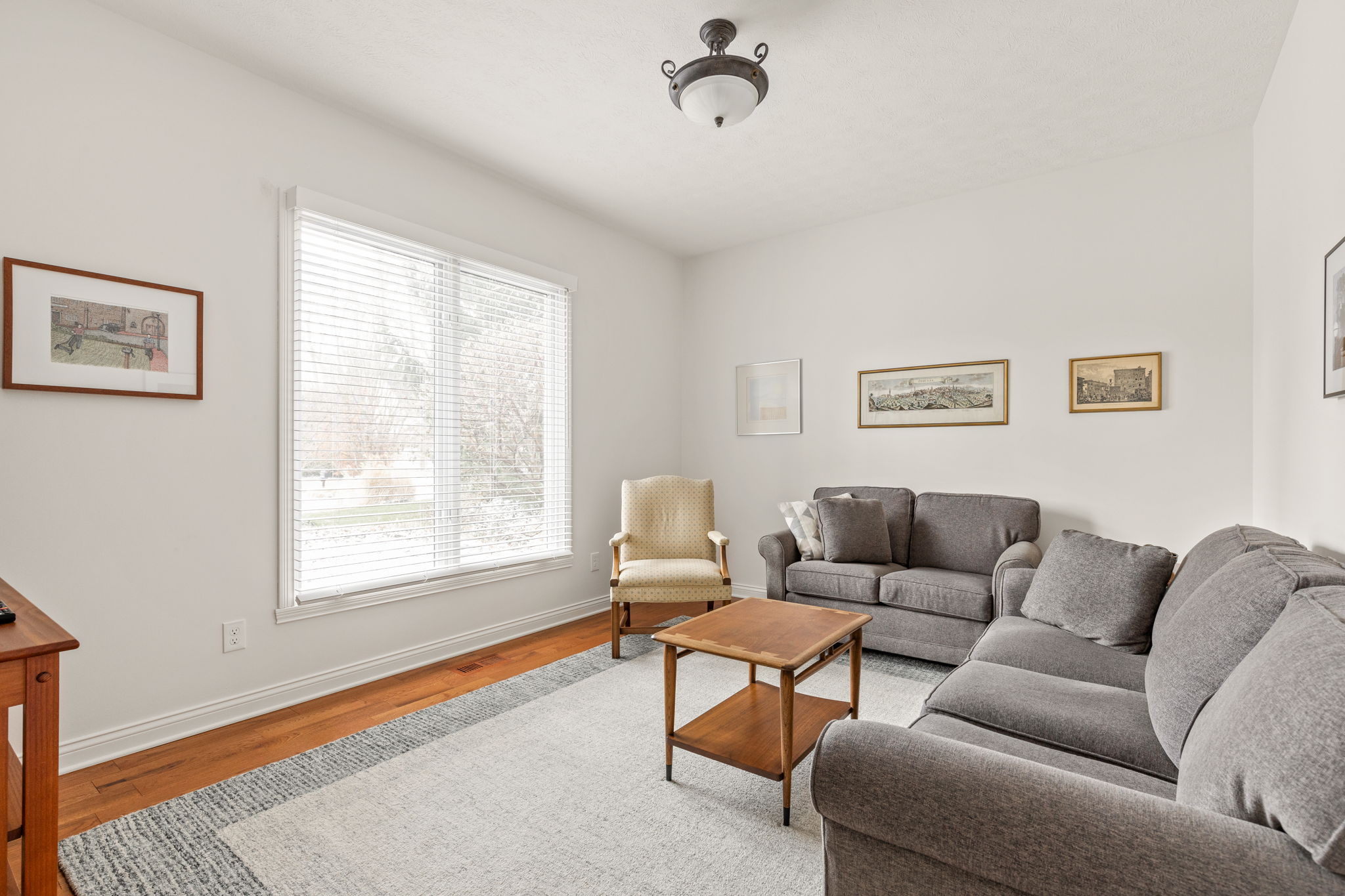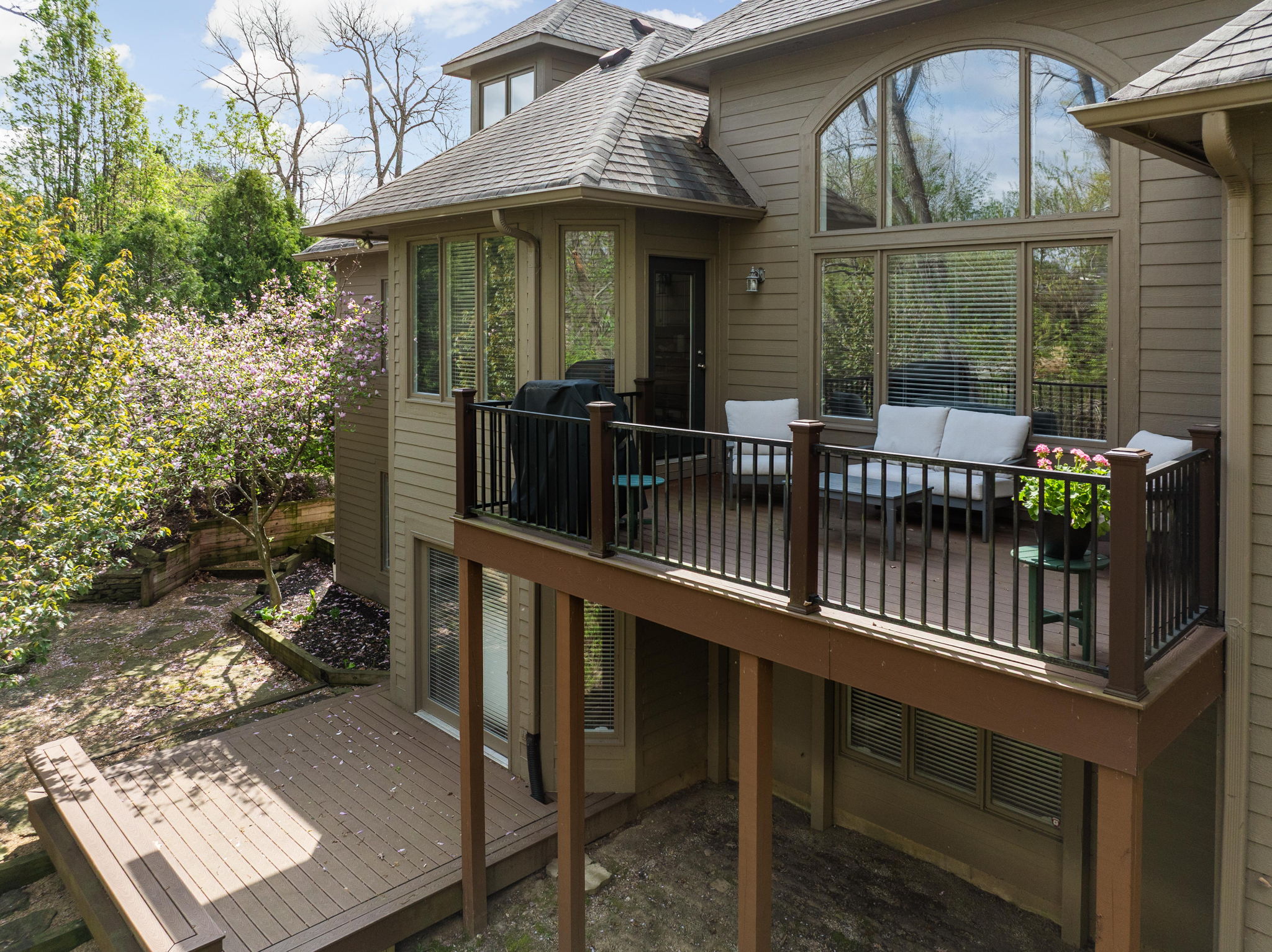 Tucked into the wooded beauty of Austin Oaks, this meticulously maintained 4-bedroom, 4.5-bath home offers over 5,300 square feet of thoughtfully designed living space with the ease of a primarily main-level lifestyle. With a layout that lives like a ranch, the main floor features a spacious primary suite alongside a second bedroom with its own full bath. At the heart of the home, the great room makes a striking impression with soaring 14-foot ceilings and a dramatic wall of windows that flood the space with natural light while framing peaceful, tree-lined views. The open, flowing floor plan creates an effortless connection between living spaces, complemented by a main-level den perfect for a home office or quiet retreat. Upstairs, a private bedroom and full bath offer additional flexibility, while the walkout lower level is designed for both entertaining and relaxation. Complete with a family room, fireplace, wet bar, and generous recreation space, it easily accommodates everything from game nights to workouts. An additional bedroom and full bath, along with approximately 1,000 square feet of unfinished space, provide exceptional storage or the opportunity to expand. Outdoor living is equally inviting, with a large TREX deck overlooking the private, wooded setting-perfect for morning coffee or evening gatherings. Beyond the home itself, Austin Oaks offers a truly unique lifestyle amenity rarely found in Zionsville: a neighborhood clubhouse featuring an indoor tennis court that also converts to indoor pickleball courts, allowing for year-round play. Additionally, there is an indoor and outdoor basketball court, an indoor/outdoor playground, and a pool. Spacious, versatile, and set in one of Zionsville's most desirable communities, this home offers a rare combination of comfort, function, and lifestyle.