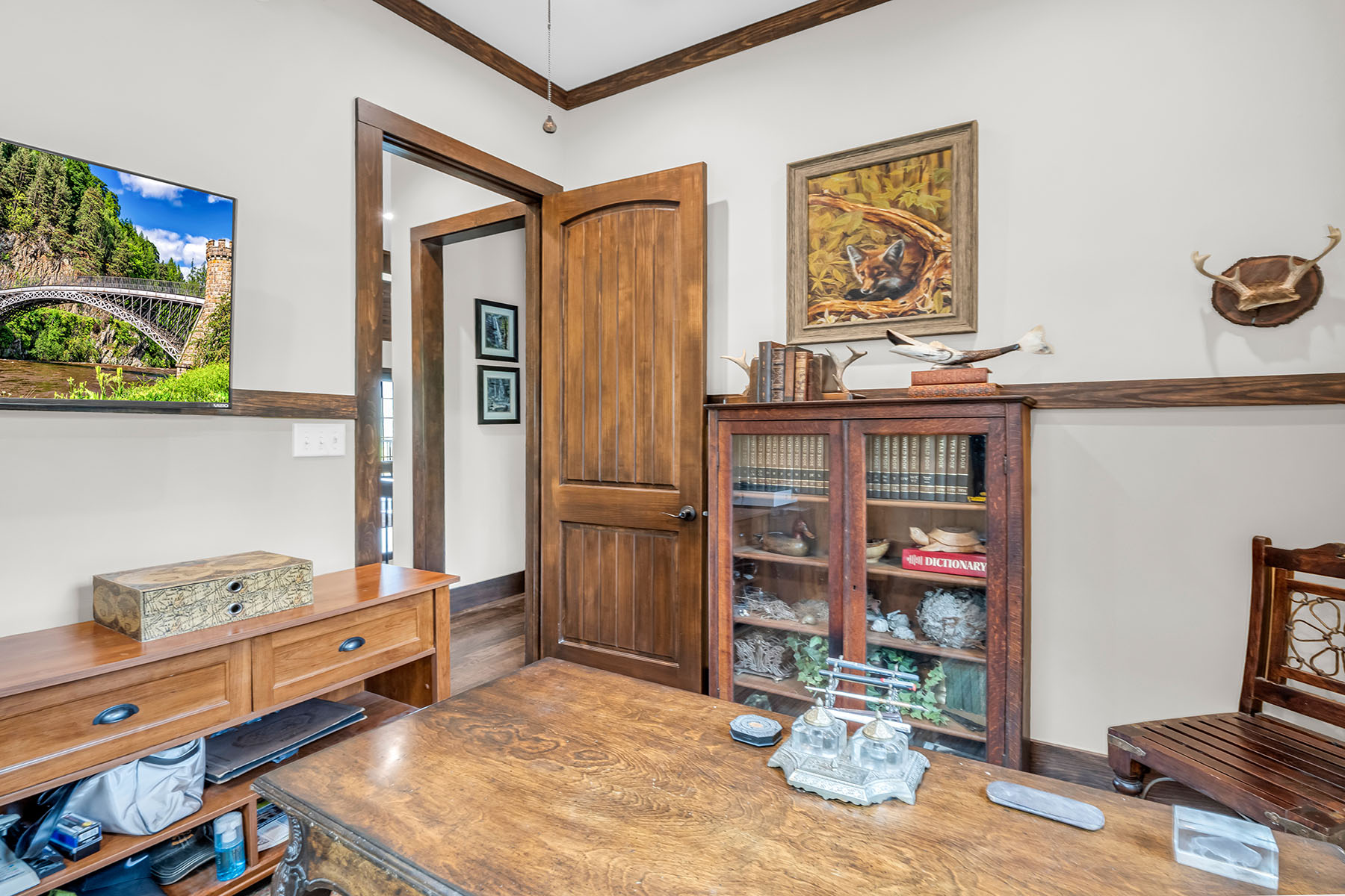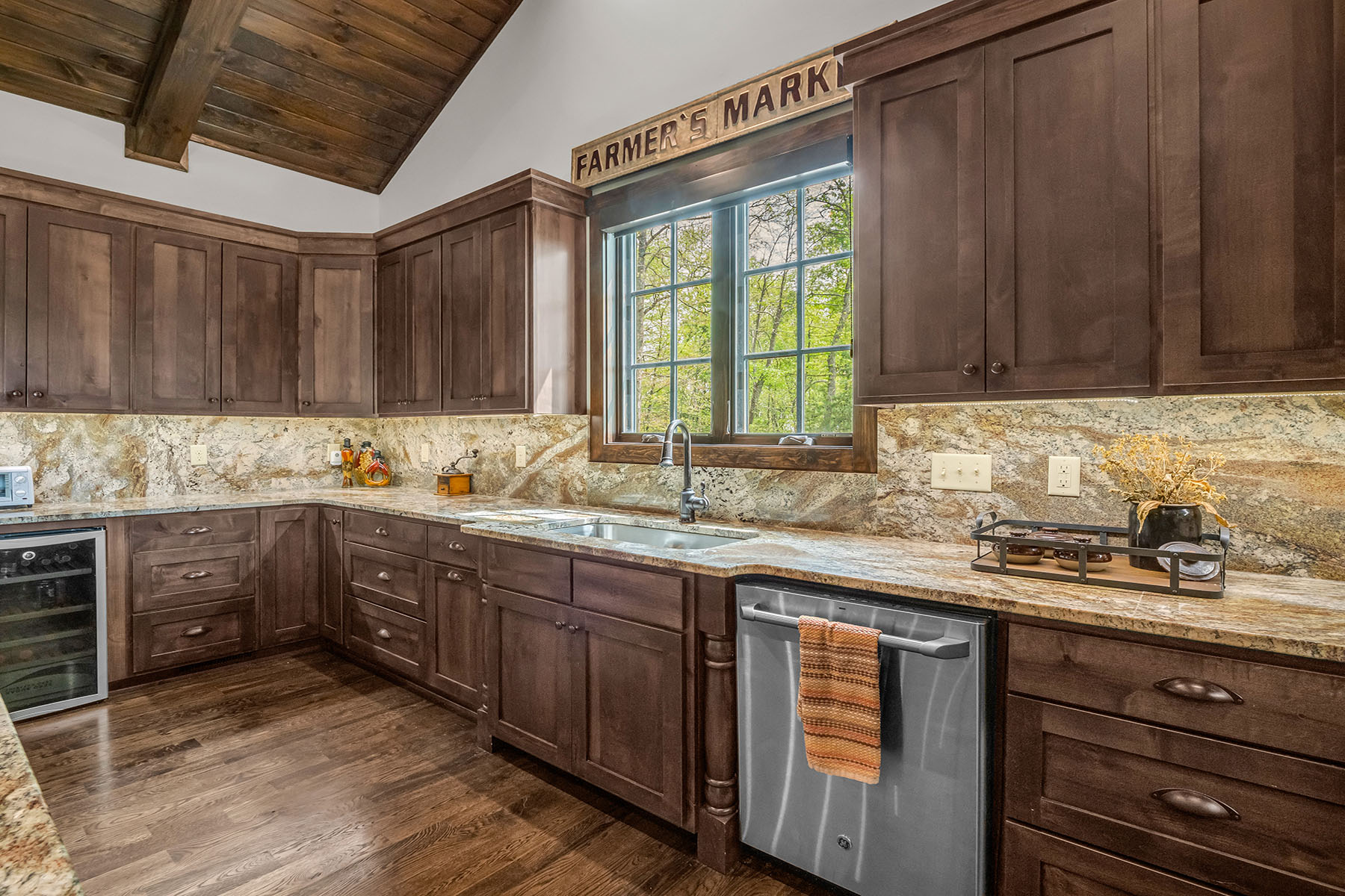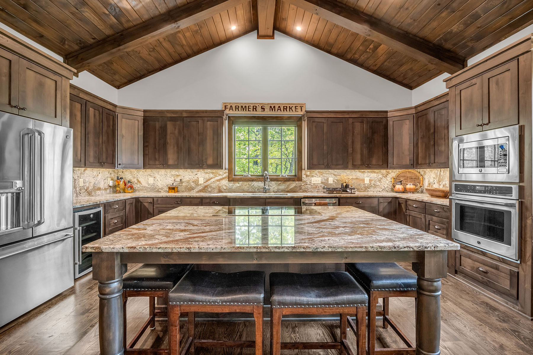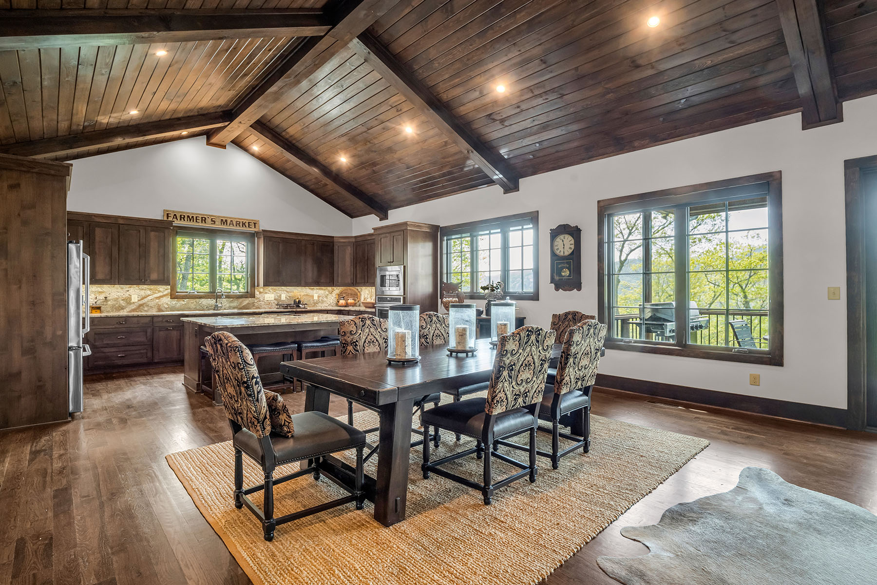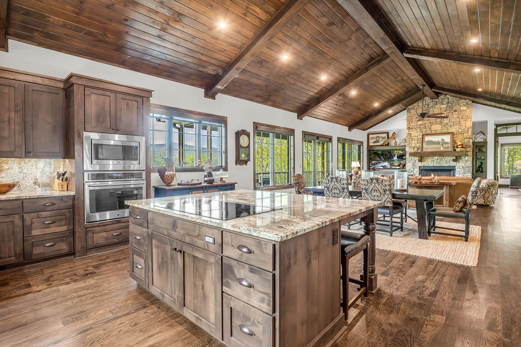 Offered fully furnished. Perched against the breathtaking silhouette of the Blue Ridge Mountains, this exceptional 4.11-acre estate offers a rare blend of refined luxury and natural beauty. Designed for those who value privacy and prestige, the home serves as a peaceful retreat where thoughtful architecture complements its rugged surroundings. A striking exterior of natural stone and classic board-and-batten siding is framed by professional landscaping that blends seamlessly into the surrounding forest, creating an immediate sense of arrival. Inside, the home embraces its setting with organic textures and expansive windows that frame stunning seasonal views. The great room is the centerpiece, featuring soaring vaulted tongue-and-groove ceilings supported by heavy timber beams and a dramatic floor-to-ceiling stacked-stone fireplace. This inviting space flows effortlessly into a well-appointed kitchen, where rustic character meets modern convenience. Custom dark-wood cabinetry, premium stainless steel appliances, and a large granite island with an induction cooktop create a setting for everyday living and entertaining. A full covered and screened deck extends the living space outdoors. The primary suite offers a private retreat, complete with its vaulted timber ceiling and direct access to the screened deck. The en-suite bath is designed for relaxation, featuring a freestanding soaking tub, a glass-enclosed shower with detailed tilework and custom wood accents that reflect the surrounding landscape. The main level also includes an additional bedroom and full bath, a private office, a walk-in pantry and a separate laundry room. The lower level, accessible by elevator and stairs, provides an ideal space for recreation and guests. Polished concrete floors, a second stone fireplace and a distinctive Coca-Cola-themed bar give the space a unique character, while two guest en-suite bedrooms offer comfort and privacy. Ample storage is available throughout. Go out onto the lower patio to enjoy the gas fire pit or hot tub while taking in the mountain views. Outside, the property continues to impress with expansive decking, a three-car attached garage and over 600 unfinished square feet above the garage ready for customization, ideal for a guest suite, studio or additional living space. This is more than a home, it's a mountain retreat designed for comfort, style and lasting connection to nature.