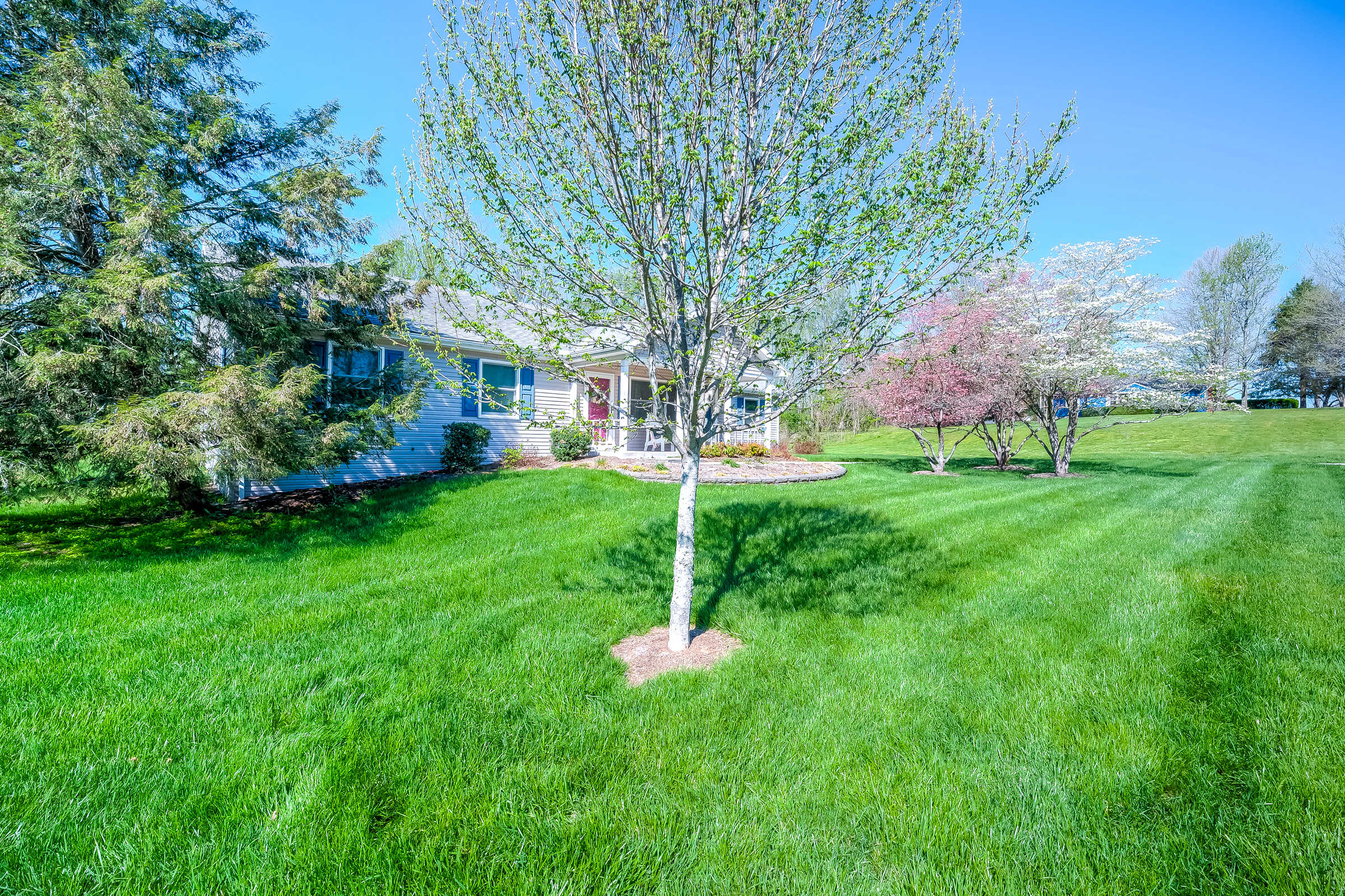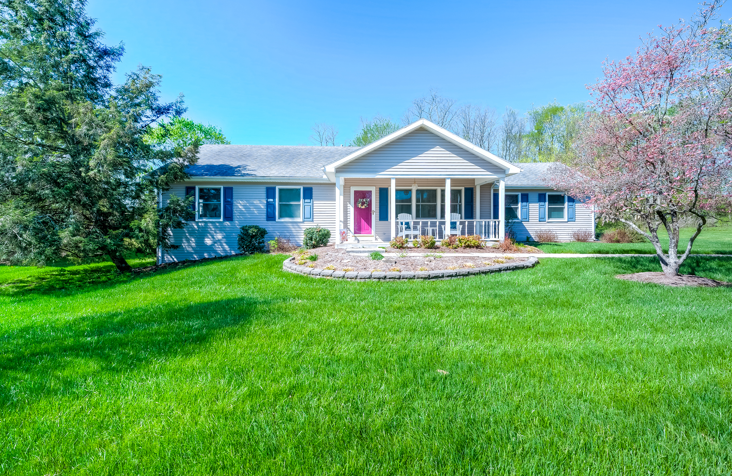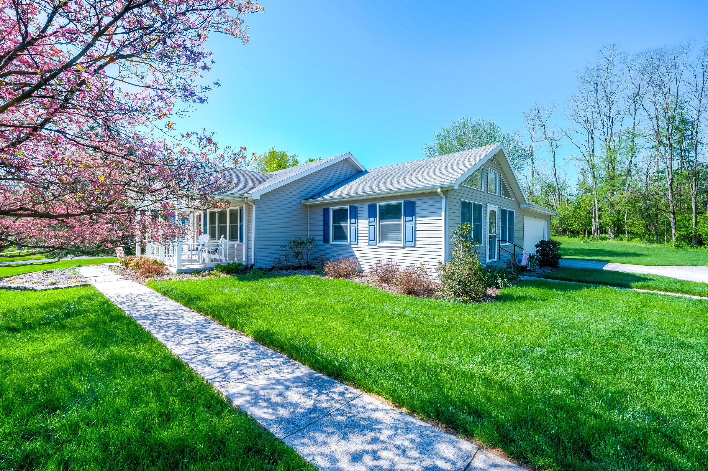 Situated on a beautifully landscaped mature lot backing to green space, this 3 Br, 2 bath ranch design offers comfort, convenience and a private , peaceful setting. This well maintained home features a large family room adjacent to the bright, well equiped kitchen and dining area. In addition to 3 spacious bedrooms and 2 baths, this home feature an awesome flex room with vaulted ceilings and custom windows creating a captivating space. There is also a large laundry room and large 2 car side entry garage. A large rear patio looks over your park like rear yard ideal for relaxing. Don't miss this special offering.