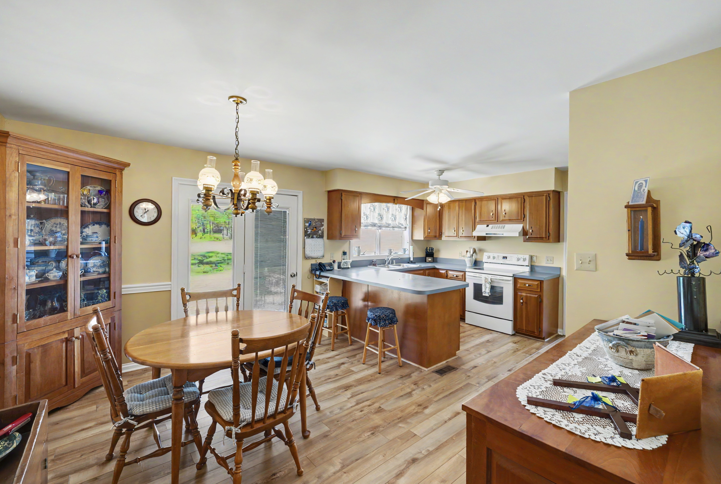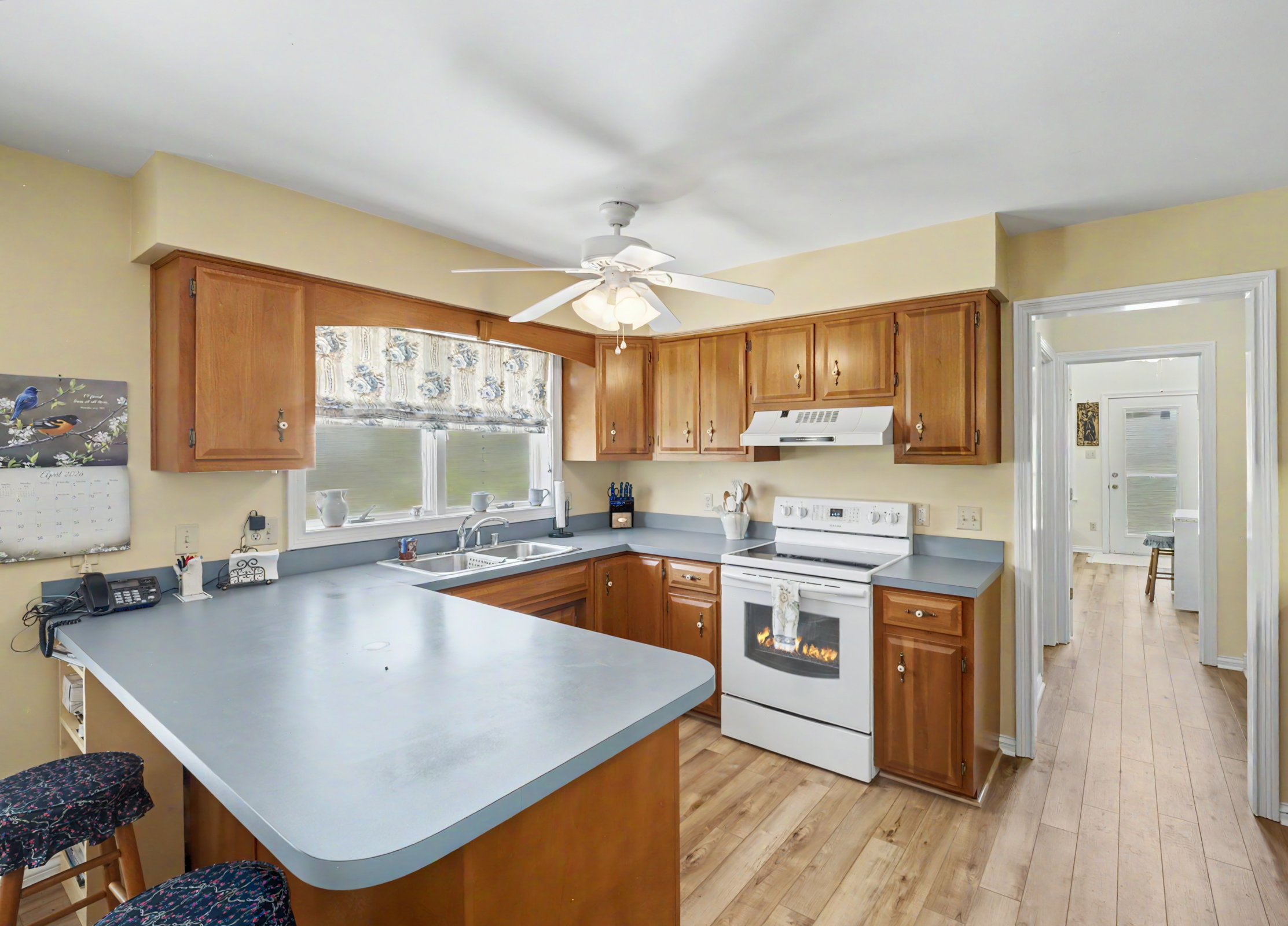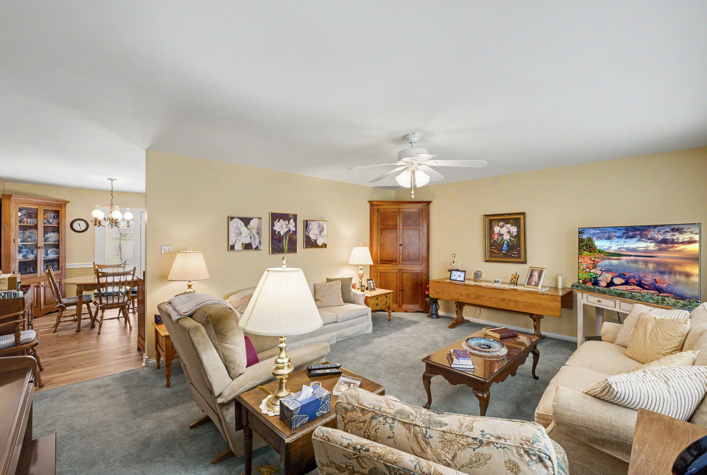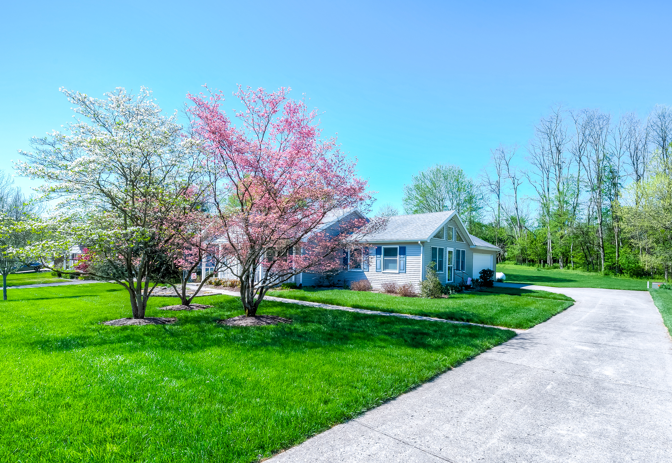 Situated on a beautifully landscaped mature lot backing to green space, this 3 Br, 2 bath ranch design offers comfort, convenience and a private , peaceful setting. This well maintained home features a large family room adjacent to the bright, well equiped kitchen and dining area. In addition to 3 spacious bedrooms and 2 baths, this home feature an awesome flex room with vaulted ceilings and custom windows creating a captivating space. There is also a large laundry room and large 2 car side entry garage. A large rear patio looks over your park like rear yard ideal for relaxing. Don't miss this special offering.