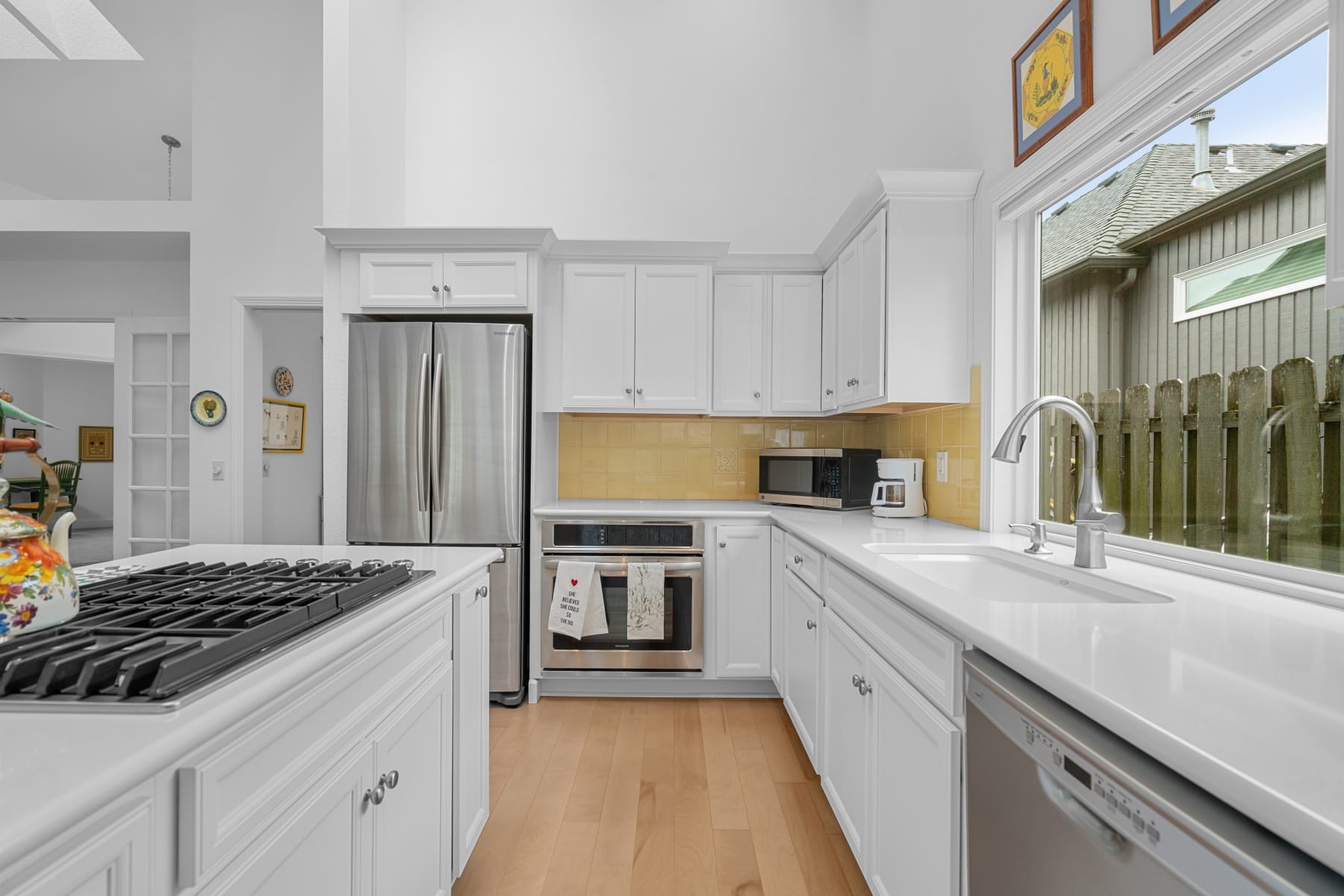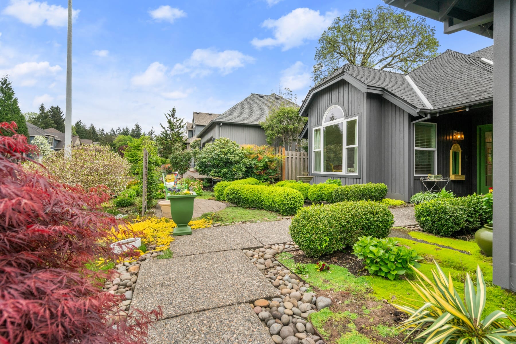 Impeccably maintained and move-in ready! Welcome to this single-level gem in Lake Oswego's coveted Windfield neighborhood; this could likely be the one you have been waiting for! Enjoy the new roof (2025), updated furnace & AC (2024), newer water heater, and fresh exterior paint (2024). This home has been lovingly maintained, and it shows in every detail. With 2,038 sq ft, the 2-bedroom, den, 2-bath floor plan is as functional as it is beautiful, with vaulted ceilings throughout the Kitchen/nook/ family room! The skylights and windows flood every room with natural light. There is superb circular flow with the living and dining rooms moving easily into the great room. The family room features a tiled gas fireplace and French doors opening to the backyard, while the kitchen impresses with a generous island, built-in gas stovetop, loads of cabinets, and a sunny south facing coffee nook. A charming set of French doors open into the office which include extensive built-ins. The primary suite is a peaceful retreat with vaulted ceiling, abundant natural light, and an en suite bath with skylight, double sinks, soaking tub, glass shower, and a spacious walk-in closet. The laundry room is equally well-appointed with built-in storage, washer and dryer, and direct garage access. The oversize two car garage is finished, clean and includes a newer garage door & openers.Outside, a concrete patio is ideal for entertaining, a fully fenced backyard provides privacy, and a stone path winds around to the welcoming front entry patio with room for potted gardening; all nestled in one of the most charming neighborhoods in the area. Welcome home!Pristine, polished, and ready for you!