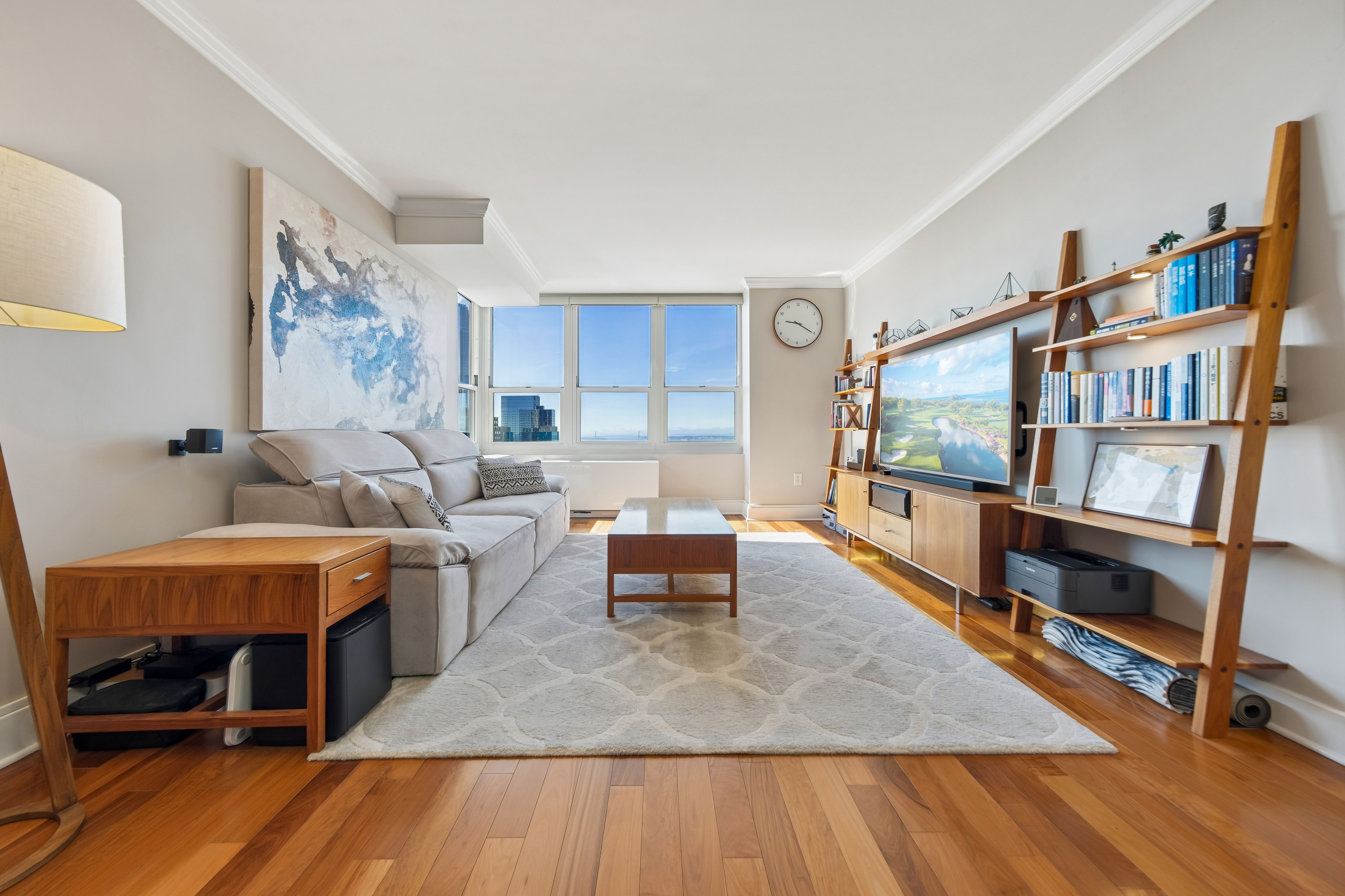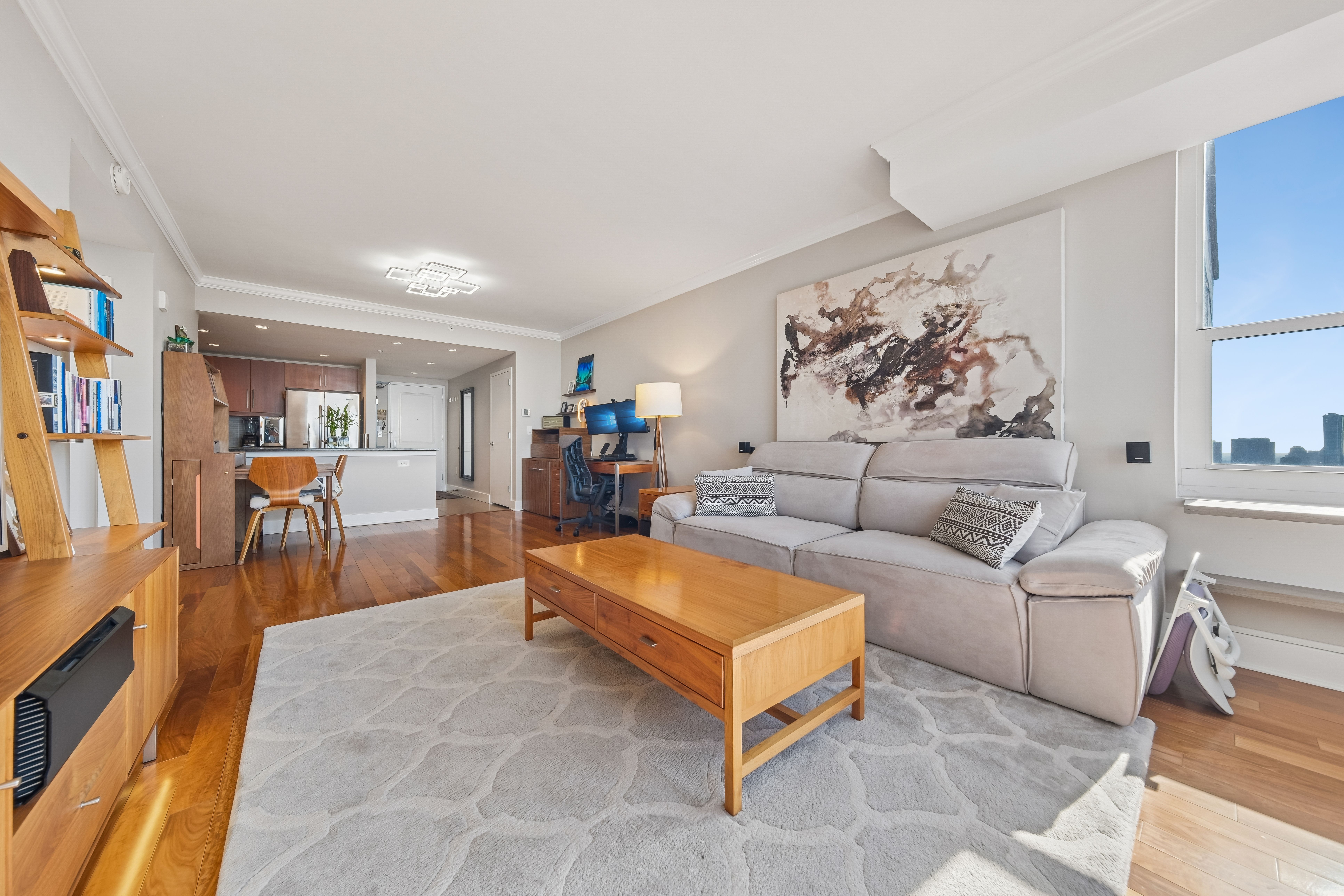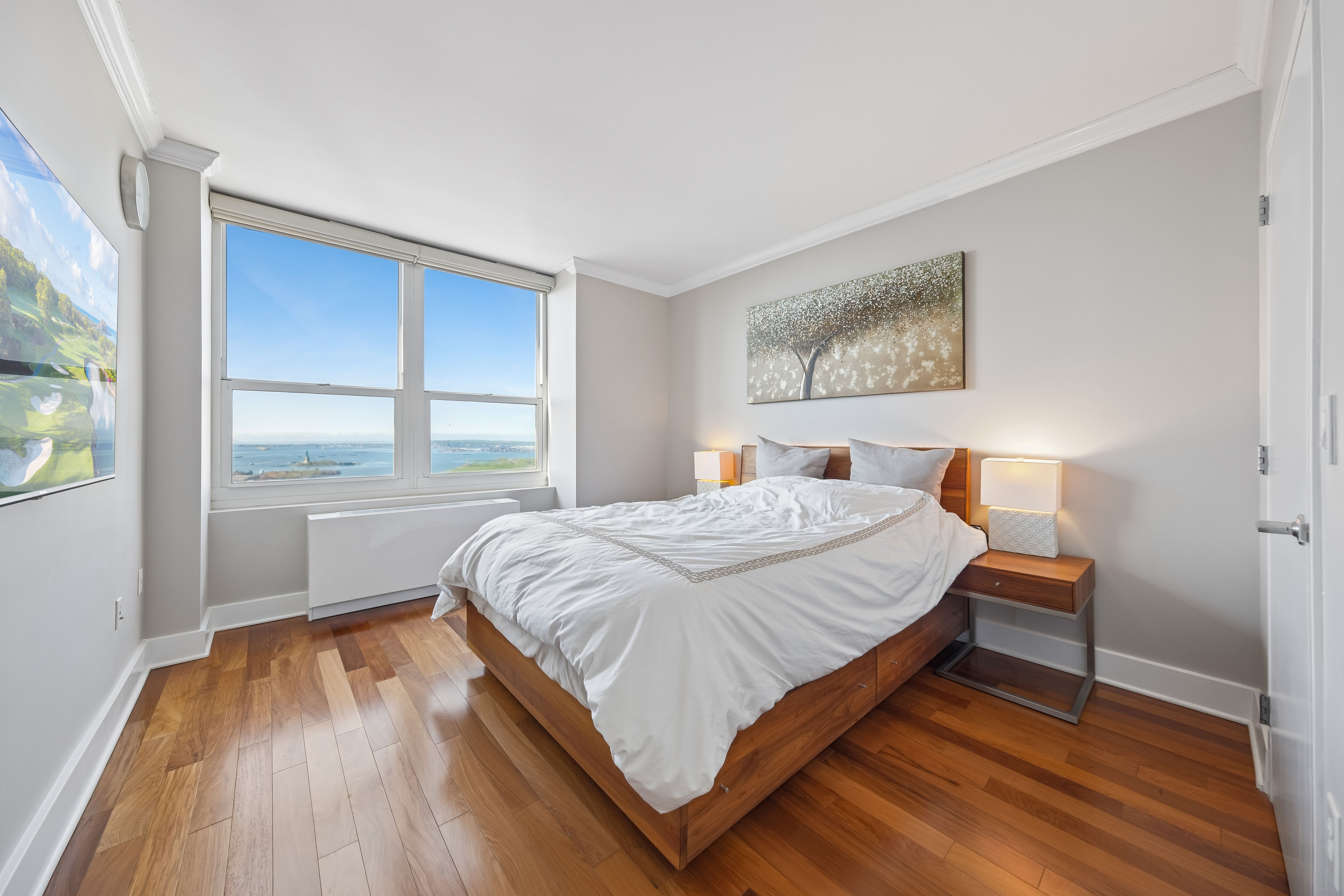 Recognized as one of the most impeccably maintained homes in the building, this 52nd-floor Penthouse at 88 Morgan Street offers one of the largest and most efficient 1-bedroom layouts in the entire Jersey City Waterfront. By combining expansive square footage, premium floor height, and an extensive list of high-end owner upgrades, this residence represents the highest value 1-bedroom opportunity currently on the local market. The sun-drenched interior is defined by breathtaking South and East vistas of the Manhattan Skyline, NY Harbor, and Liberty State Park. Perched on one of the highest floors in the neighborhood, the home’s panoramic views and natural light are uniquely positioned to remain a permanent hallmark of the residence. Every detail has been curated for a complete turn-key experience, featuring a suite of modern upgrades: 2025/2024: New Bathroom Vanity lighting, Moen Smart Touchless Kitchen Faucet, and modern remote-controlled ceiling lights. 2023/2022: New Living Room PTAC and a professionally designed custom walk-in closet. Mechanicals & Finishes: All appliances have been recently replaced, complemented by an APEC Water Filtration system (filters serviced 2023), a 2019 bedroom PTAC, designer ceiling moldings, and Hunter Douglas window treatments throughout. The generous floor plan includes an oversized bedroom that easily accommodates a king-sized bed, while the U-shaped kitchen—finished with natural stone and abundant cabinetry—flows seamlessly into the dining and living areas. Living at 88 Morgan Street provides access to 41,000 square feet of resort-style amenities, including a heated outdoor pool, sauna, golf simulator, and marble-clad resident lounges. Garage parking is available for rent within the building for added convenience. Located just one block from Whole Foods and steps from the PATH and Ferry, this penthouse offers an unparalleled lifestyle in the heart of the city.