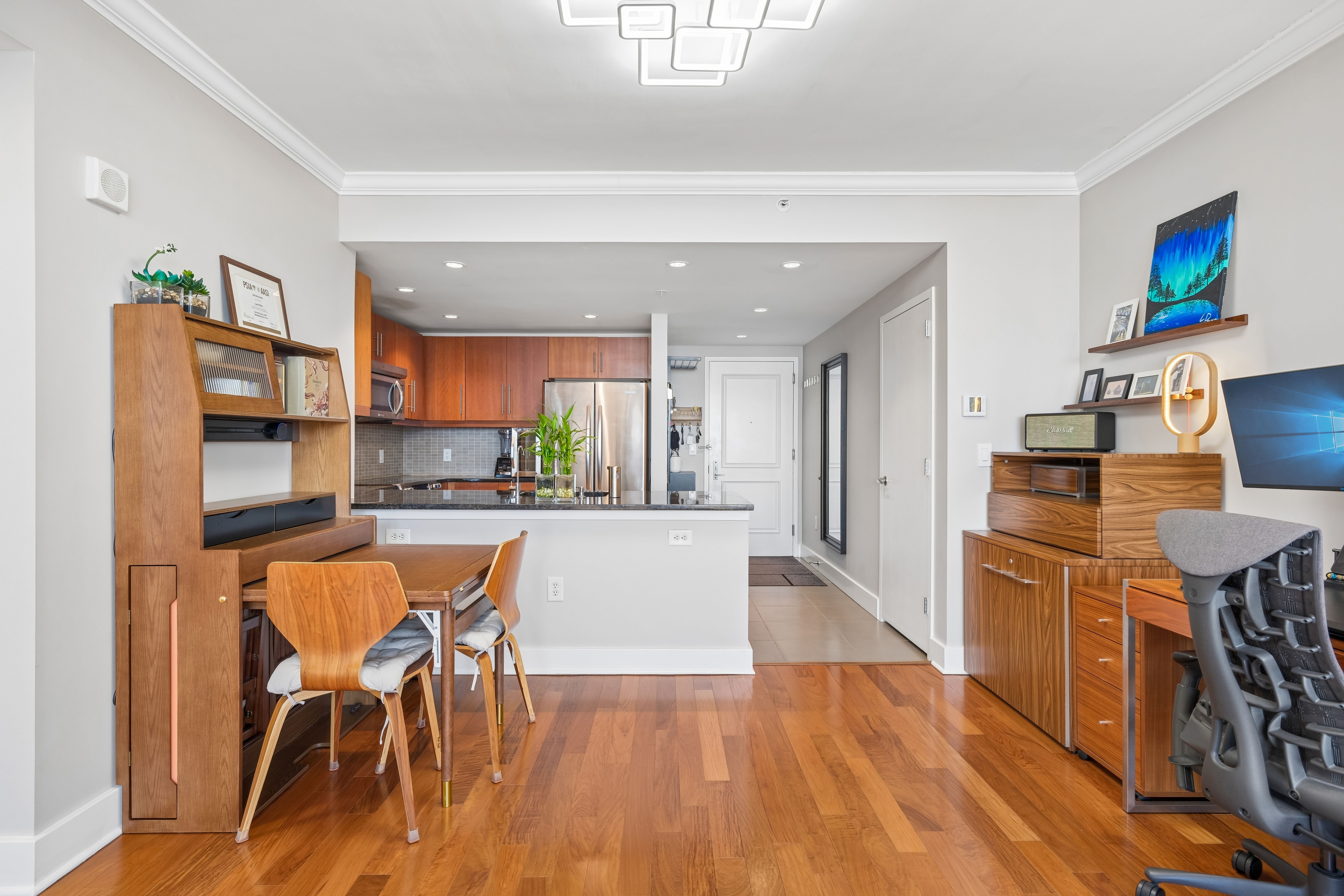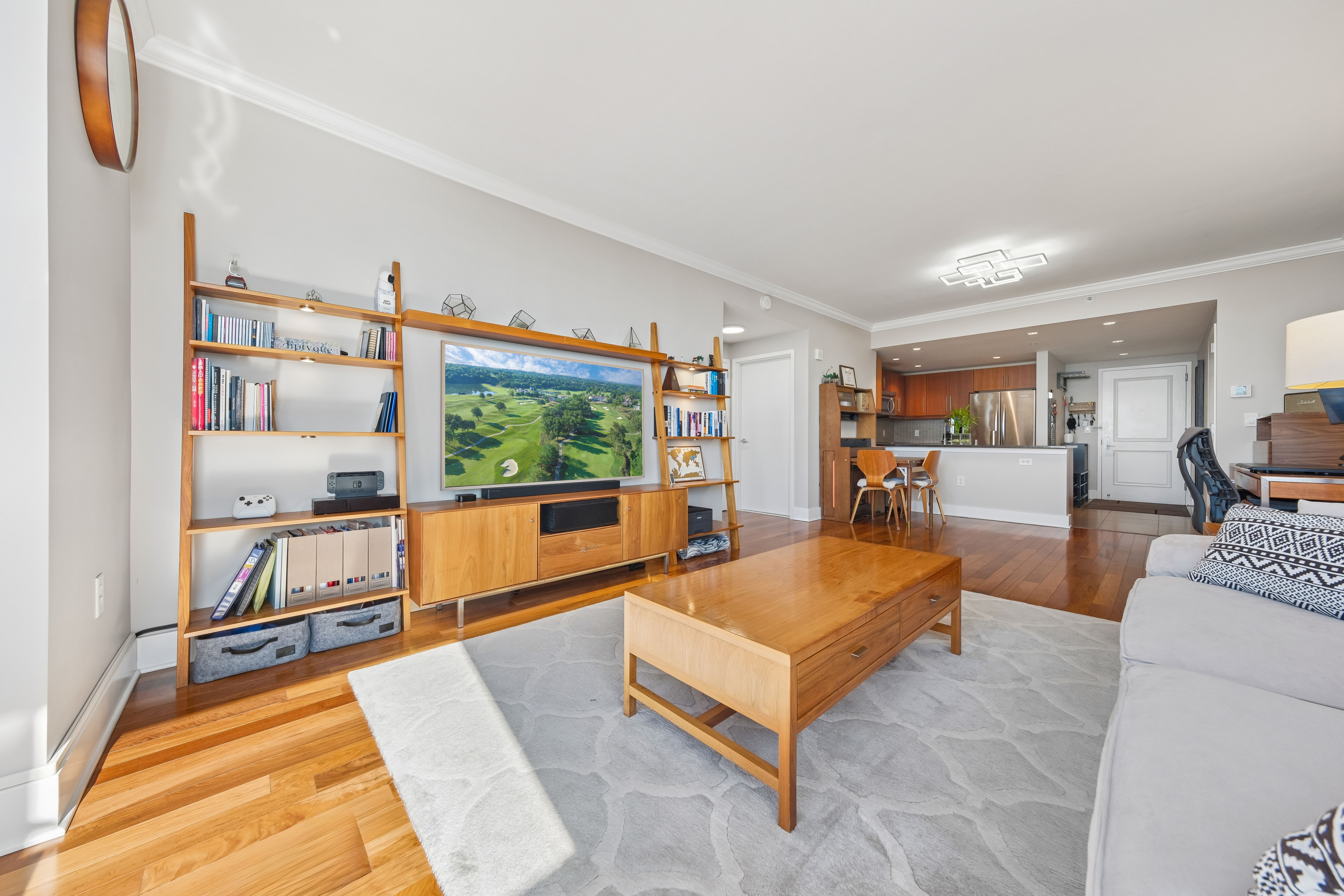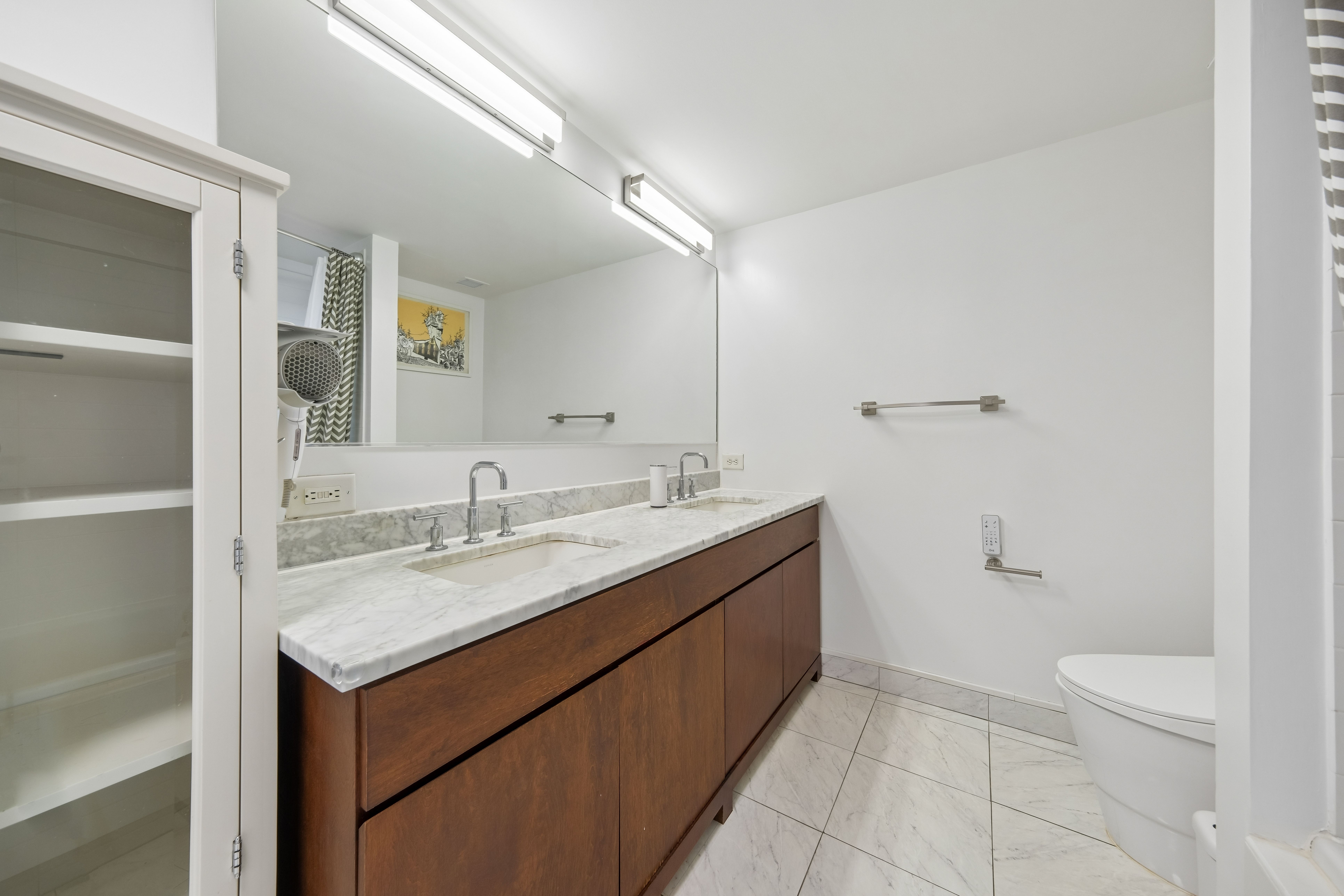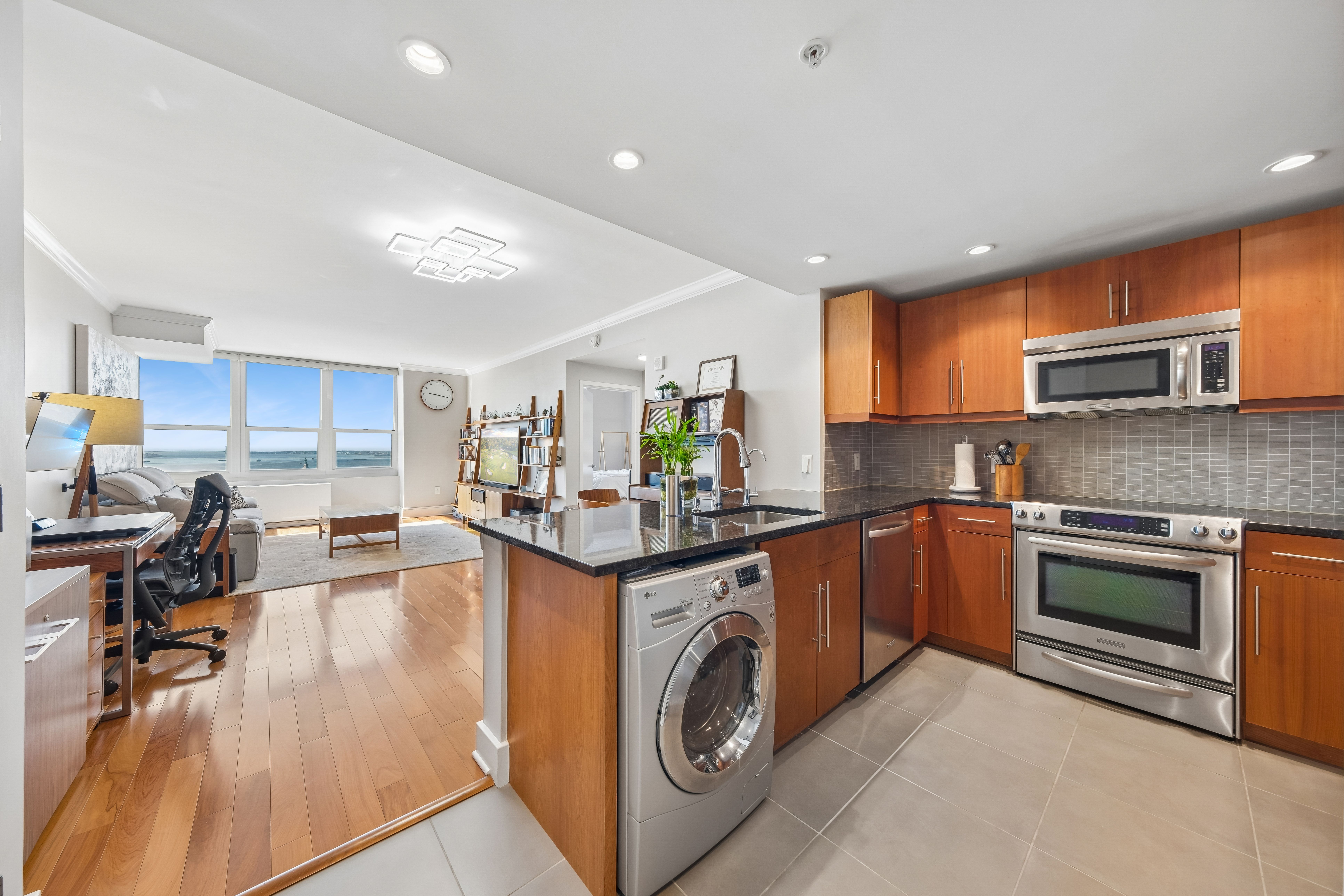 Recognized as one of the most impeccably maintained homes in the building, this 52nd-floor Penthouse at 88 Morgan Street offers one of the largest and most efficient 1-bedroom layouts in the entire Jersey City Waterfront. By combining expansive square footage, premium floor height, and an extensive list of high-end owner upgrades, this residence represents the highest value 1-bedroom opportunity currently on the local market. The sun-drenched interior is defined by breathtaking South and East vistas of the Manhattan Skyline, NY Harbor, and Liberty State Park. Perched on one of the highest floors in the neighborhood, the home’s panoramic views and natural light are uniquely positioned to remain a permanent hallmark of the residence. Every detail has been curated for a complete turn-key experience, featuring a suite of modern upgrades: 2025/2024: New Bathroom Vanity lighting, Moen Smart Touchless Kitchen Faucet, and modern remote-controlled ceiling lights. 2023/2022: New Living Room PTAC and a professionally designed custom walk-in closet. Mechanicals & Finishes: All appliances have been recently replaced, complemented by an APEC Water Filtration system (filters serviced 2023), a 2019 bedroom PTAC, designer ceiling moldings, and Hunter Douglas window treatments throughout. The generous floor plan includes an oversized bedroom that easily accommodates a king-sized bed, while the U-shaped kitchen—finished with natural stone and abundant cabinetry—flows seamlessly into the dining and living areas. Living at 88 Morgan Street provides access to 41,000 square feet of resort-style amenities, including a heated outdoor pool, sauna, golf simulator, and marble-clad resident lounges. Garage parking is available for rent within the building for added convenience. Located just one block from Whole Foods and steps from the PATH and Ferry, this penthouse offers an unparalleled lifestyle in the heart of the city.