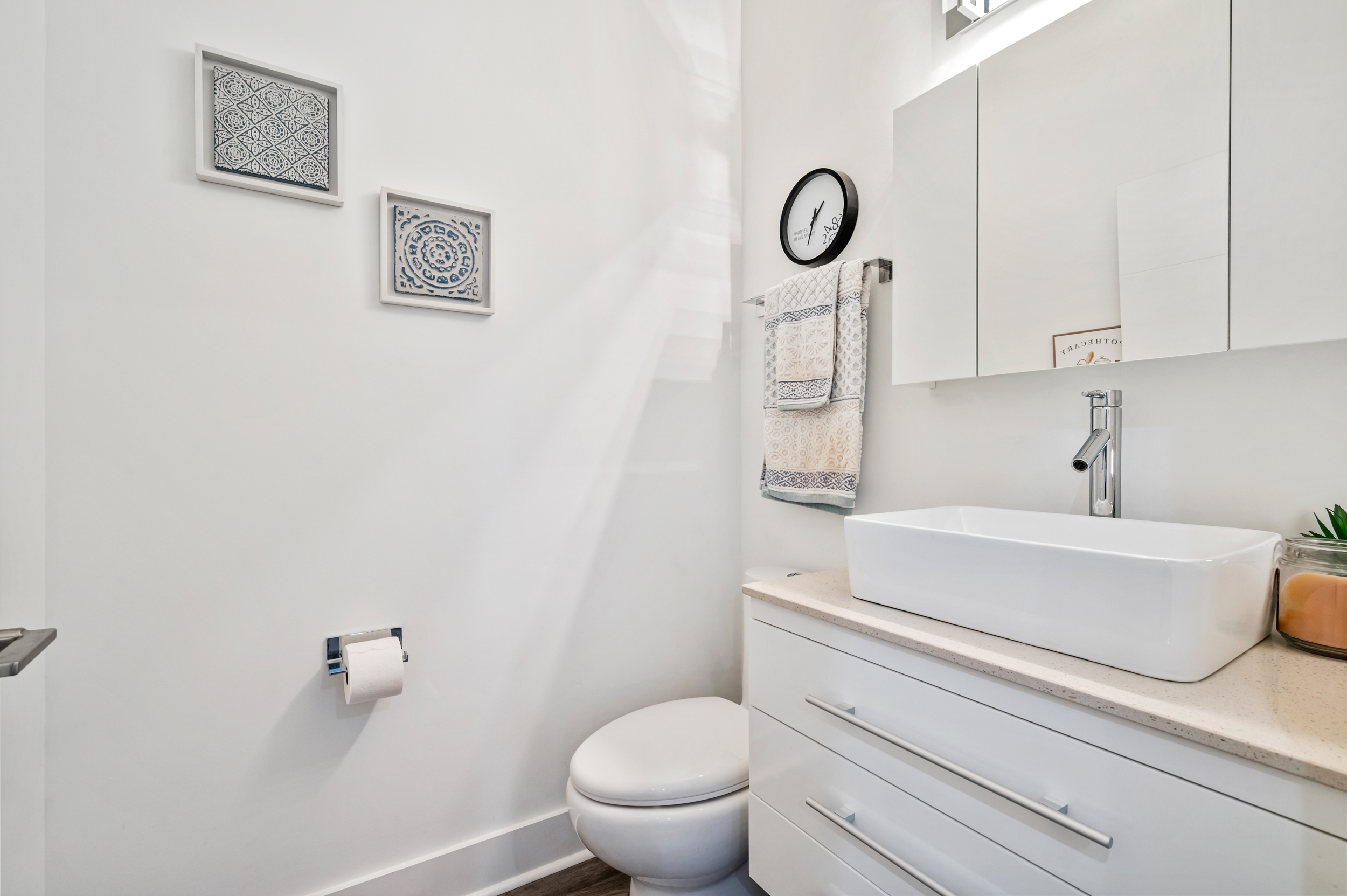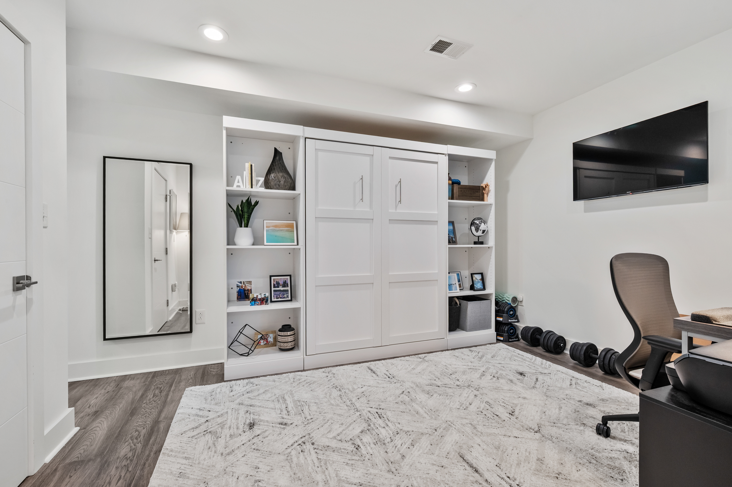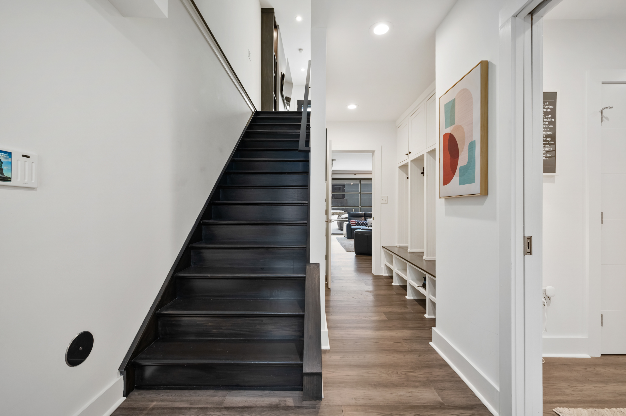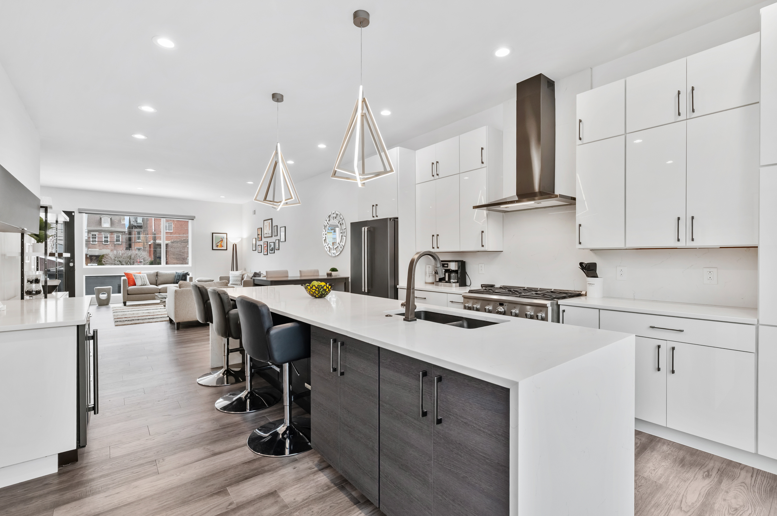 Custom-built smart home offering 4 levels of living and 3 levels designed for entertaining in the heart of Bloomfield. This modern residence features glass garage doors that open to create seamless indoor-outdoor living, sound-reducing windows, and numerous custom upgrades throughout. The main living level includes an open-concept kitchen with an oversized quartz island, modern cabinetry, a beverage center, and a wine fridge. Large windows provide abundant natural light while maintaining privacy and comfort. The primary suite includes a private en-suite bath and generous closet space. Two additional bedrooms offer flexibility for guests, an office, or a fitness space. The lower level is designed for entertaining with a media/entertainment room and wet bar area that opens to the fenced turfed yard. Outdoor features include a rooftop deck with city views, a 20x20 fenced yard with low-maintenance turf, and a detached 2-car garage. Conveniently located near Lawrenceville, the Strip District, hospitals, universities, dining, and downtown Pittsburgh