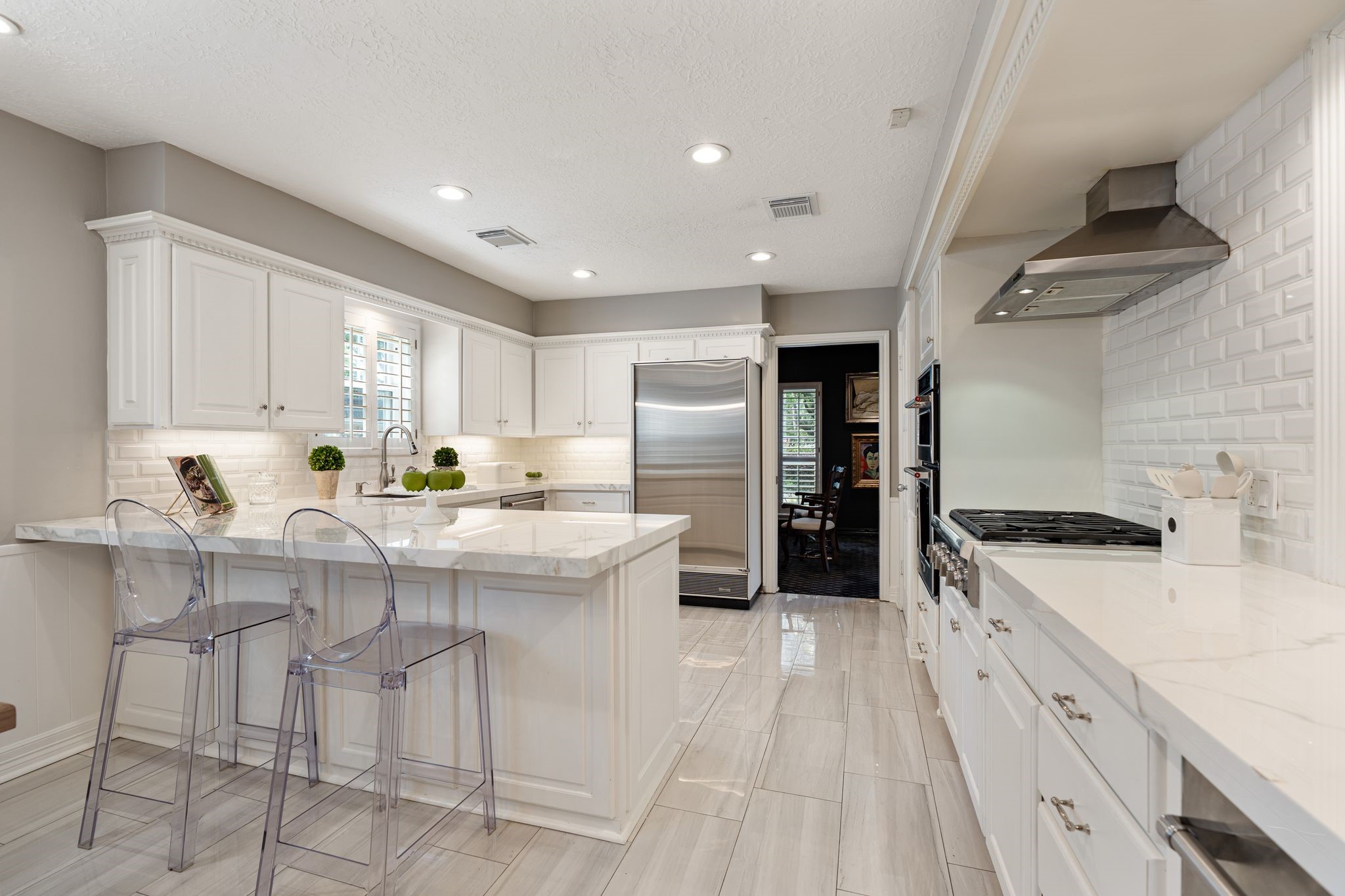Unbeatable opportunity for spacious living in Wilchester West on the coveted south side! Expansive, stately residence on a charming cul-de-sac corner, just 0.2 miles from Terry Hershey Park & Trails. First-floor living features 4 bedrooms, 2 full and 2 half baths. The primary suite includes dual sinks, jetted tub, separate shower, vanity area & two oversized walk-in closets. Downstairs offers formal dining, office, soaring family room, and an updated kitchen with gas range, quartz countertops, Sub-Zero refrigerator, icemaker, and breakfast area with custom banquet. Utility room w/sink & storage just off the kitchen. Garage apartment offers large living area, wet bar with refrigerator, and full bath. Backyard is an entertainer’s dream with a heated party pool, LED lighting, built-in kitchen with sink & multiple lounging areas. Two-car garage + extended driveway. Zoned to WCE, MMS & Stratford (Buyer to verify). Property & Improvements did not flood during Harvey. All info per Seller.