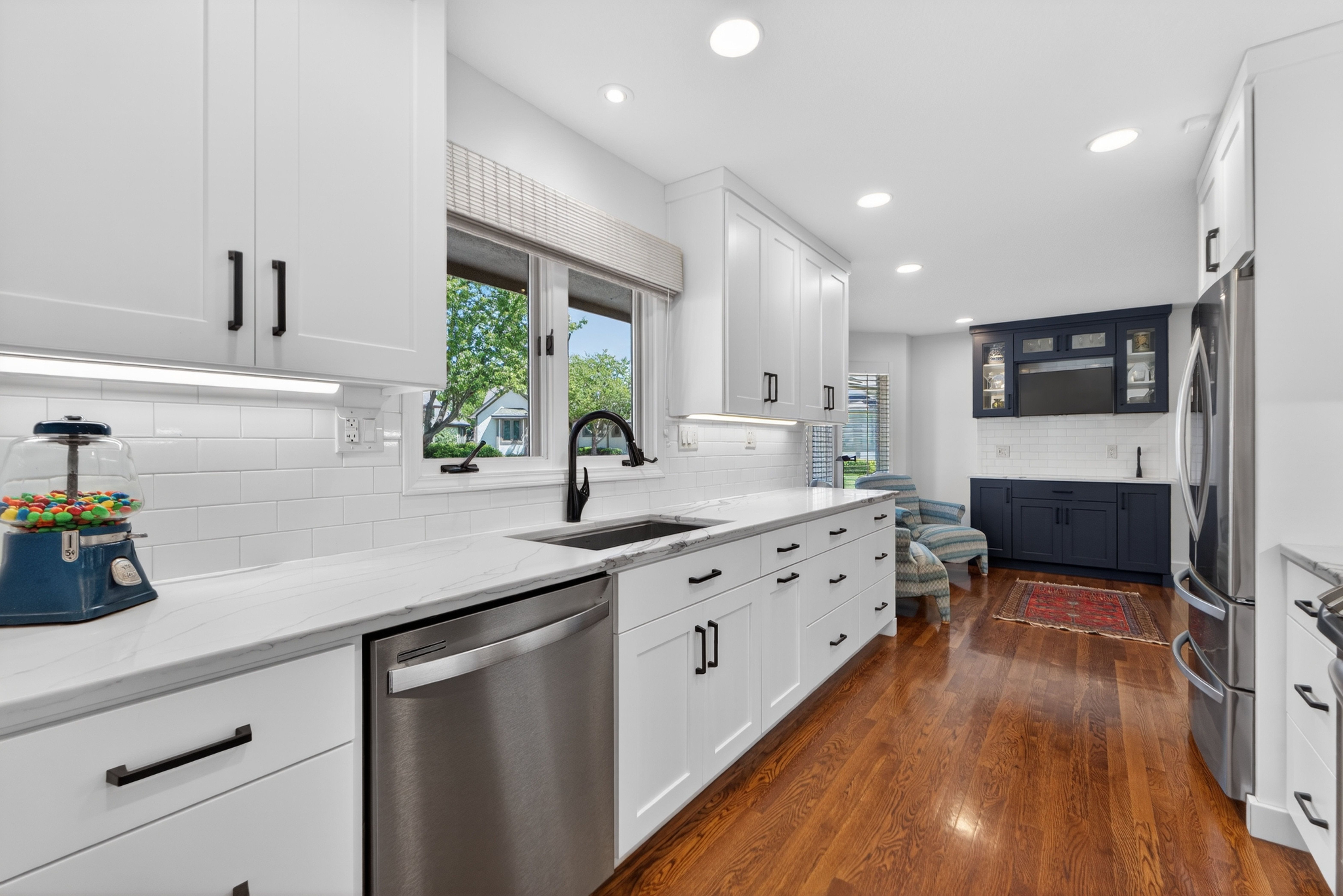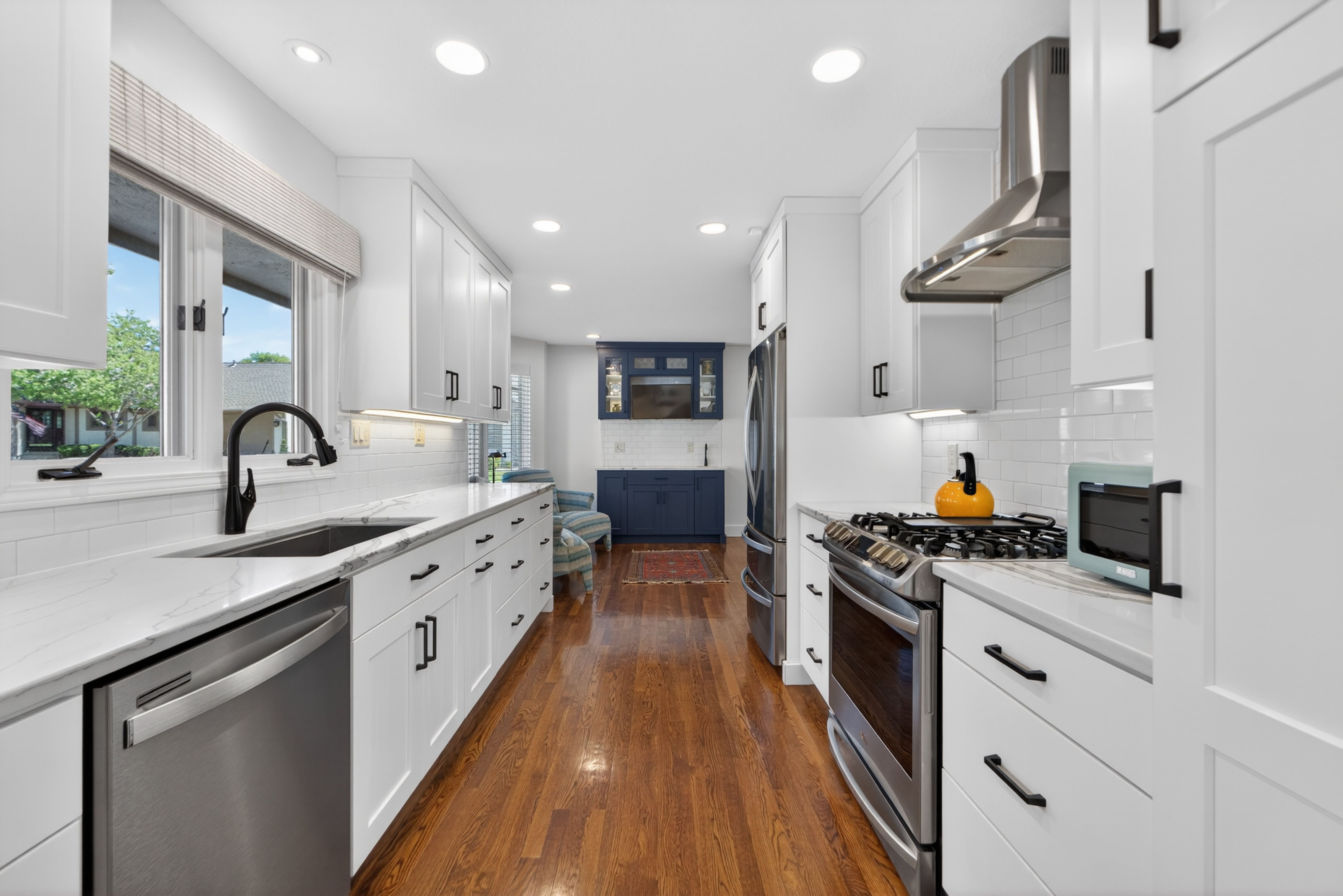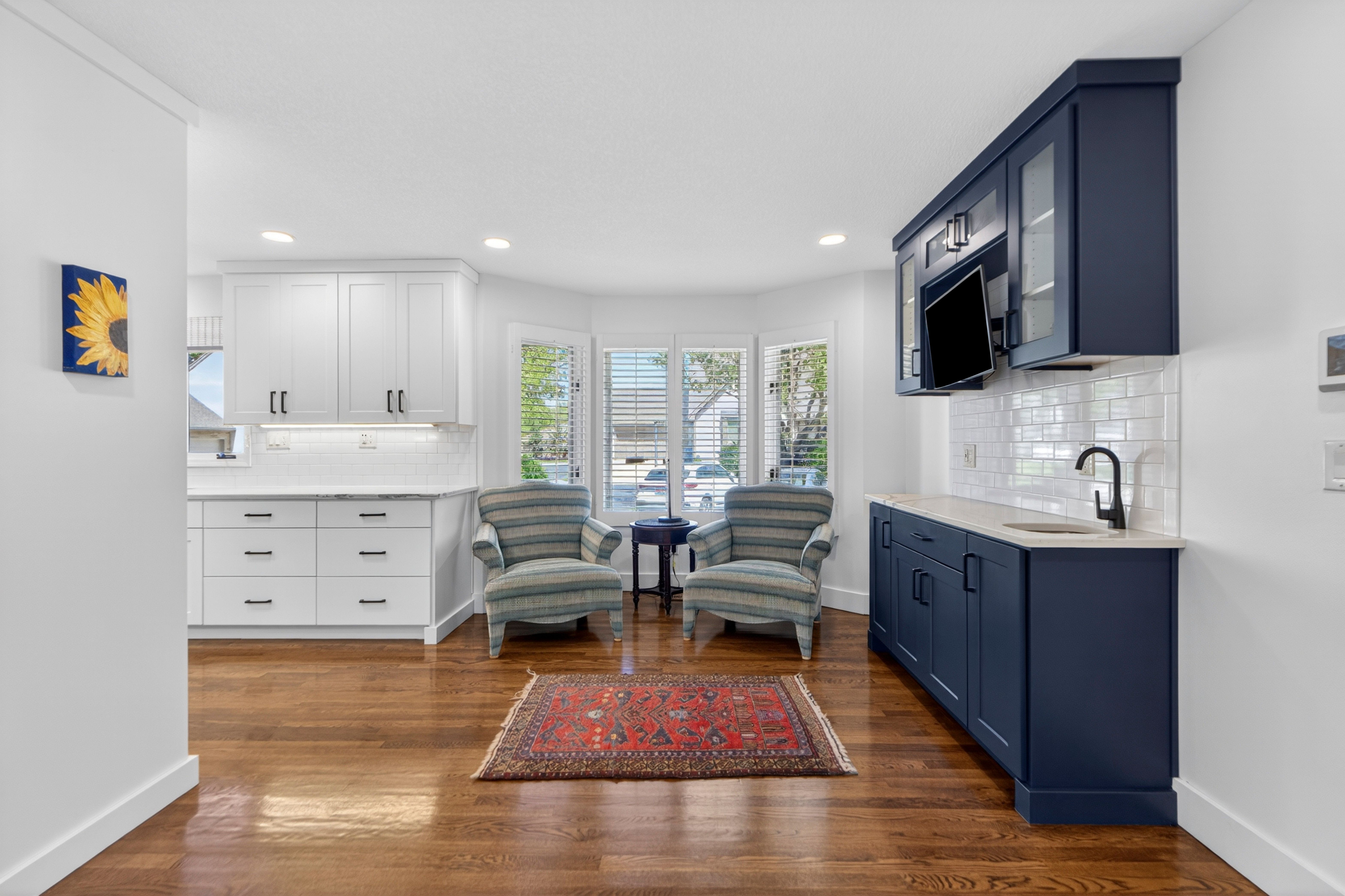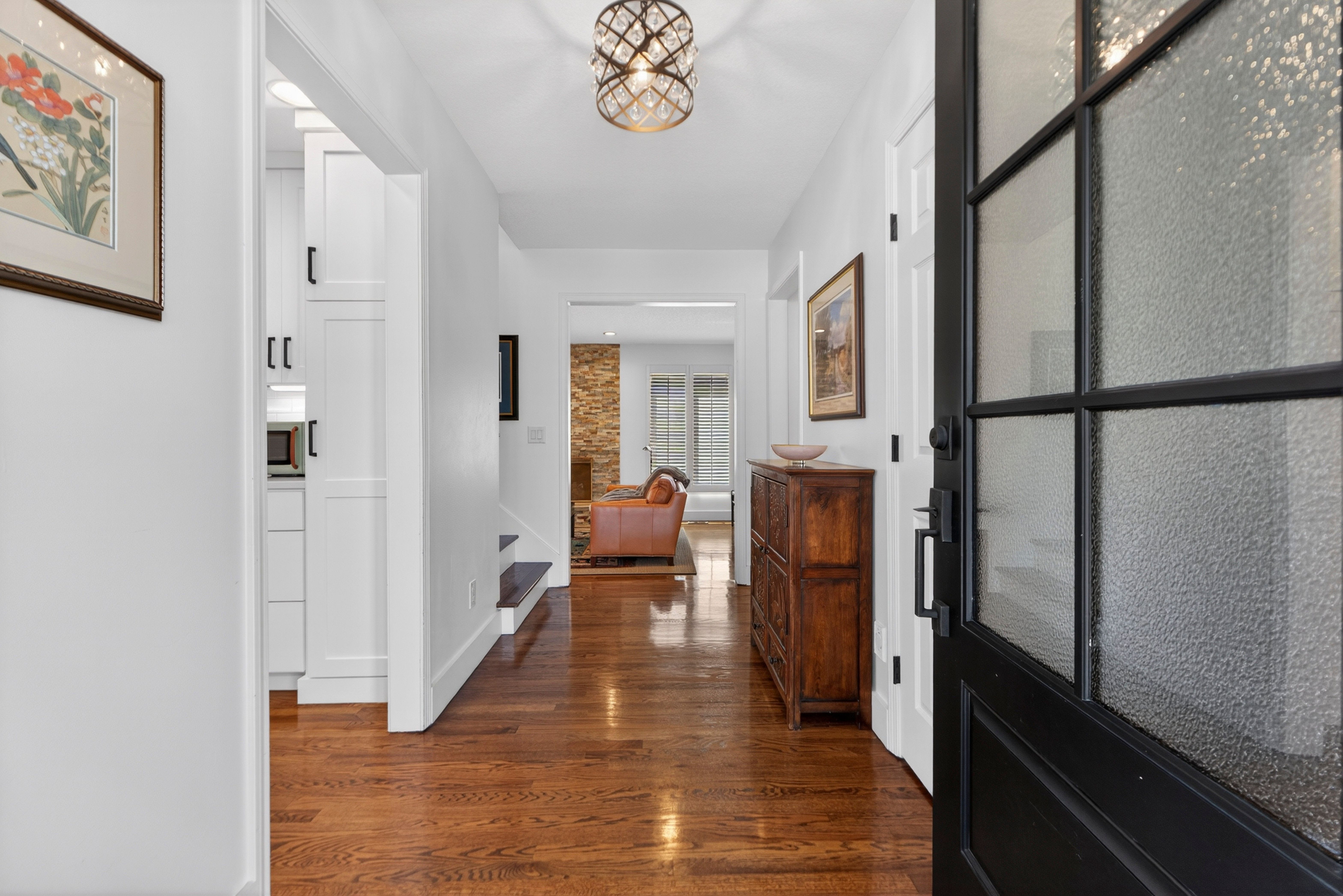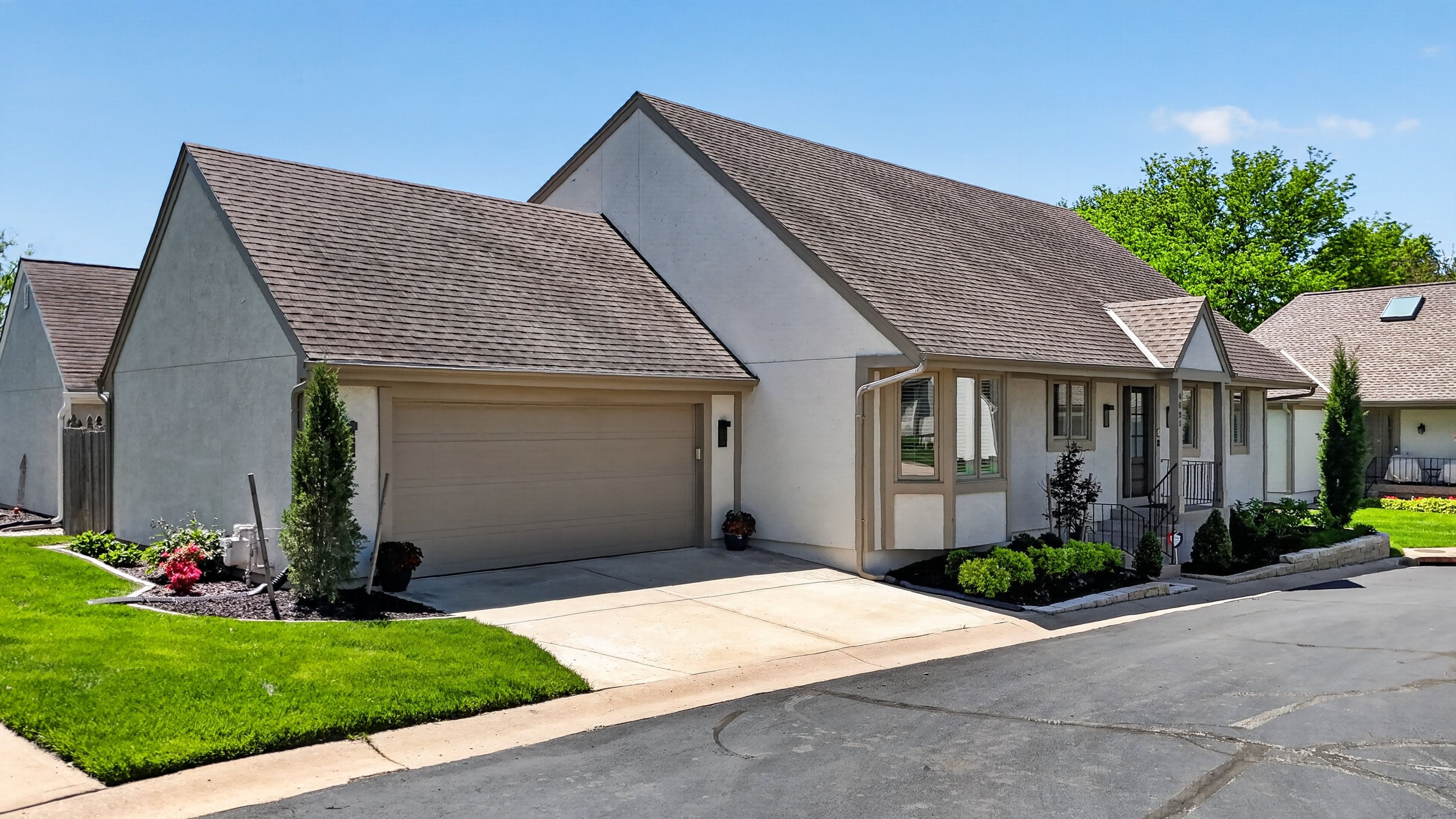 Set within one of Prairie Village’s most established and quietly desirable pockets, just moments from Franklin Park and Meadowbrook Park, this nearly fully reimagined villa reflects a thoughtful approach to both design and livability. The renovation is evident not in a single moment, but in the continuity of materials, light, and proportion that carries throughout the home. The main level unfolds with intention, grounded by hardwood floors that span the entirety of the first floor and softened by an abundance of natural light. Living spaces connect effortlessly, anchored by a fireplace that introduces both warmth and structure, while a dedicated beverage station adds a layer of everyday ease—equally suited for morning rituals or evening gatherings. At the center, the kitchen is both refined and functional, appointed with stainless steel appliances and designed to integrate seamlessly into the surrounding living and dining areas. It’s a space that supports connection without sacrificing clarity of design. The primary suite offers a sense of retreat, where scale and finish come together to create a calming, private experience. The bath is particularly considered, featuring heated floors and a steam shower that brings a spa-like quality into daily life. Upstairs, a generous loft sits between the bedrooms, offering a flexible, light-filled environment that can adapt to a variety of needs—whether as a secondary living area, workspace, or quiet escape. Outdoors, the home extends gracefully into curated landscaping at both the front and back, where a private patio creates an inviting setting for gathering or unwinding. A drip irrigation system supports the grounds with quiet efficiency, reinforcing the home’s balance of beauty and function. Composed with intention and executed with care, this Prairie Village villa delivers a living experience defined by light, flow, and understated refinement.