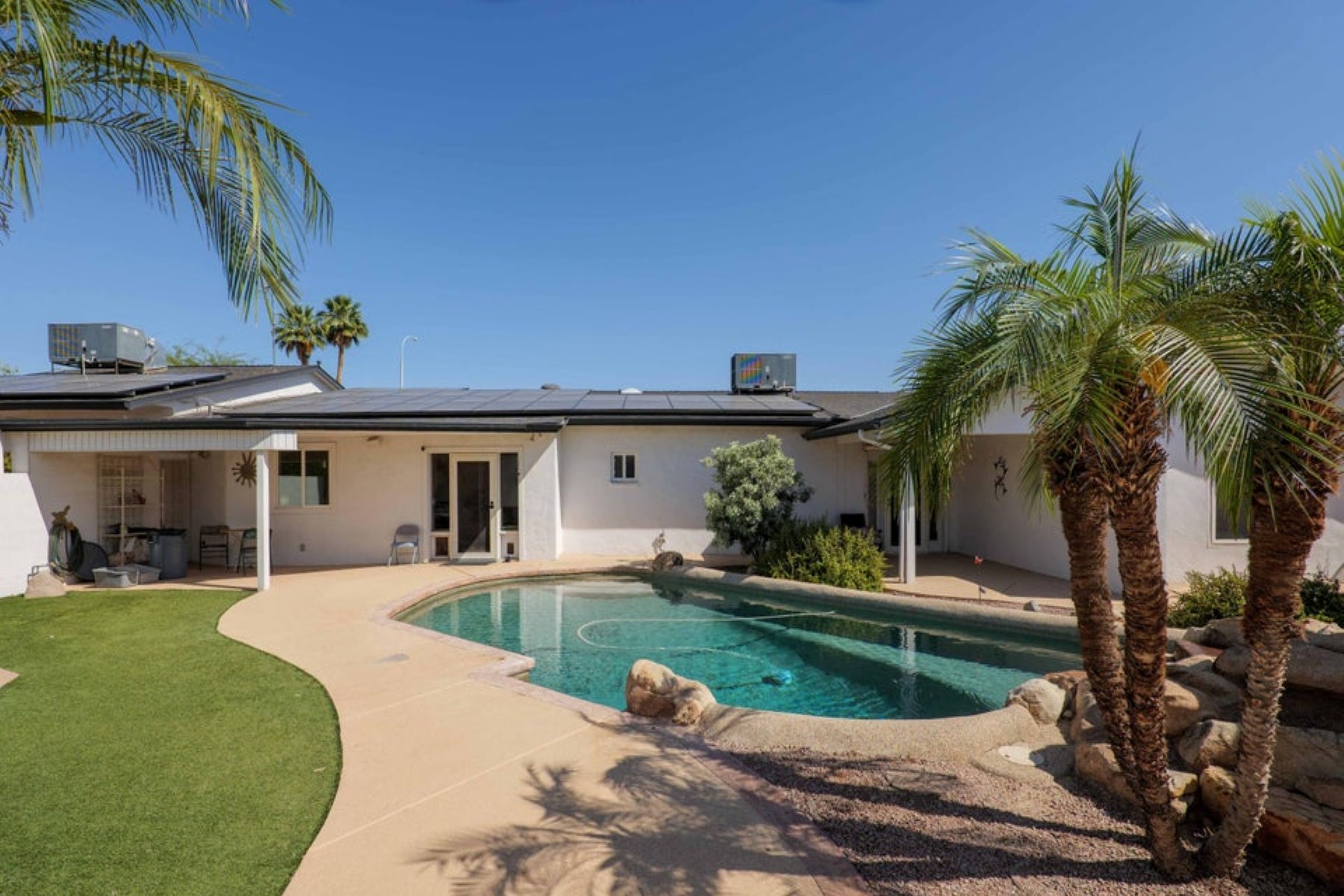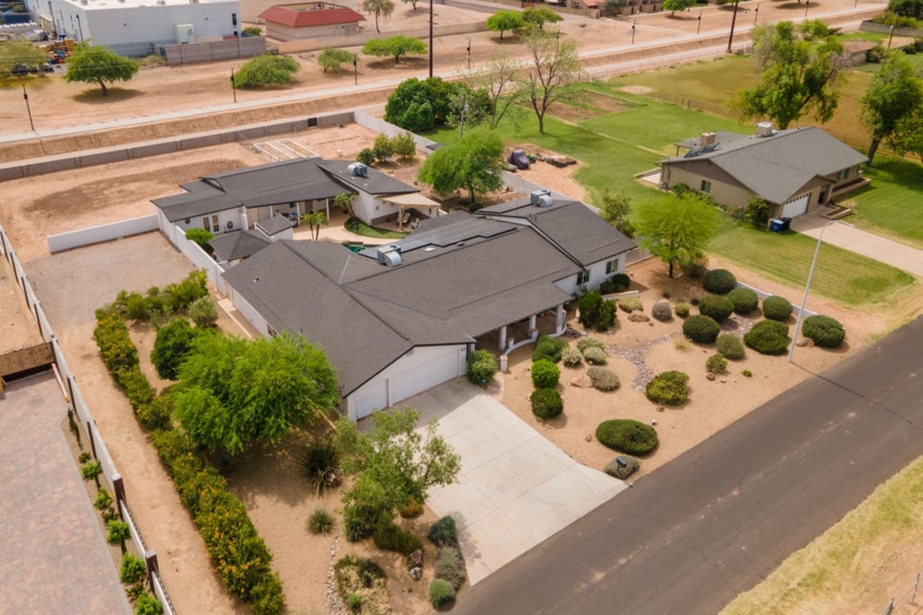 NO HOA!! Set on nearly an acre in the highly desirable Tremaine Park community of Central Chandler, this rare agricultural-zoned property with horse privileges offers an exceptional blend of freedom, function, and opportunity. Without HOA restrictions, enjoy the flexibility to truly make the property your own-bring your RV, boat, trailers, and all your lifestyle needs with ease while still maintaining privacy and space. Optional irrigation enhances the landscape, supporting mature shade trees and lush, established greenery throughout the grounds. The main residence offers 3,443 sq ft with 3 bedrooms and 3 bathrooms, featuring a comfortable and functional layout designed for everyday living and entertaining. Complementing the home is a substantial 2,020 sq ft detached mixed-use structure ideal for multi-generational living, a private office setup, creative studio, workshop, or additional storage and hobby space.Additional highlights include owned solar panels, providing long-term energy efficiency and reduced utility costs. 3 Car Garage with plenty of space to utilize additional parking.A truly unique Chandler opportunity--acreage, flexibility, horse privileges, and no HOA in one of the most convenient central locations in the Valley.