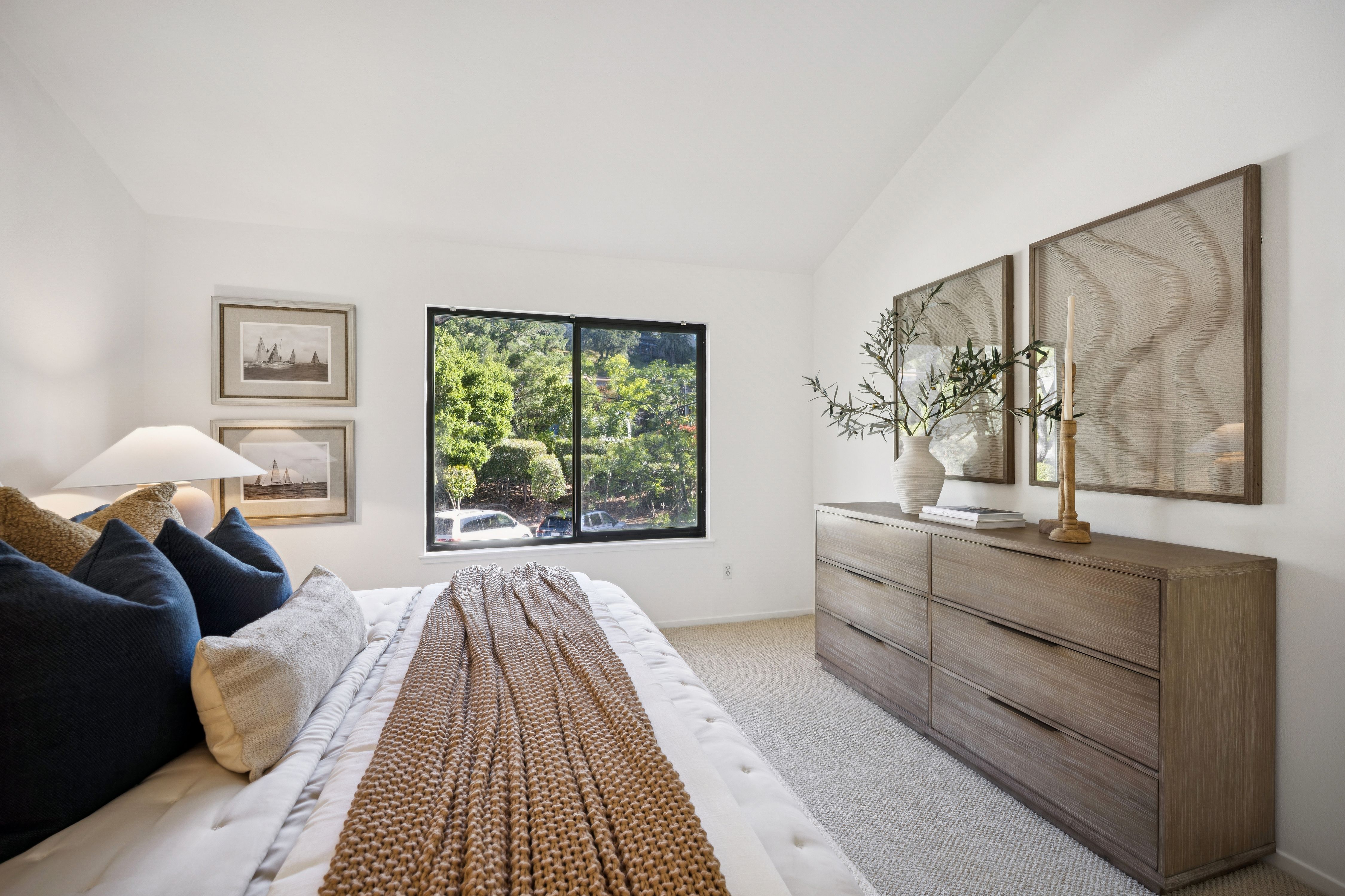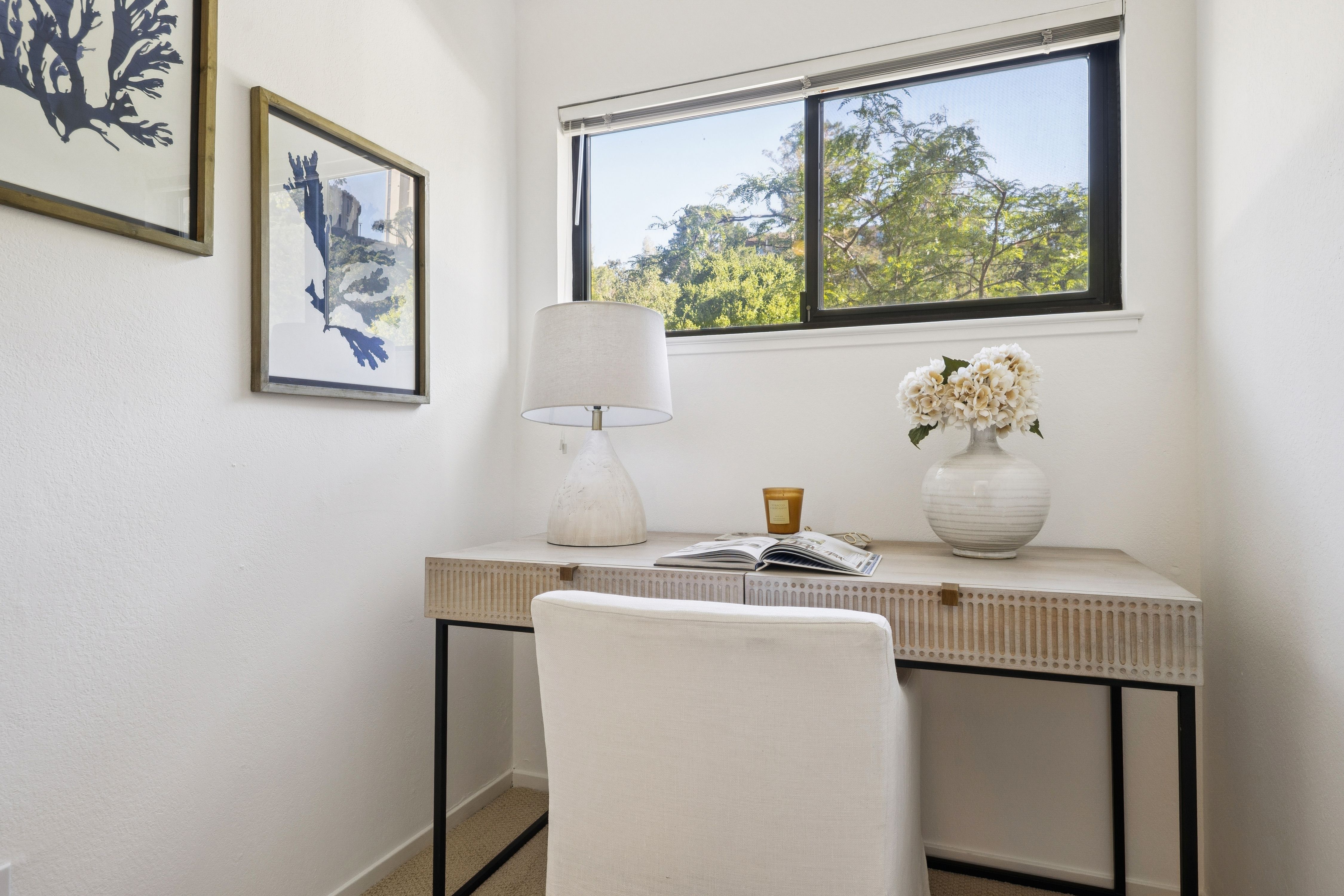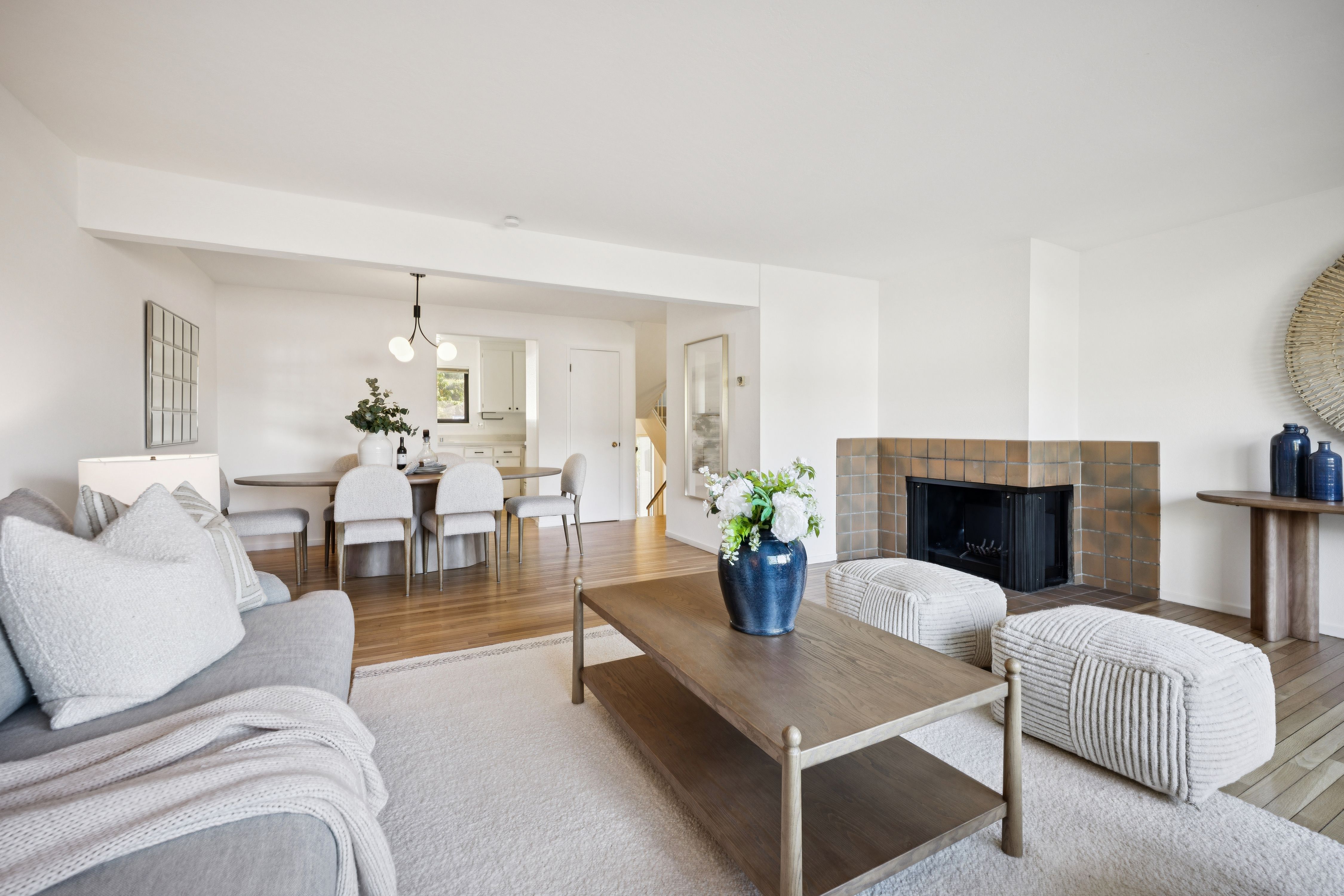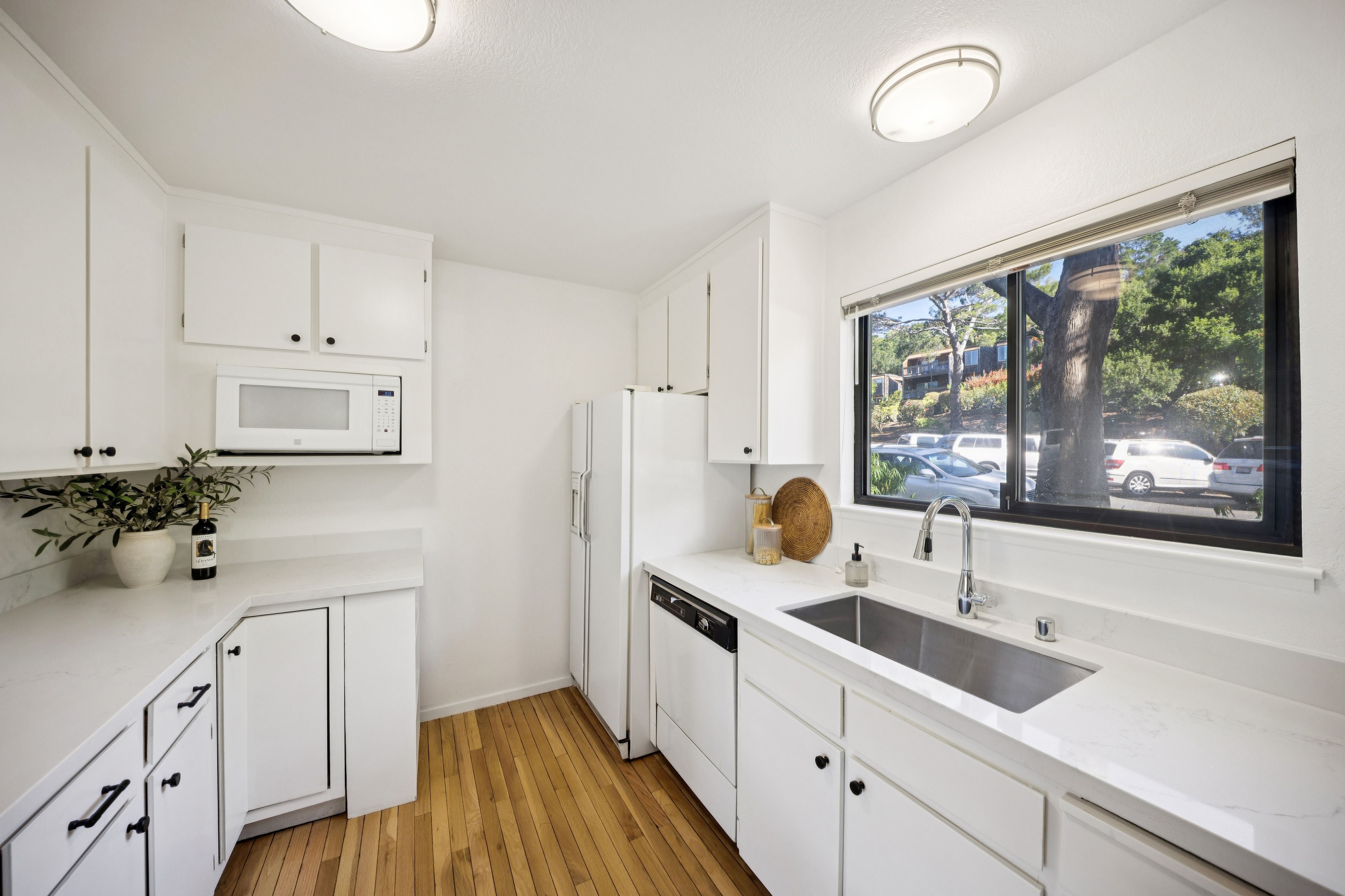 Ideally located three bedroom/two-and-a-half bath townhome with over 1,600 square feet of living space. The well-designed floorplan includes an attached two-car garage, oversized laundry room, and bonus space for a workshop or storage—ideal for work-from-home living.The spacious living and dining area features hardwood floors and opens to a private view deck. The kitchen offers quartz countertops and ample storage.Upstairs, the primary suite features cathedral ceilings, a walk-in closet with custom built-ins, and an ensuite bath. Two additional well-sized bedrooms share a full bath with shower over tub. The community includes a pool and is close to Corte Madera Creek, walking paths, Bon Air Shopping Center, medical offices, and Hwy 101. Located in the coveted Kentfield School District with access to Redwood High School.Quiet cul-de-sac setting with southwest exposure for great natural light and Mount Tam views. Rarely available floorplan – don’t miss this one.
