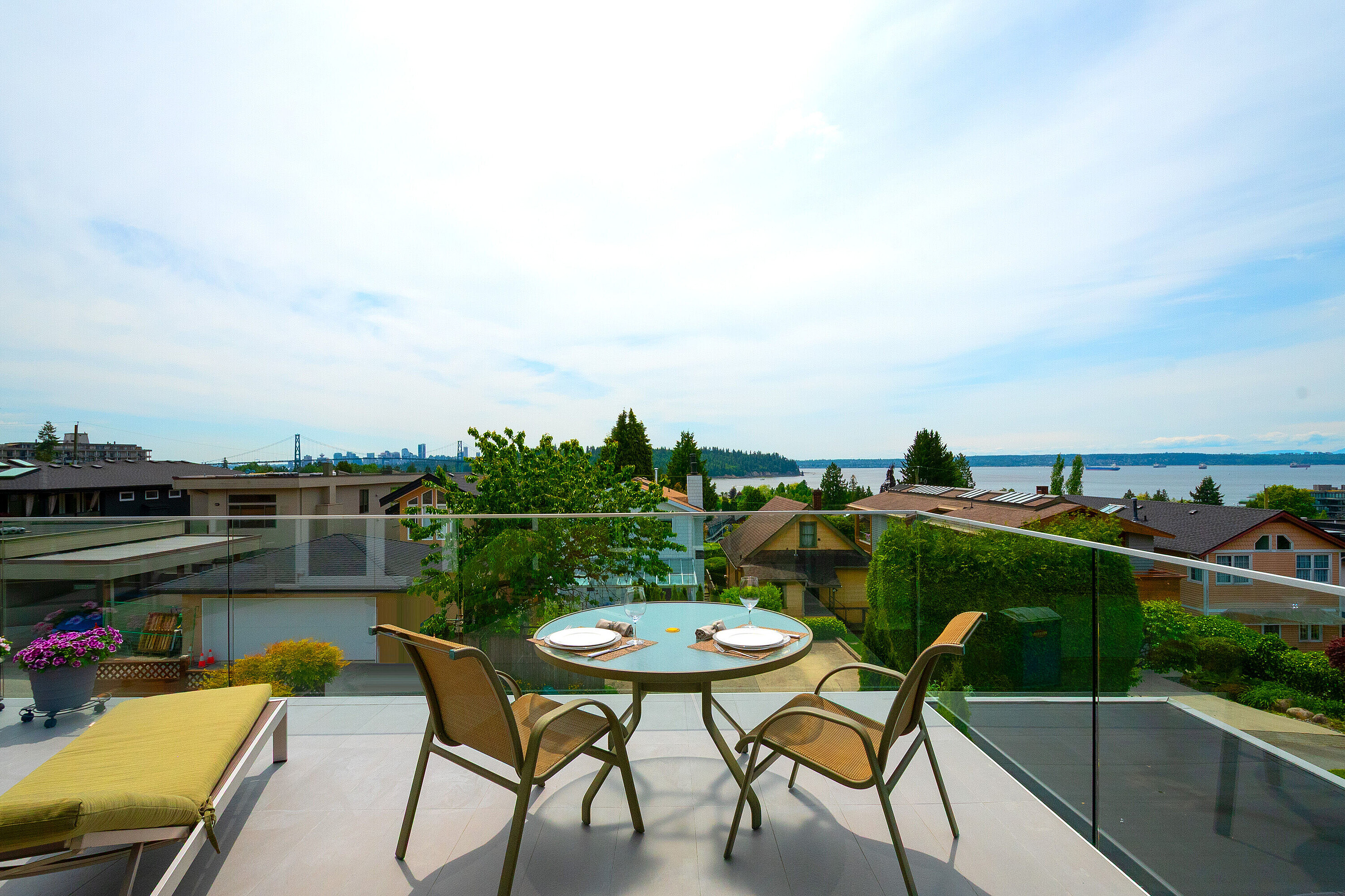 Exceptional Value! Fantastic Poskitt designed Ambleside contemporary with gorgeous close in water views and all day sunshine! Offering approx. 2550 sq/ft on 3 levels with awesome open floor plan, fantastic chefs kitchen, huge south and north side balcony's with views from Mount Baker to Vancouver Island and all the harbor. This is the perfect Ambleside location on a quiet street, just steps to the beach, park, shops and restaurants and an absolutely wonderful setting. Low maintenance yard and beautifully cared for by the long time owners will make this appealing to all. The three generous size bedrooms and walk out lower level allows for easy living and a delightful lock up and go lifestyle. This is a rare find in one of Ambleside's most sought after locations! This is a gem!