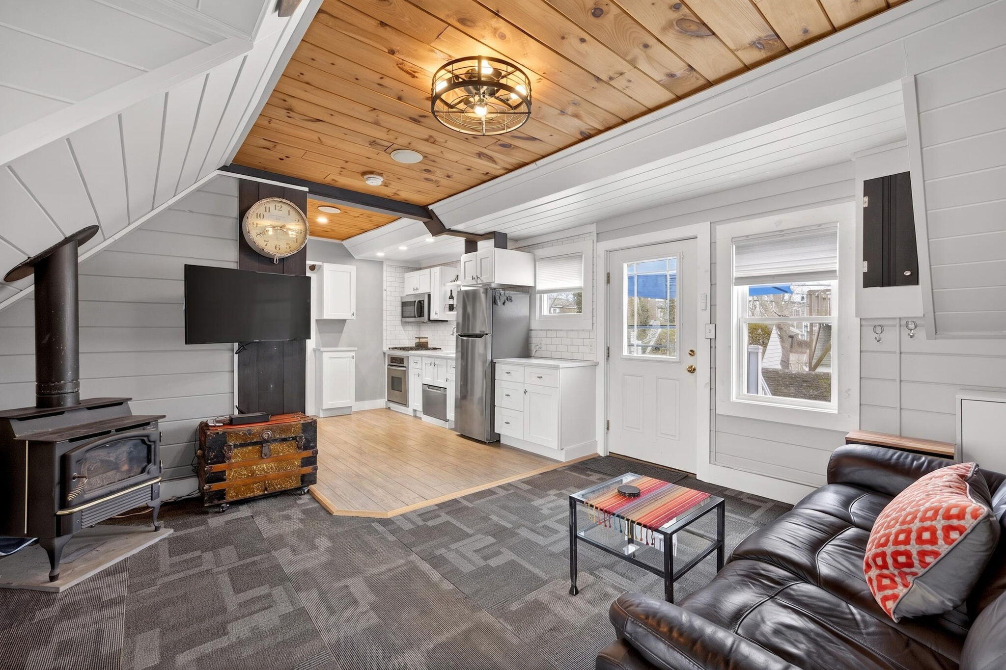 Location, Location, Location. Short distance from Commercial Street embellished with the quintessential charm Provincetown offers, with easy access to coffee shops, the bay, art galleries, and renowned restaurants. This condo features a large living room with pot belly stove for additional heating during the winter months. In addition, the high ceilings add to the openness of the condo. The kitchen has been remodeled with a propane gas cook top and self-cleaning electric oven. Other features include a drawer type dishwasher and ample cabinet space. The bathroom has also been remodeled. Other features include a newer split for heating and additional cooling during the hot summer days. Additionally, there is newer washer and dryer, inside, and exclusive to the unit, as well as a spacious deck, extra large outdoor common area ideal for entertaining, a private shed for extra storage, bicycles, and beach chairs. To add to all the amenities this condo offers, there is one assigned parking space.