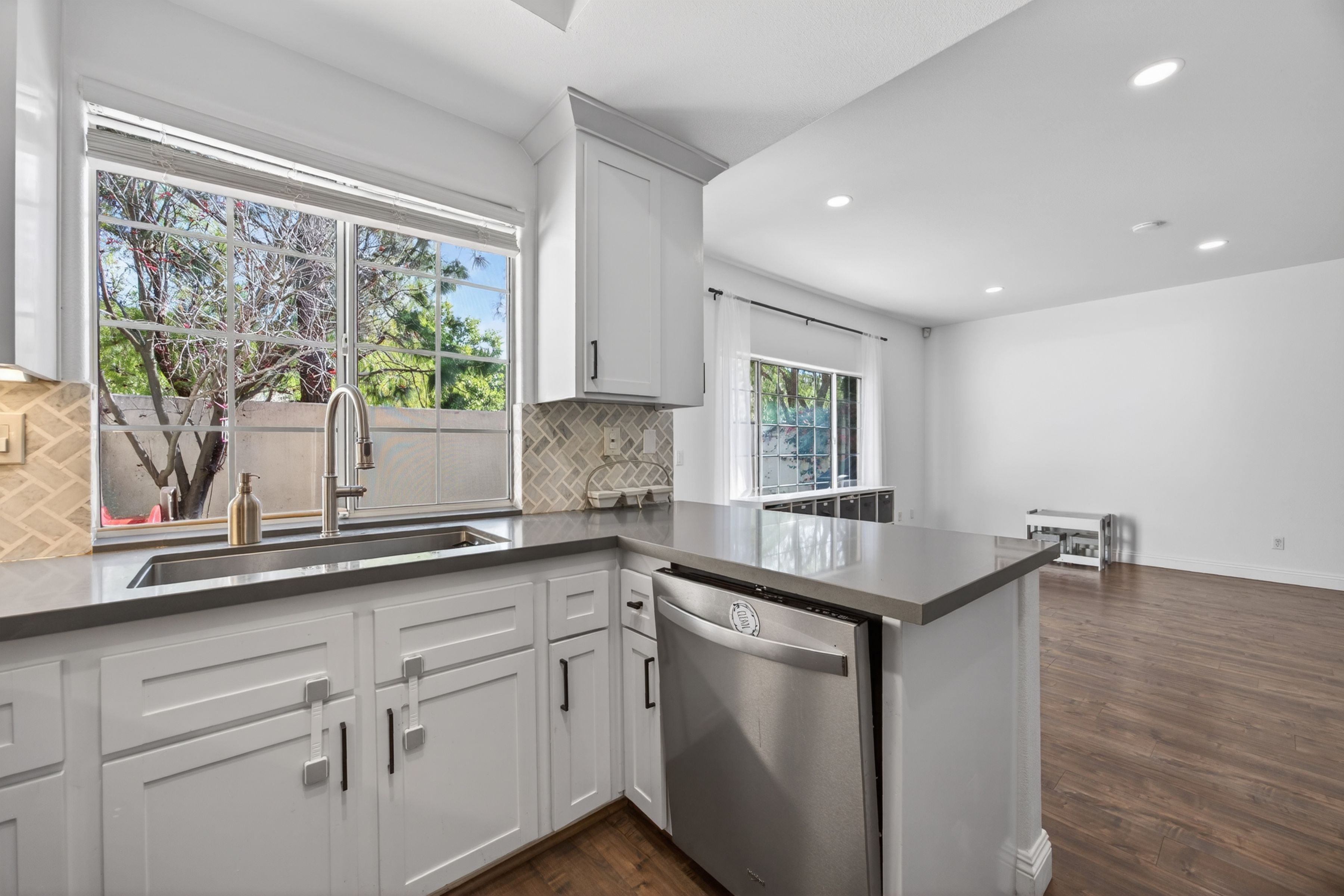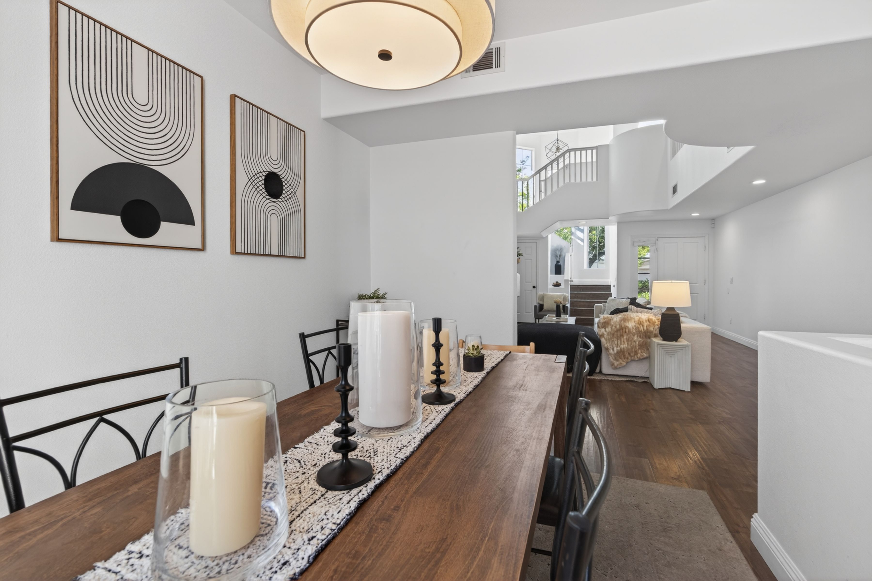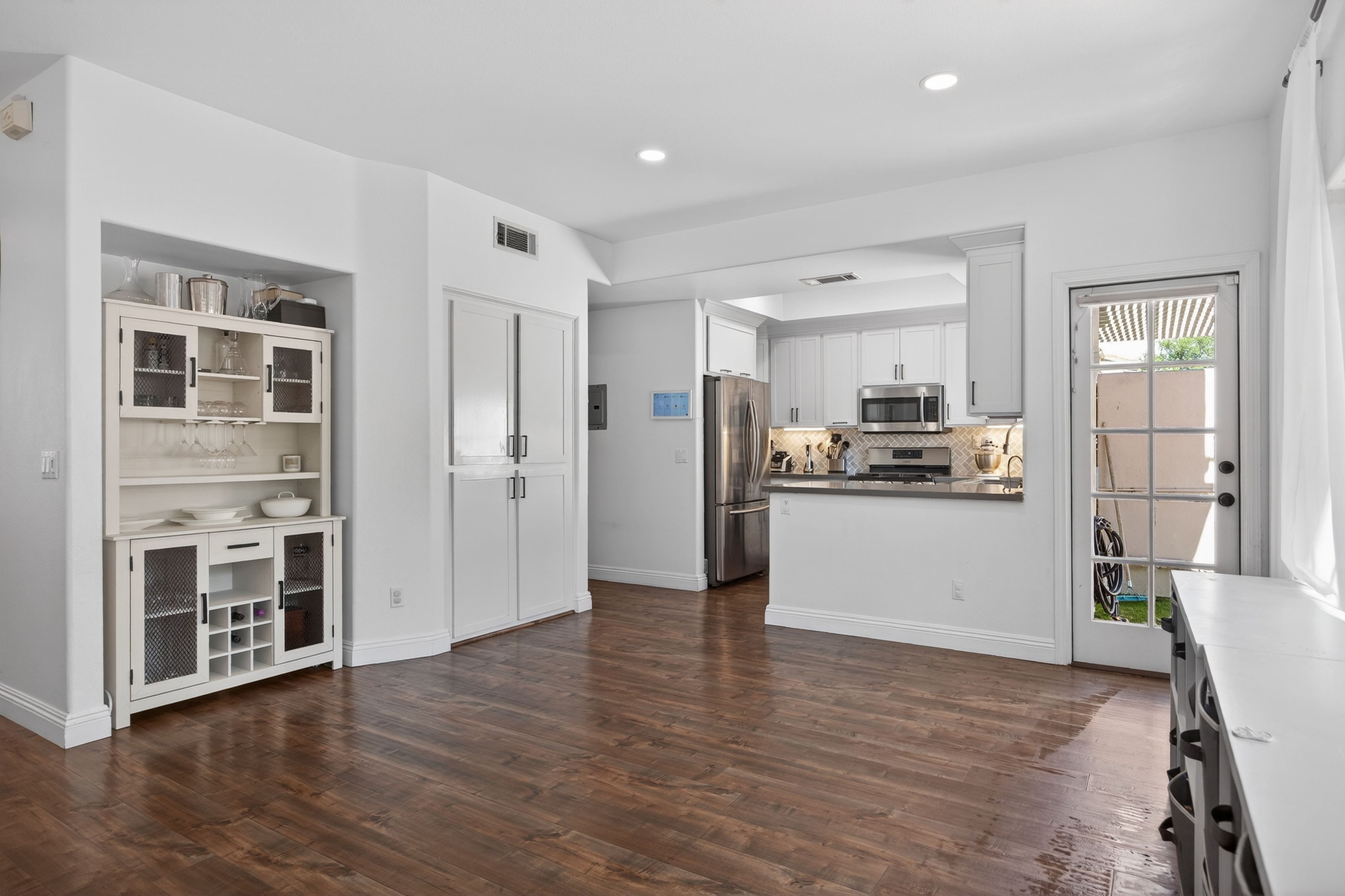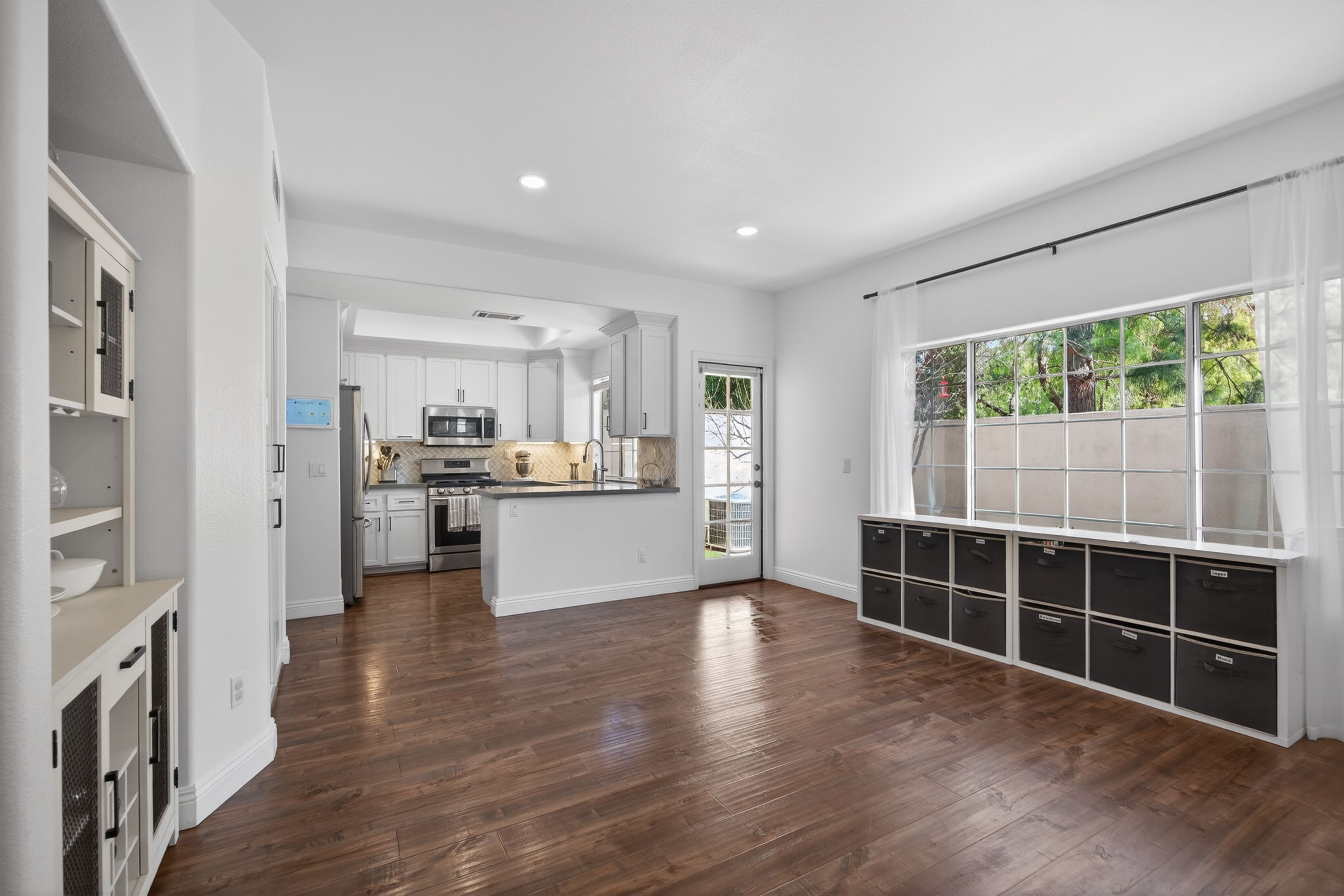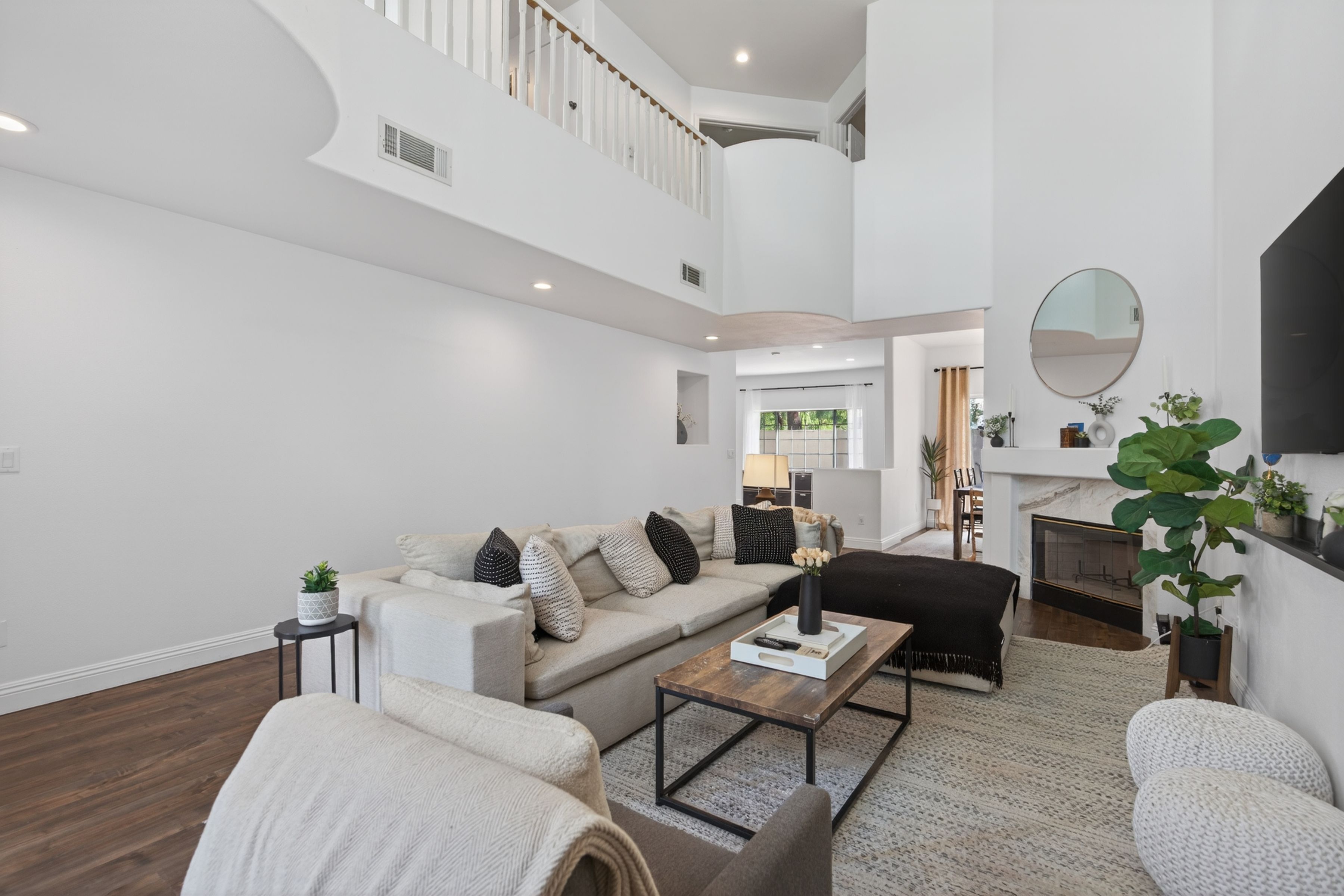 Welcome to 1120 Pan Court! A stylish and sophisticated townhome in the heart of Newbury Park. This immaculate four bedroom home is clean and crisp and move in ready. From the luxury laminate flooring, soaring ceilings, spacious living room and formal dining room to the four nice sized bedrooms upstairs, this home has functionality and flexibility. The kitchen is updated and looks out onto the backyard and mature trees. The primary bedroom is enormous and the primary bath has a modern flair with separate shower and tub, two sinks, a separate water closet as well as a walk in closet. The three secondary bedrooms are nice sized and share a large full bath also with dual sinks. Some updates to the property include fresh paint in 2021 in all the rooms, custom blinds by the front door, two newer chandeliers (check out the one on the stairs, love it!), the custom shelf in the living room and a custom cabinet in the hall bath. Start your summer here.