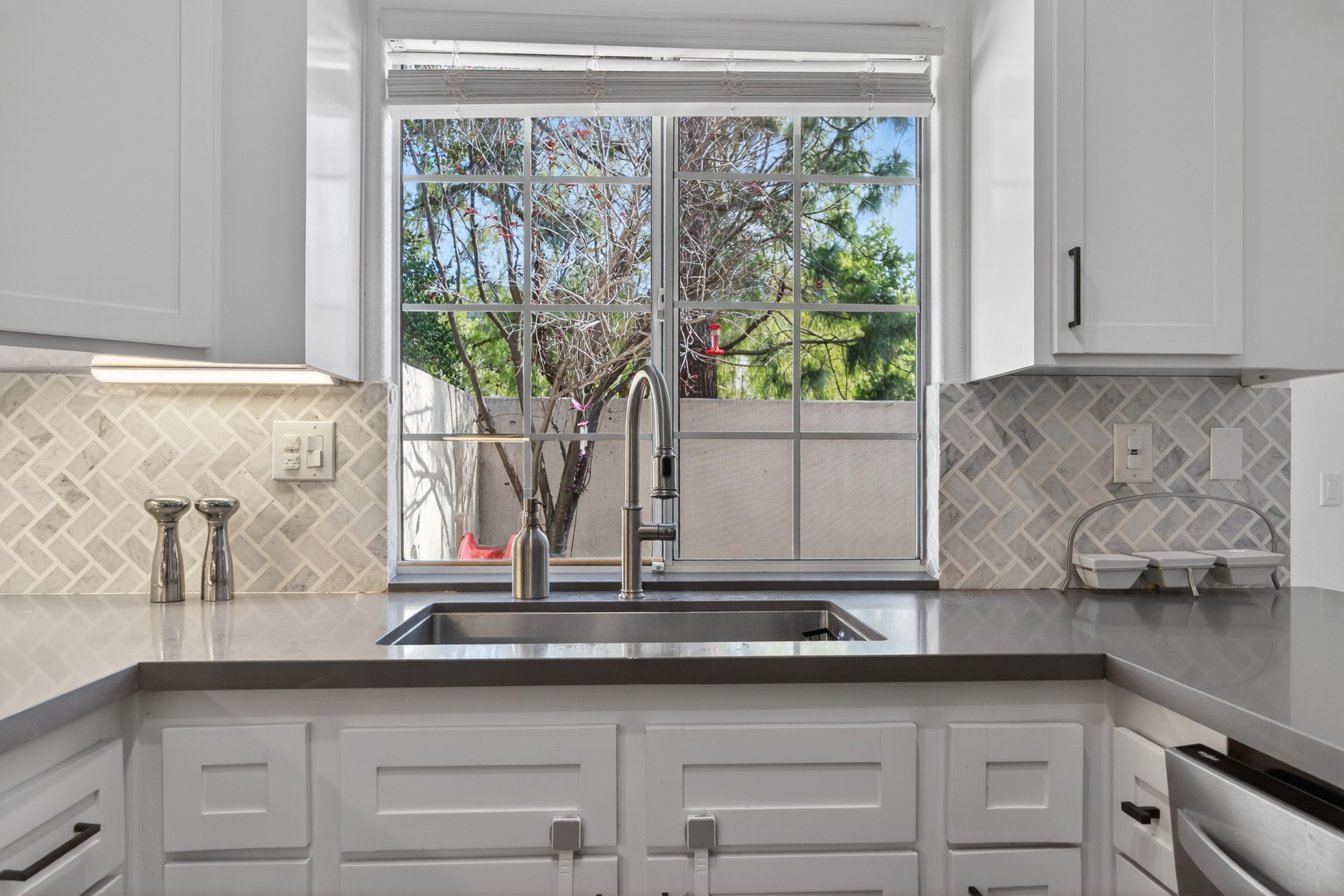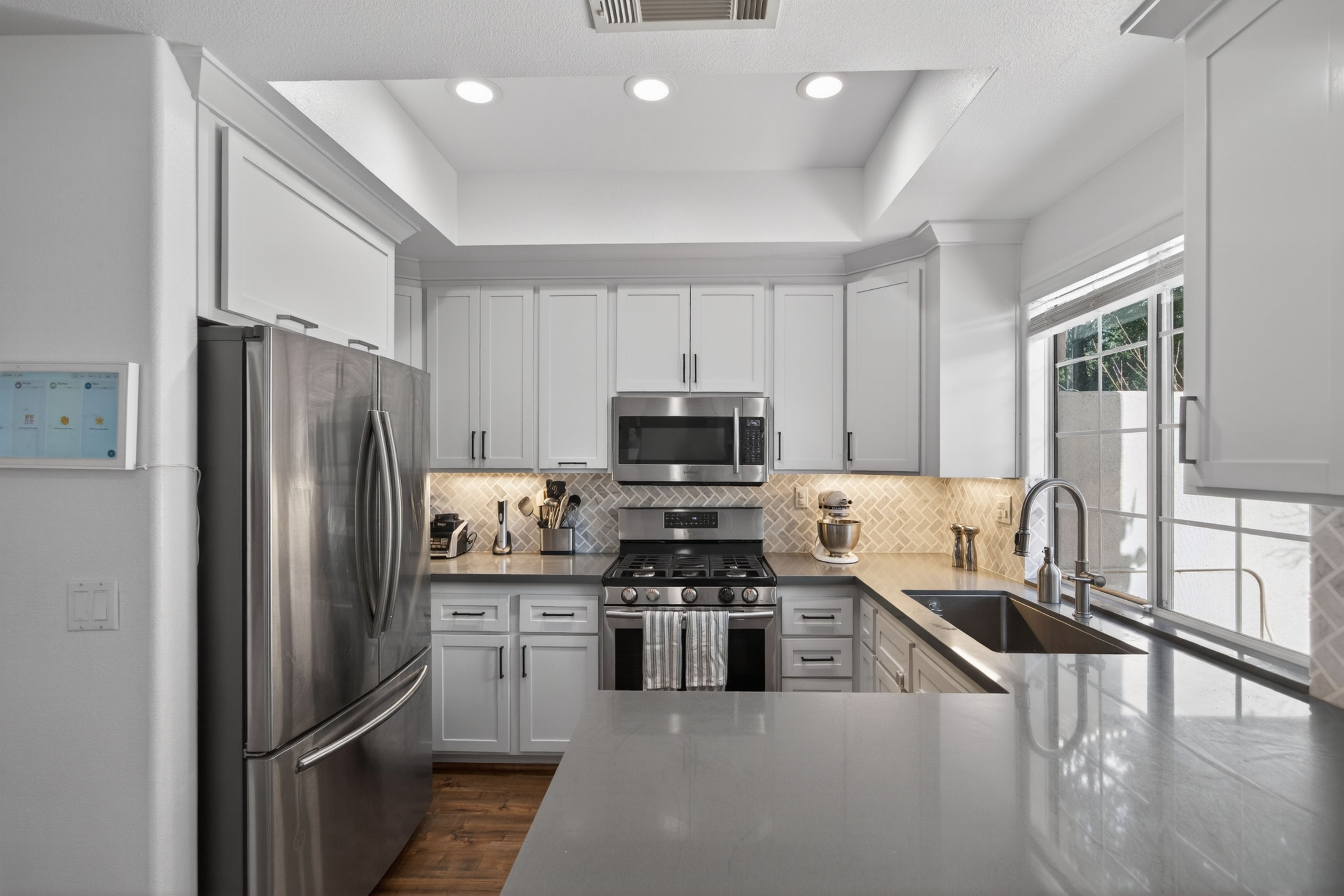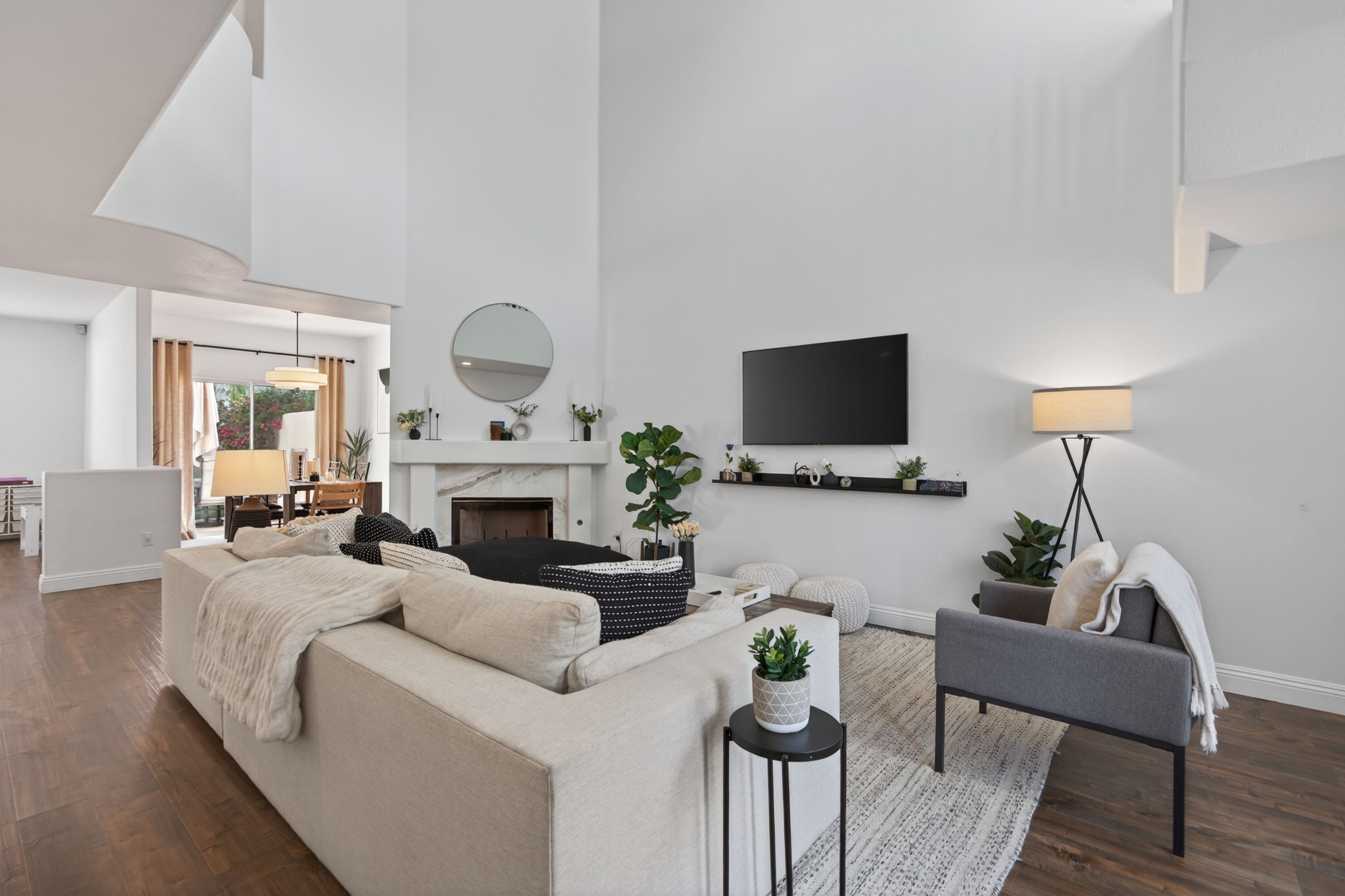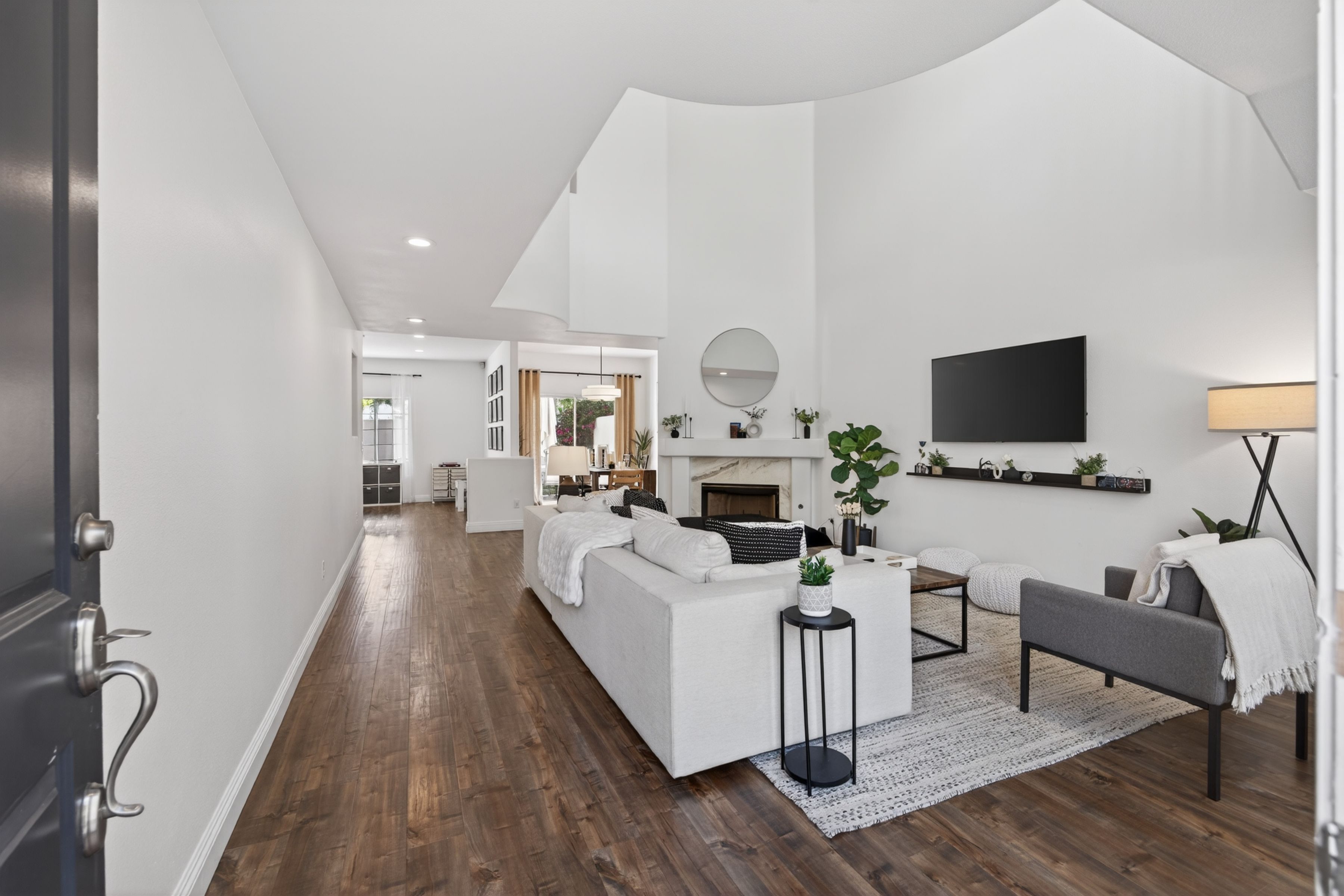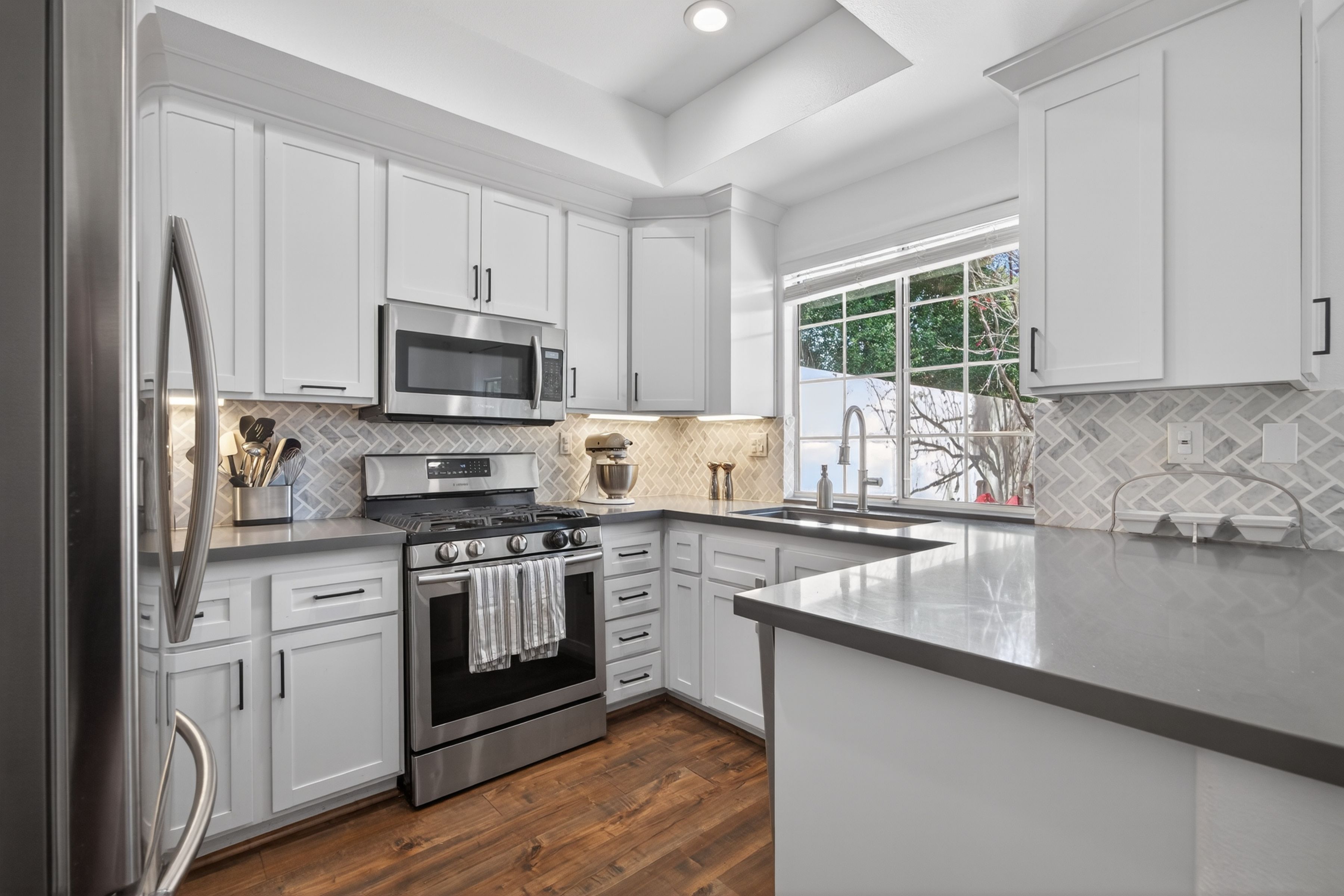 Welcome to 1120 Pan Court! A stylish and sophisticated townhome in the heart of Newbury Park. This immaculate four bedroom home is clean and crisp and move in ready. From the luxury laminate flooring, soaring ceilings, spacious living room and formal dining room to the four nice sized bedrooms upstairs, this home has functionality and flexibility. The kitchen is updated and looks out onto the backyard and mature trees. The primary bedroom is enormous and the primary bath has a modern flair with separate shower and tub, two sinks, a separate water closet as well as a walk in closet. The three secondary bedrooms are nice sized and share a large full bath also with dual sinks. Some updates to the property include fresh paint in 2021 in all the rooms, custom blinds by the front door, two newer chandeliers (check out the one on the stairs, love it!), the custom shelf in the living room and a custom cabinet in the hall bath. Start your summer here.