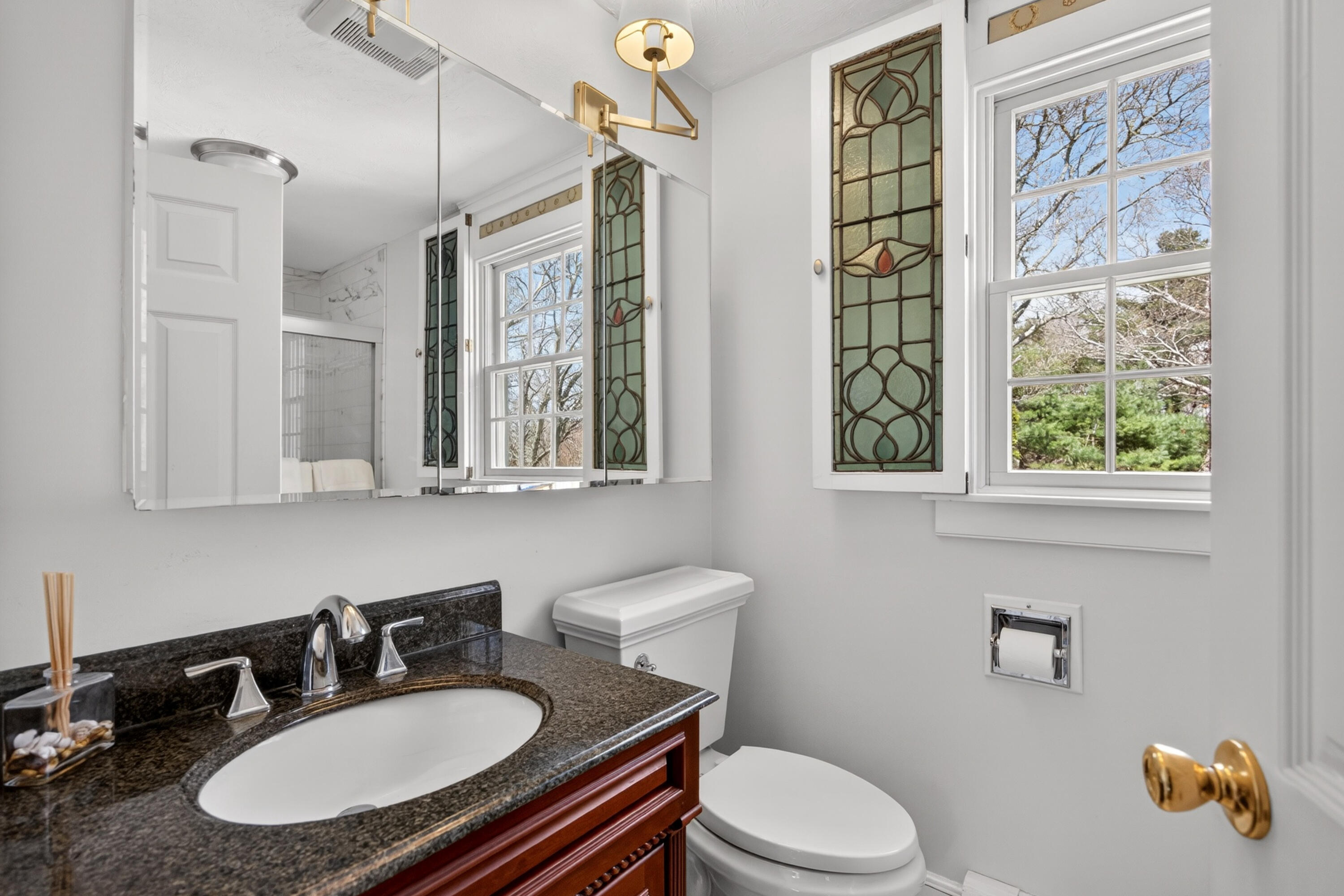 Coming Soon - Gracefully sited at the end of a quiet cul de sac, this exceptional Cape style residence offers a rare blend of privacy, scale, and natural beauty, set on exquisitely landscaped grounds. Inside, wide pine floors and refined architectural details create a warm yet sophisticated ambiance throughout. The thoughtfully designed kitchen features stone countertops, an induction cooktop, and an inviting space for both intimate gatherings and everyday living. A formal living room anchored by a striking fireplace flows effortlessly into the breakfast room, where sweeping views of the manicured grounds provide a stunning and serene backdrop and the wisteria partly shades the deck for added privacy. The main level primary suite is a sanctuary of comfort, complete with a custom walk in closet, gas fireplace, private bath add a sense of quiet retreat. Bathed in natural light, the sunroom is a true showpiece an elegant setting for entertaining or unwinding year round. A discreetly placed half bath with laundry enhances the ease and convenience of single level living. The second level offers three generously proportioned bedrooms and a full bath, while a private suite above the sunroom complete with its own full bath provides an ideal haven for guests or extended family. The walkout lower level further elevates the home's livability, featuring a spacious family room and a versatile bonus area perfectly suited for a home office, fitness studio, or additional guest accommodations. Step outside to a private patio and experience the tranquility of the surrounding landscape. Enhancing both comfort and efficiency, recent upgrades include a new roof, all new Andersen windows, and high efficiency mini split systems providing air conditioning and supplemental heat. A detached two car garage and expansive grounds complete this distinguished offering an exceptional opportunity in one of East Sandwich's most desirable settings.