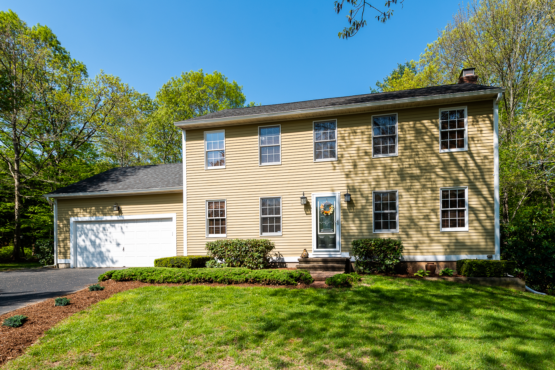 Welcome to 93 Heatherwood Drive! This beautifully maintained 3-bedroom Colonial is set on over 2.5 acres in a desirable neighborhood. The inviting living room features a cozy fireplace, a wall of built-in bookcases, and gleaming hardwood floors. A formal dining room with hardwood flooring is perfect for entertaining. The spacious eat-in kitchen overlooks the lovely, private backyard. Upstairs, you'll find three generously sized bedrooms, including a primary suite with a private bath and walk-in closet. Enjoy outdoor living on the large deck, ideal for relaxing or gatherings. Additional highlights include a 2-car garage and pride of ownership throughout. The home and property has been lovingly cared for by the current owner for over 20 years. Convenient location is close to local amenities while offering a peaceful setting. Make your next home in the beautiful town of Colchester!