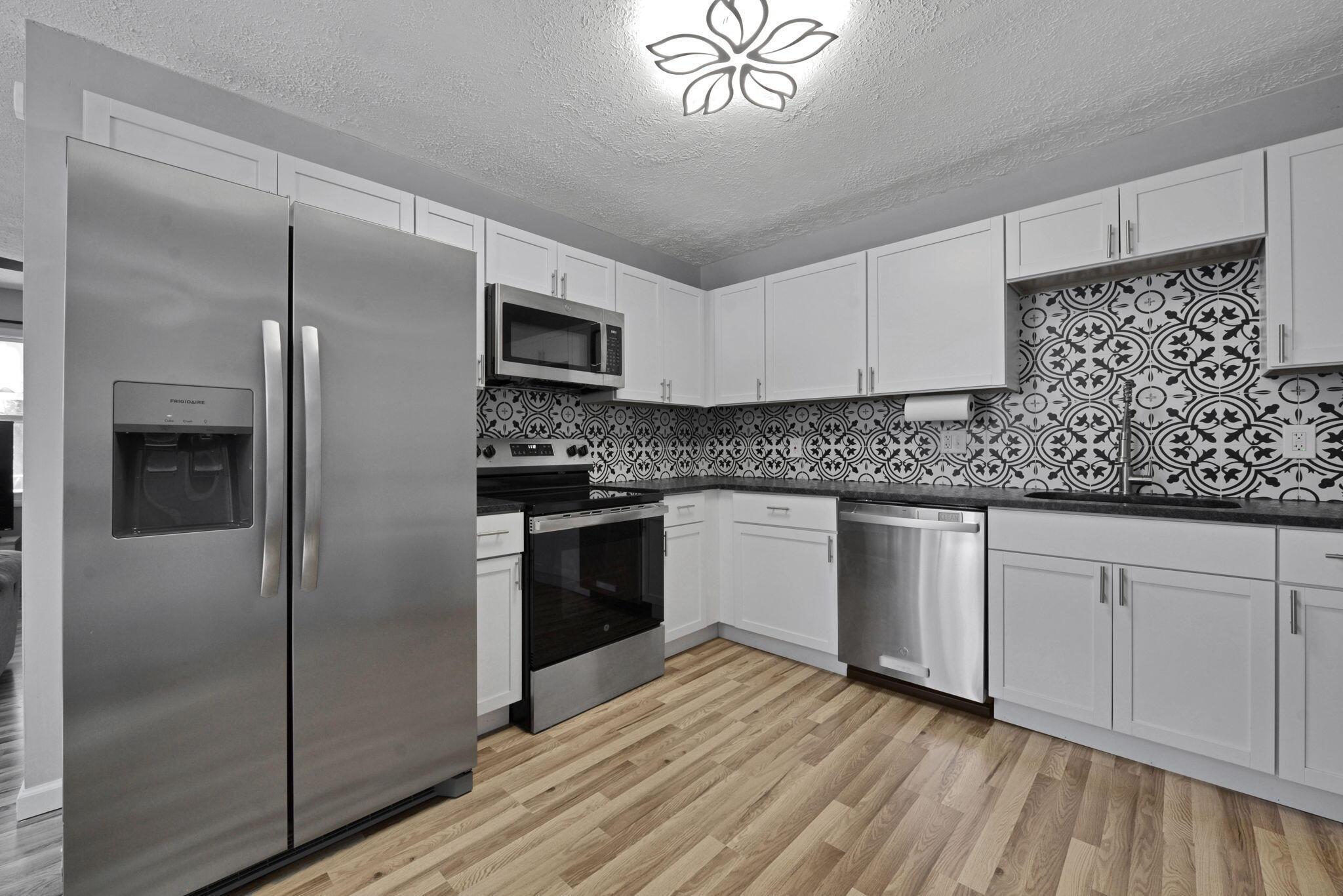 This stunning renovated home combines modern design with comfort and functionality. There is an open-concept floor plan with hardwood floors flowing seamlessly throughout the kitchen and living areas. The kitchen has been beautifully updated, featuring sleek white shaker cabinetry, granite counters and beautiful backsplash. The bathrooms have been thoughtfully designed with high-end finishes. There are 3 spacious bedrooms. The primary bathroom features luxurious marble-like tile,. The secondary bath also follows suit with modern tile and clean lines. Outside, you'll find a private, fenced-in yard, offering a peaceful retreat or space for outdoor entertaining. Overall, this home has been meticulously updated and ready for new owners.