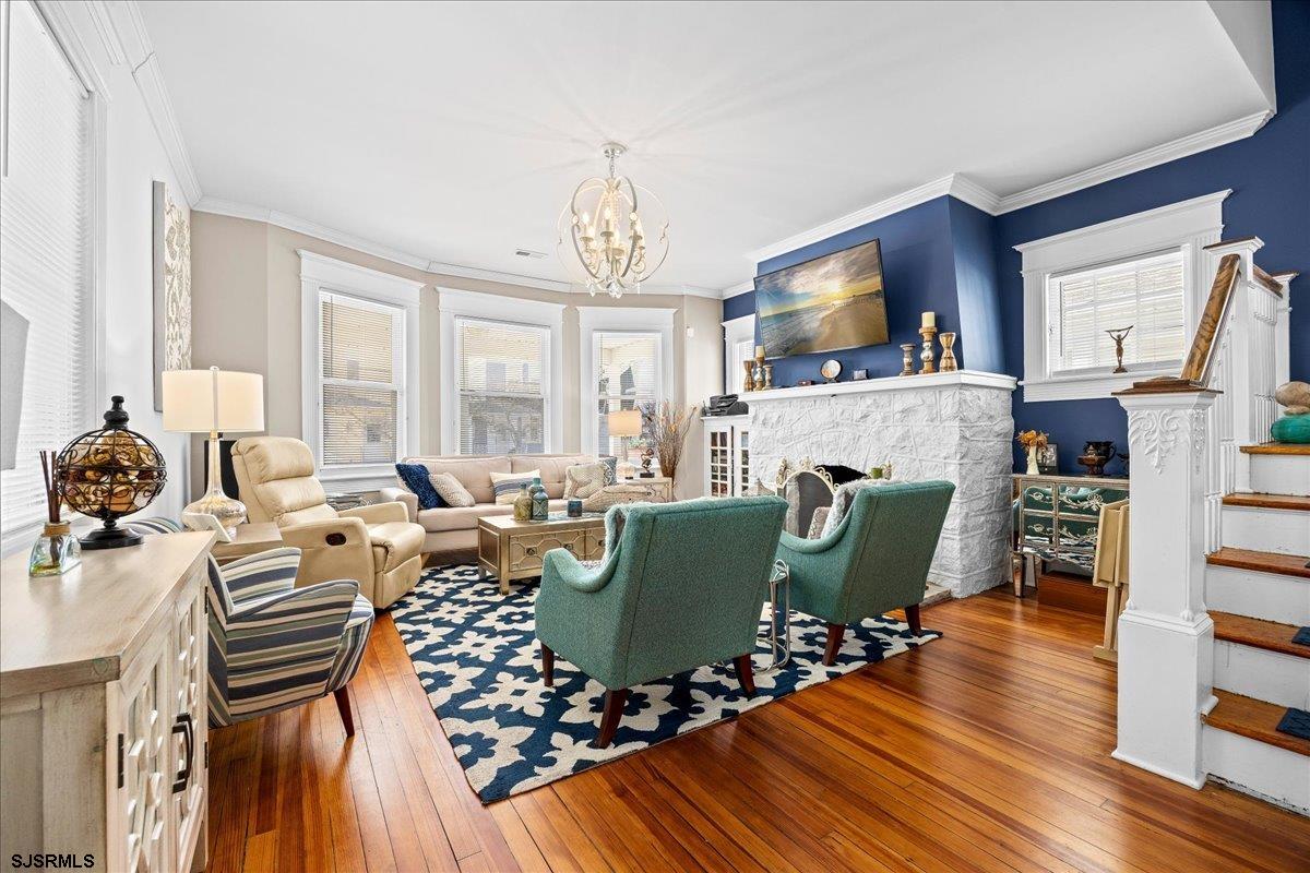 BEAUTIFULLY MAINTAINED HOME WITH INCREDIBLE CHARACTER, STREET-TO-STREET LOT & BONUS INCOME OPPORTUNITY! **NO FLOOD INSURANCE NEEDED HERE!!** This property has endless potential. Enjoy your summer mornings on the huge front porch with refreshing ocean breezes or with a quick walk on the beach or boardwalk, just steps away! Open kitchen and dining area perfect for entertaining, with a convenient half bath and rear deck ideal for summer indoor/outdoor living. Large living room with charm and a cozy gas fireplace. The second floor offers three generously sized bedrooms, including a spacious primary suite with private en-suite bath, plus a full hall bath. The third floor provides two additional bedrooms and another full bath, plenty of room for family and guests! Outside you'll find a bocce court along the side yard and three parking spaces in the rear, a rare find! Major upgrades include a newer roof, new sewer system, updated electric, new siding, and new concrete for peace of mind. Added bonus: renovated 1-bedroom (possibly 2), 1-bath apartment with long-term rental history providing excellent income potential. Fantastic location within walking distance to the beach, boardwalk, and all the restaurants and attractions of the North Beach area! Just seconds to all the action of AC, too!