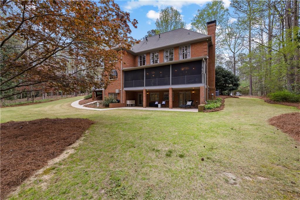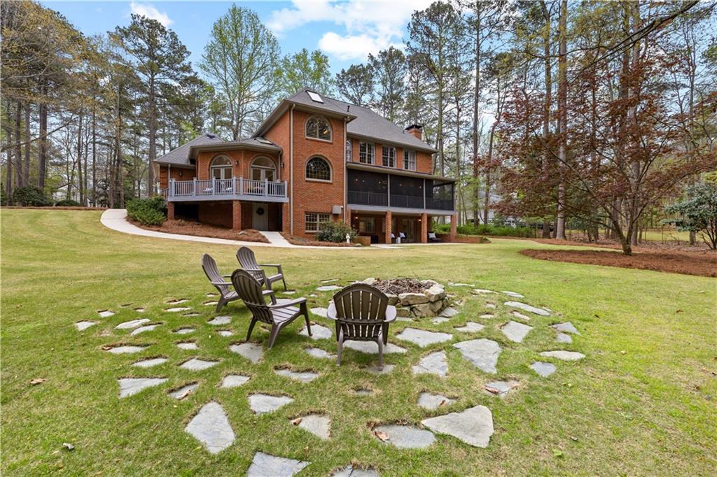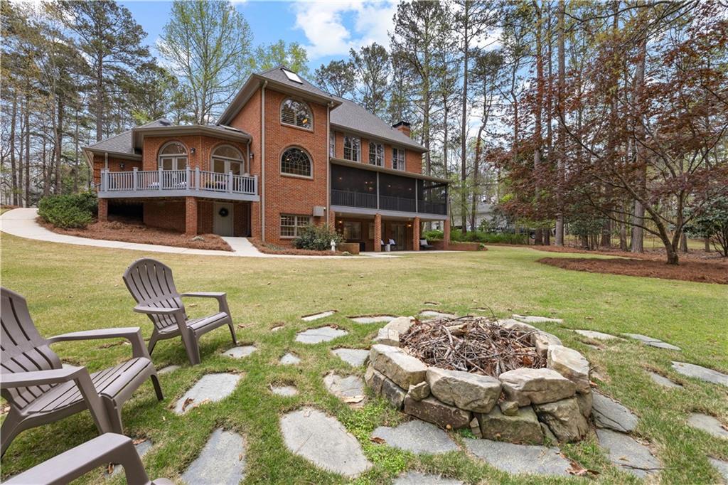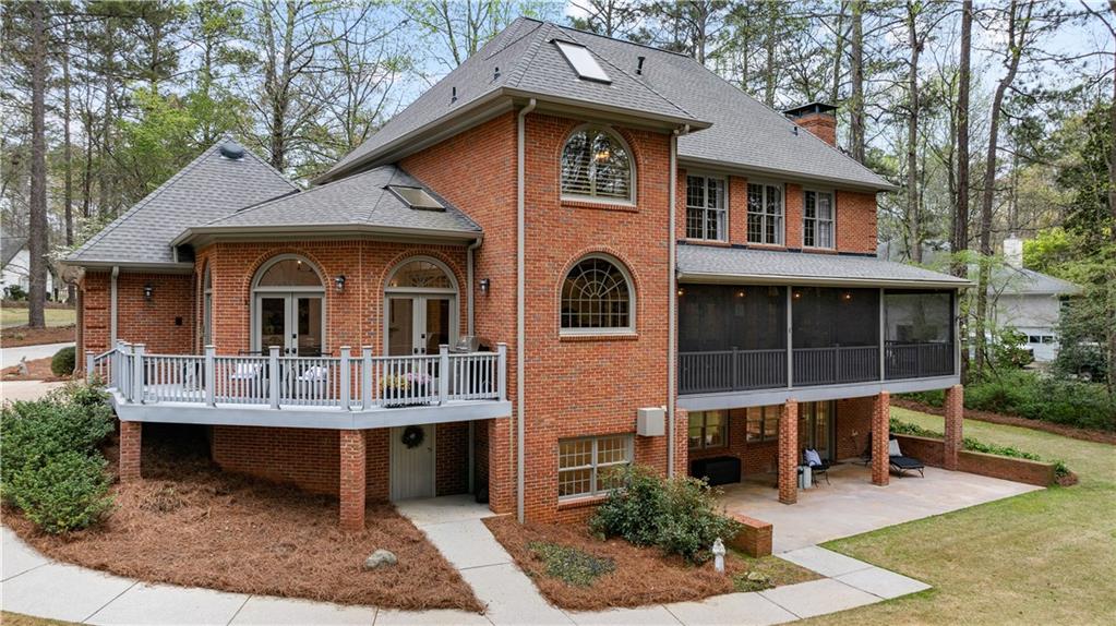 If you are looking for unparalleled luxury, design and tranquility in the heart of Peachtree City, look no further. Tucked into a beautifully treelined, picturesque cul de sac in Stoney Brook, this exquisite manor offers privacy, nature and custom features that are hard to find in the metro Atlanta area. Owned and curated by an award winning designer, the home is a rare opportunity to own a flawless, ready to move in masterpiece. You will be greeted by cheerful birdsong as you arrive at this nature filled destination. Floor to ceiling windows pull in so much natural light and showcase the gorgeous views. Enter into the light and airy foyer, and you immediately feel the high quality and beautiful design that awaits you. The sophisticated dining room has ample room for family gatherings, and will delight guest with the upscale lighting and deep silhouette of color. Enter into the bright, elegant family room with 4 double doors leading to incredible outdoor space. This room features custom built in bookcases, beamed ceilings and romantic fireside seating. Pass through the doors to a serene screened in sanctuary where you may enjoy quiet moments with your favorite book. Don't be surprised if large deer stroll through the backyard as you overlook your shaded canopy. Need more tranquil living space? We have that in your keeping room just beyond the kitchen. This quiet corner could be a library, an art or music room, or additional breakfast room. And of course, we have three elegant double doors leading out onto another beautiful outdoor living space. This wrap around porch gives direct access to your side yard, garage & backyard, and offers additional private outdoor seating. Enter into the Chef's kitchen with Sub zero appliances, incredible color, plenty of countertop space, custom cabinetry, and panoramic views. Entertaining will truly be a dream. In case that wasn't enough entertainment space for you, we have more! Your terrace level was upgraded last year by Martin Dodson Homes and Palmer Kay Design Group. It boast an amazing French gourmet kitchen with marble inspired countertops, high end appliances, tile mosaics, and custom lighting casting warm glows on real hardwood flooring. The additional owner's suite is spacious and elegant and has a sophisticated, spa like bathroom with glass doors and tile mosaic in the shower. There is a laundry room & small work out space completing a quiet, private living area. This living space feels as if you have arrived at a secluded, high end retreat. Moving upstairs to the owner's suite, we are welcomed by more sunlight & gorgeous views of the canopy. This spacious, elegant oasis offers serene ambiance gently lighted by glamourous custom lighting and soft colors and fabrics. We continue with the floor to ceiling windows framing nature and starting your mornings with sunlight. The owner's suite has a dramatic, artful soaking tub surrounded by custom cabinets, stand alone shower, granite countertops and of course sunlight. Down the hall we have 2 additional family bedrooms, that share a lovely full bathroom with elegant upgraded fixtures and thoughtful design. The hallway itself is a picture frame of light and nature. This home is a sanctuary, surrounded by nature, over 100 miles of shaded golf cart trails, to meander or exercise on, and is close to all the incredible amenities that Peachtree City offers in the award winning McIntosh school district. Peachtree City is home to many scrumptious restaurants and charming bistros to delight your culinary taste. There are numerous parks, both lakeside & hidden gems in the woods, including the dog park, a skate park, bmx bike park and of course our amphitheater, The Fred. The Fred welcomes talented musicians every year, & is just a golf cart ride away. Peachtree City is an active community with a running club, triathlon club & endless biking. Don't miss the rare opportunity to own this idyllic property & enjoy a vibrant lifestyle in PTC.