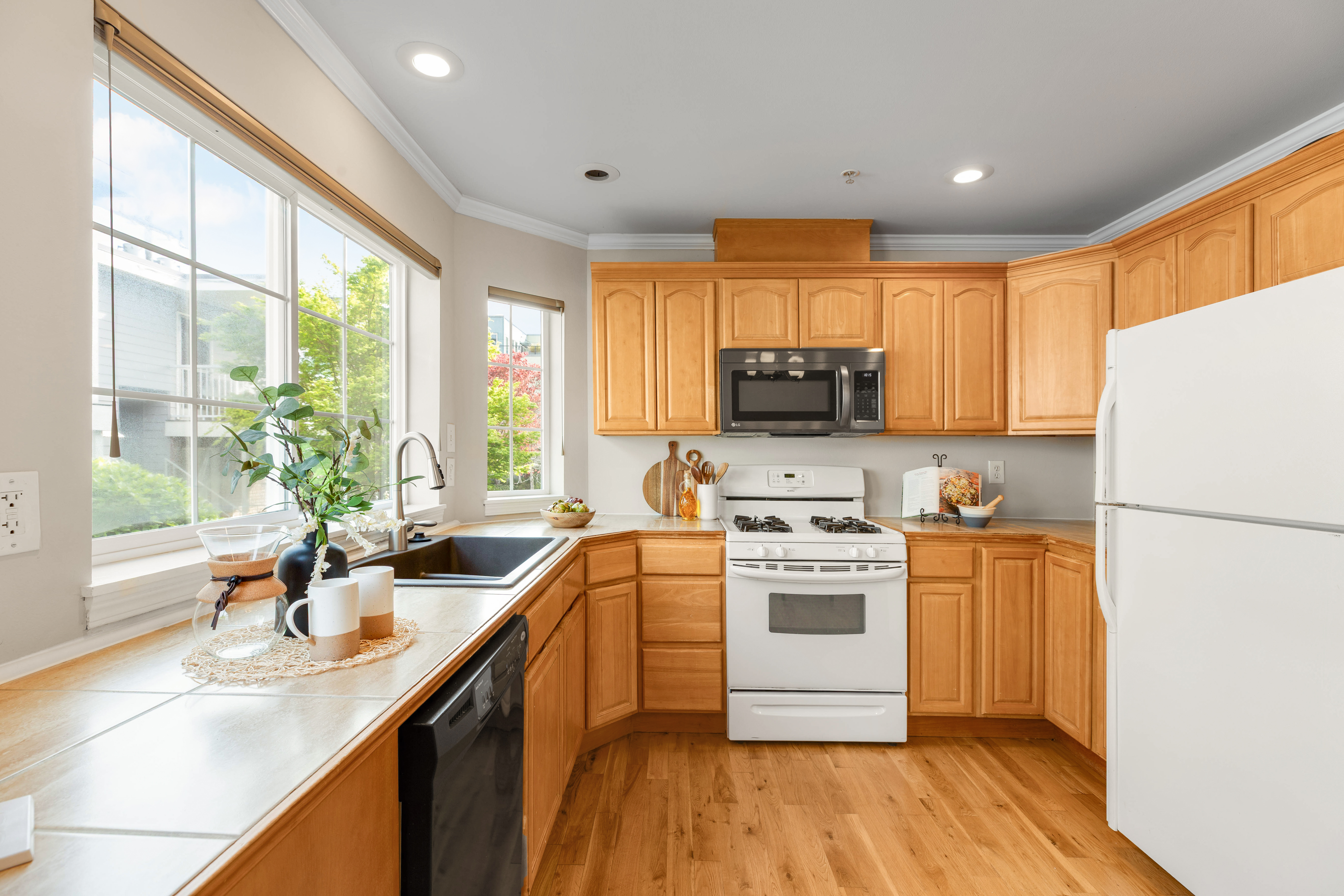 Unbeatable location in the heart of Wallingford -- steps away from dining, QFC, shopping, pubs, daycare. 95 Walk Score. Move-in ready 3 bed, 3.5 bath townhome with no HOAs. Primary bedroom gets lots of light through french doors. All 3 bedrooms have ensuite baths. 1-car attached garage with additional carport parking. Unit has dedicated paved patio space to the rear of building for play area or outdoor relaxation space. Blocks from Greenlake, Burke Gilman/Gas Works, easy access to I-5 and I-99!