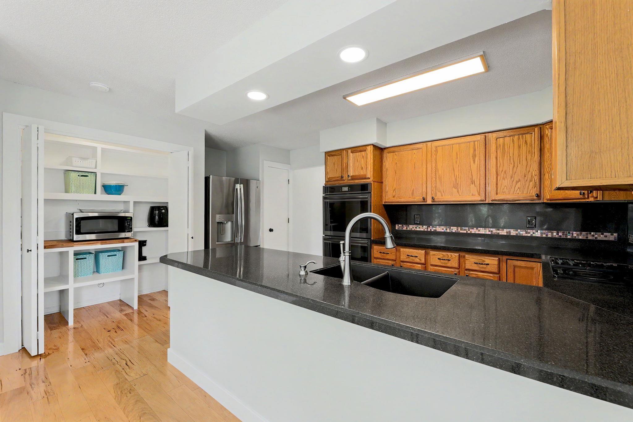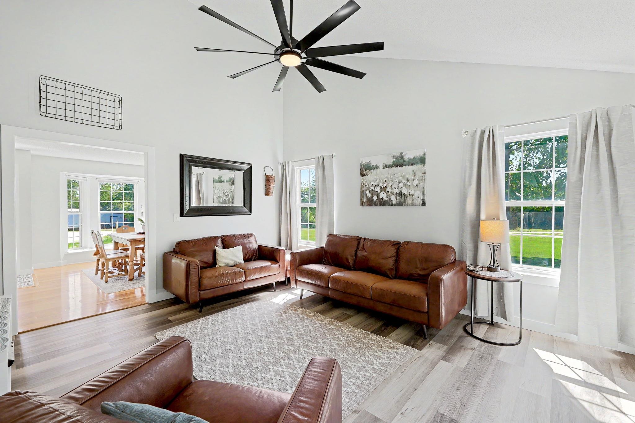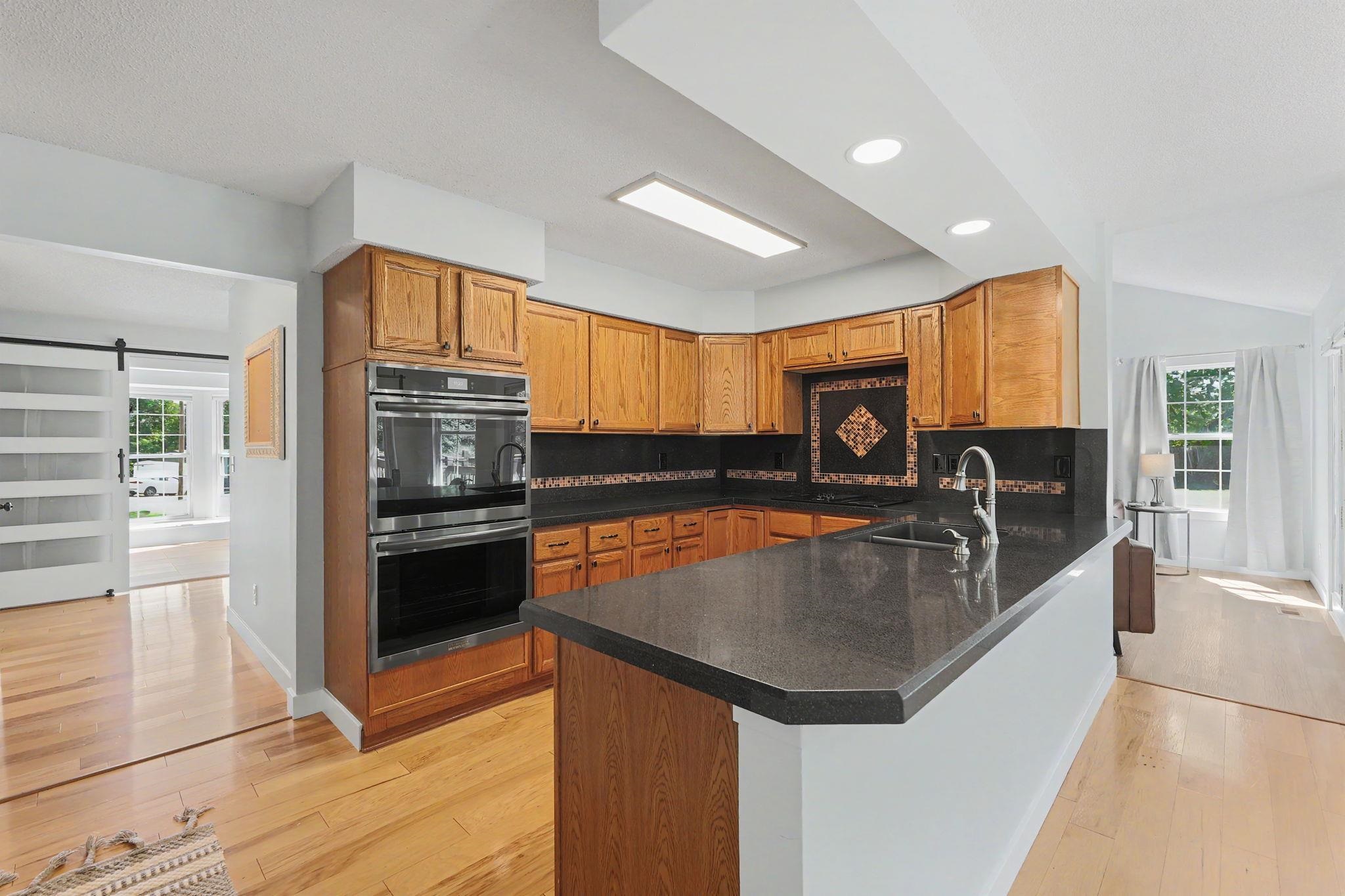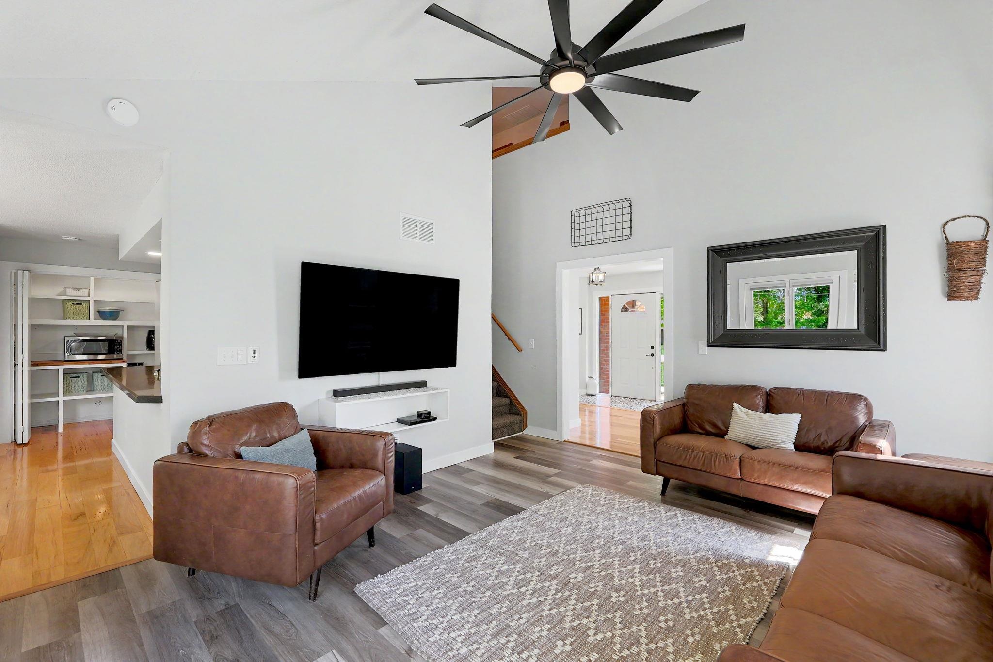 Come see this stately five bedroom, three and a half bath, three car garage home in the highly esteemed Trail Ridge Estates Neighborhood in the heart of Mulvane. This home is nestled in the back of the neighborhood at the end of a cul-de-sac which allows for extra parking and minimal neighbors with plenty of yard space. The property has tons of upgrades and exudes pride of ownership. On the exterior, it comes with a newer roof and gutters (2025), new exterior trim paint, new shutters, custom landscaping and a plush green lawn with irrigation well. This two story brick home has a large private back deck and patio right off of the living room, perfect for entertaining. Inside, there is large formal dining room with decorative fireplace, new flooring and trim throughout the main level, vaulted ceiling in the living room, and tons of natural light throughout. Kitchen has plenty of cabinet and granite countertop space and comes with two pantry areas with custom butcherblock countertops and built in shelving. There is a huge main floor laundry with butcherblock countertops and seating with cubbies for storage. Laundry room has huge bay window that beautifully shows off the space and has decorative barn door access. Off of the laundry sits a guest half bathroom. The master bedroom is on the main floor with new luxury vinyl plank flooring, coffered ceiling, and access to the separate back private patio. Master bathroom has new double sink quartz countertops, new tile bathtub surround, and new faucets. Upstairs there are three bedrooms and one bathroom where the bedrooms are a good size. In the basement, there is an additional bedroom and bathroom along with a large family room and built in office or craft area. The living room can easily be set up like a theatre room to watch the game with wiring access in one of the unfinished storage rooms. There is ample storage with a huge rustic barn door access for an additional workout room or storage. Outside, make sure to see the extra detached garage. Set up your private showing today!