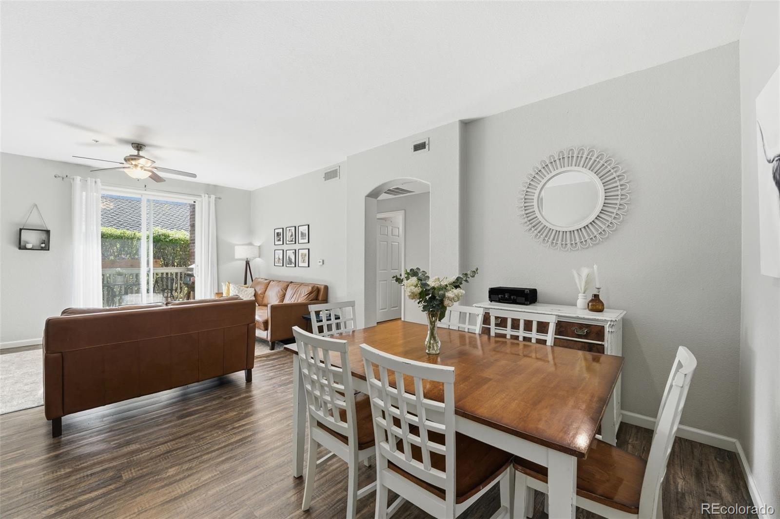 Welcome to this beautifully situated condo in the highly sought-after Pinnacle at High Line community, perfectly positioned along the scenic High Line Canal. Enjoy direct access to miles of trails just steps from your door, ideal for walking, biking, and embracing Colorado's outdoor lifestyle. This well-maintained and thoughtfully updated home features new Pella windows (2022) that fill the space with natural light while improving energy efficiency. As you enter, you are greeted by an inviting open floor plan, with a sliding glass door leading to your private porch, perfect for grilling, entertaining, or simply relaxing. The balcony also offers additional storage for added convenience. Inside, the cozy family room flows seamlessly into a spacious, updated kitchen with ample cabinetry and storage. Just off the kitchen, you'll find a convenient laundry and pantry area. Additionally, enjoy the pleasant dining area for any meal. Down the hall, the spacious primary suite offers a private retreat with an ensuite bathroom and a large walk-in closet. A full bathroom and second bedroom featuring a walk-in closet, provide flexibility for guests, a home office, or additional living space. Residents enjoy resort-style amenities, including a pool and clubhouse, perfect for relaxing or gathering with friends and neighbors. Recent upgrades include new Pella windows (2022, with lifetime warranty), a new water heater (2024), new front door, and a new refrigerator and dishwasher (2024/2025). The roof was replaced by the HOA around 2024. A detached garage is conveniently located just outside the unit for easy access. With its unbeatable location, thoughtful updates, and low-maintenance lifestyle, this home offers the best of Littleton living.