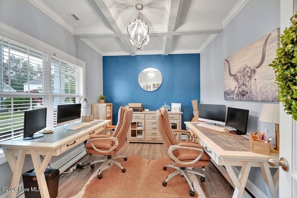 Welcome to this beautifully maintained home in the highly desirable Magnolia Ridge Subdivision featuring, 2,224 sqft, 4 bedrooms and 2.5 baths, thoughtfully designed for both everyday living and entertaining. From the moment you arrive, the inviting front porch sets the tone for what's inside. This home offers space, style, and location all in one. The main level offers a versatile formal dining room with coffered ceilings and French doors, ideal for gatherings or a private home office. The kitchen is a standout with granite countertops, stainless steel appliances, tile backsplash, a center work island, and a spacious walk-in pantry, all opening to a bright breakfast area overlooking the backyard. The family room provides a warm and welcoming space with a fireplace featuring electric heat logs and plenty of room to relax. Upstairs, the spacious primary suite includes a tray ceiling, cozy sitting area, and a well-appointed bath with double vanities, soaking tub, separate walk-in shower, and a walk-in closet. Three additional generously sized bedrooms and a conveniently located laundry room complete the second floor. Enjoy the outdoors in the fenced backyard, storage building and a covered porch, perfect for relaxing or entertaining, along with the added benefit of a two-car garage.