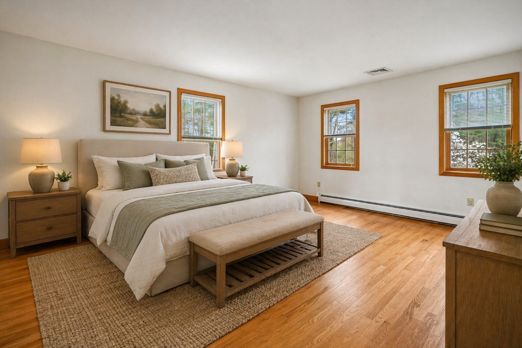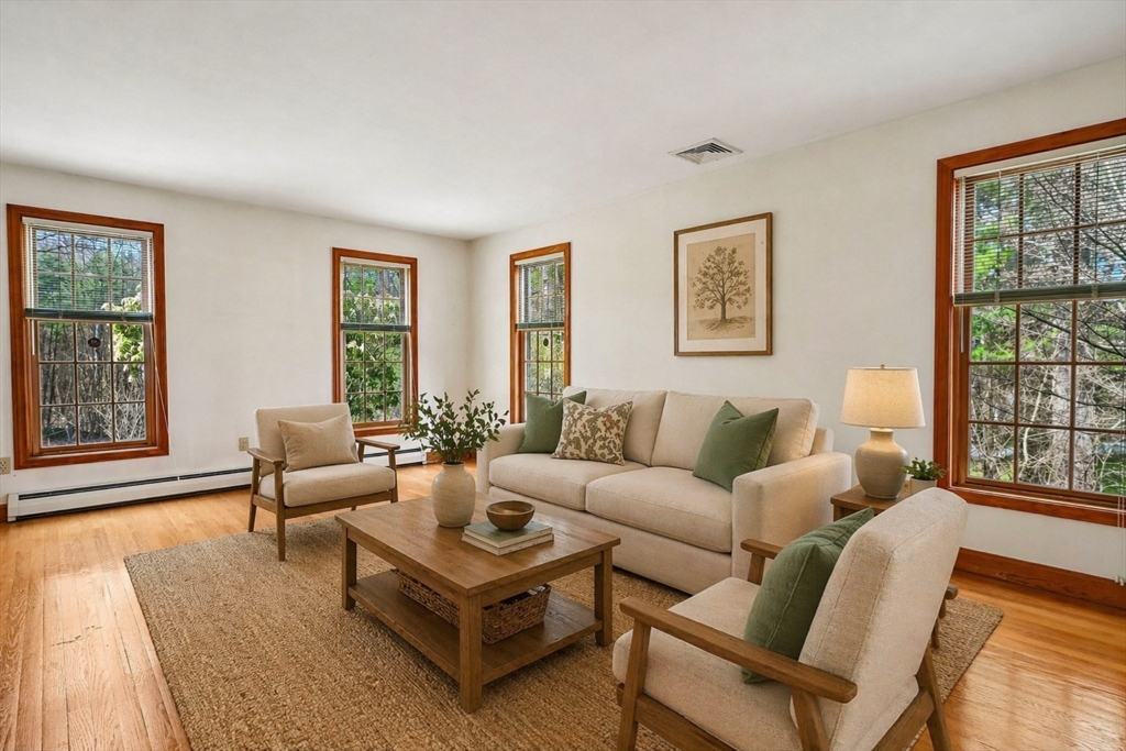 Welcome to this stunning 4-bedroom, 2.5-bathroom Colonial nestled on a serene lot in one of Georgetown's most desirable neighborhoods. Spanning 2,033 sqft of meticulously maintained living space, this home perfectly balances classic architectural charm with modern functionality. The heart of the home is an inviting floor plan featuring a spacious kitchen and family room centered around a working fireplace. Upstairs, the expansive primary suite serves as a private retreat, complemented by three generously sized bedrooms. For those seeking even more space, the unfinished lower level offers 1100+ sqft of opportunity to grow! Outside, the property shines with a paver patio, wooded backyard featuring a peaceful stream, ideal for summer gatherings. Recent upgrades include new HVAC and 200 amp electrical. Complete w/attached 2-car garage. Ideally Located just minutes from Route 128, North Shore's Top-rated Schools, pristine beaches,& local amenities.