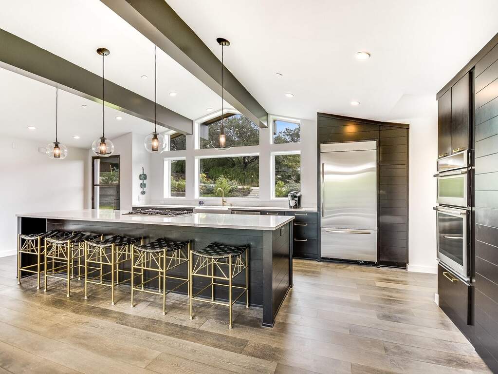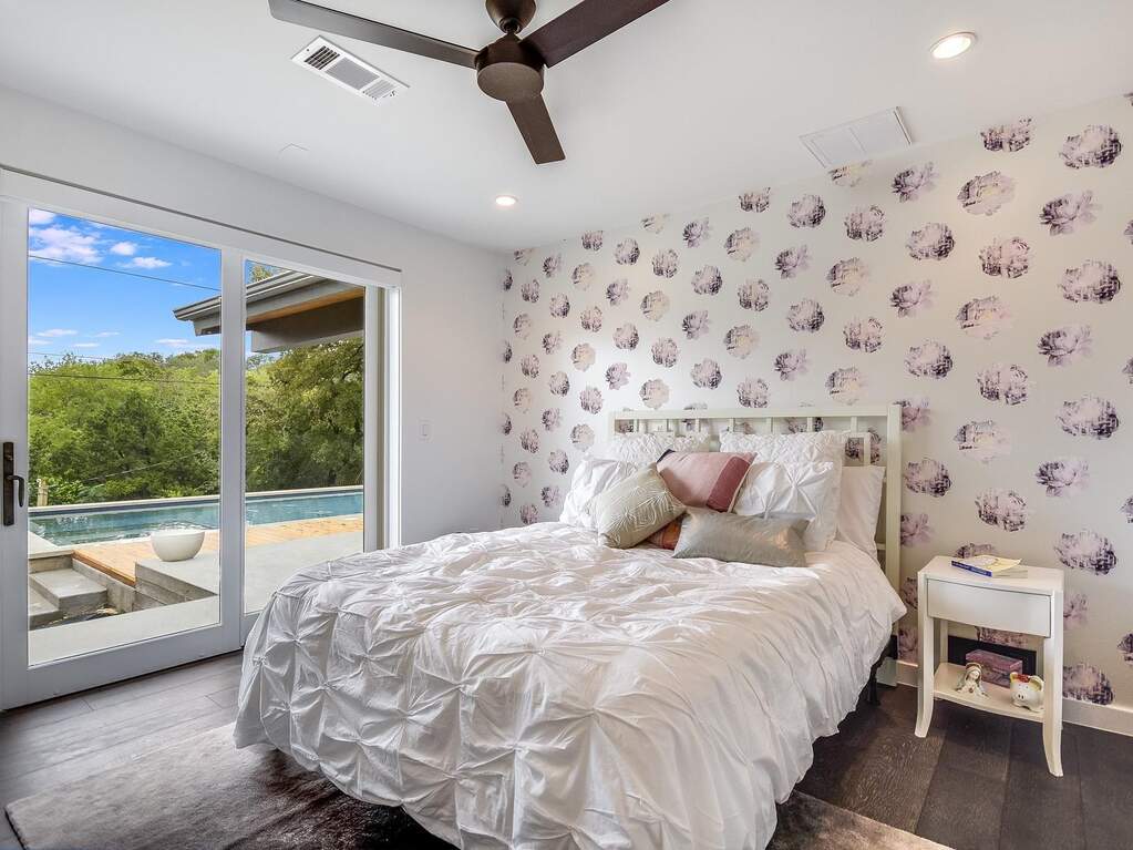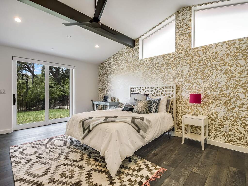 Mid-Century Modern Ranch home abundant in natural light. Enjoy a beautiful indoor/outdoor setting with pool and spa outdoor living area. Two Primary suites and a third ensuite bedroom, 4th bedroom has access to full bath. New finish out throughout with hardwood floors flow throughout bridging every inch of living space. The open-concept gourmet kitchen features stainless appliances wrapped in clean black cabinets and corian quartz countertops. Recessed lighting, designer light fixtures, large floor to ceiling windows with custom remote control blinds. The primary bedroom is a private sanctuary complete with a walk-in closet and hotel-inspired en-suite equipped with two modern double vanities, stand alone tub and vertical spa shower. Large gated backyard on beautiful corner lot. Walking distance to Lady Bird Lake, Zilker Park, shopping, restaurants and more.