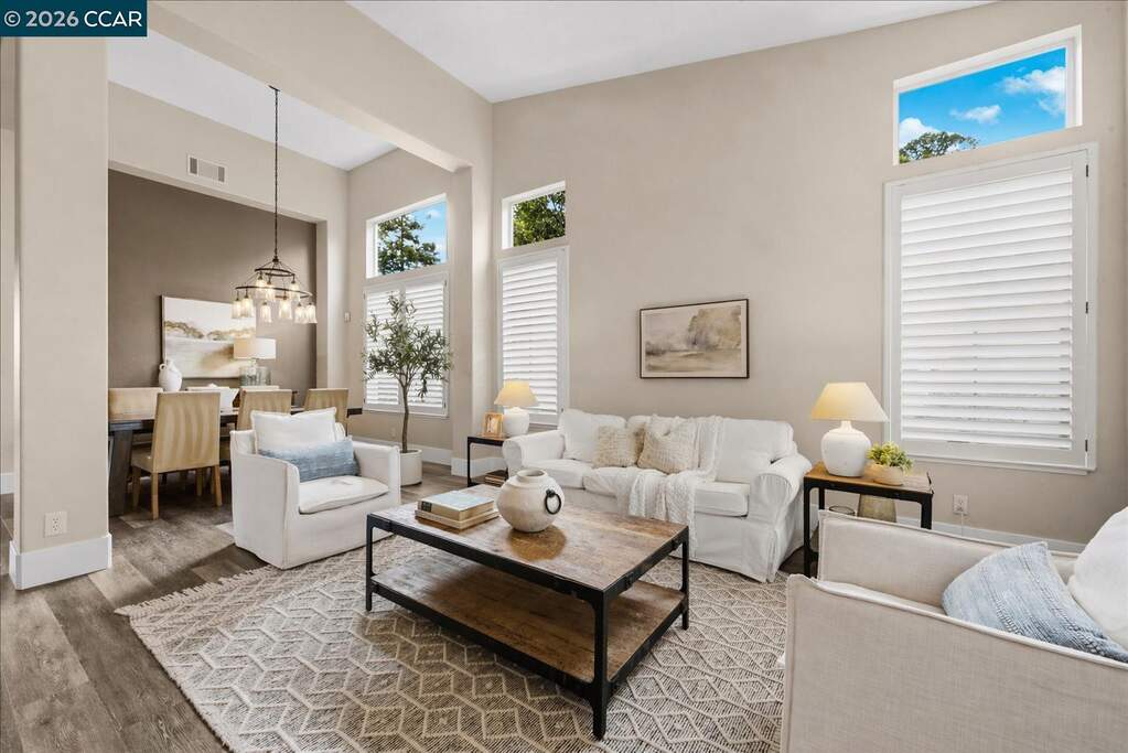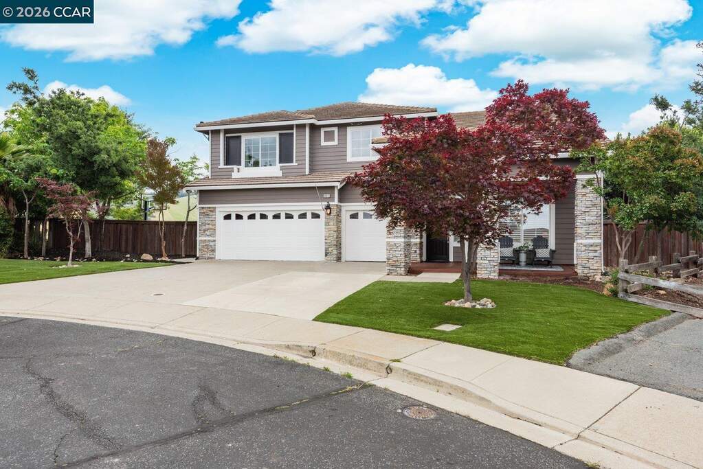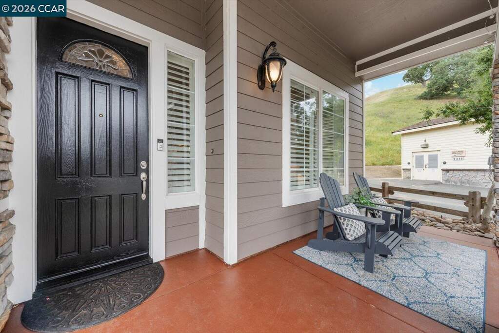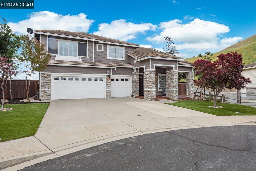 Welcome to 9013 Elk Drive in Clayton, a beautifully maintained 4-bedroom, 3-bathroom home offering 2,879 sq ft of comfortable living space, ideally situated on a quiet cul-de-sac. Step into a light-filled formal living and dining room featuring soaring ceilings, multiple windows, plantation shutters, and elegant vinyl plank flooring. The thoughtfully designed kitchen offers a breakfast bar, modern appliances including a recently upgraded dishwasher, stovetop, and Advantium oven, a generously sized pantry, and space for casual dining. French doors provide direct access to the backyard, while the adjoining family room features a striking fireplace and abundant windows, creating a warm and welcoming gathering space. The main level includes a bedroom and full bathroom, along with a convenient laundry room, offering flexibility for guests or multigenerational living. Upstairs, a versatile loft provides additional living, office, or flex space. The spacious primary suite serves as a private retreat, complete with a walk-in closet and beautiful hillside and Mt. Diablo views, with windows on two walls and a sliding door leading to a large private Trex deck. The en-suite bathroom features a soaking tub, double vanities, a large walk-in shower, and additional closet storage. Two secondary bedrooms share a well-appointed hall bathroom with double vanities and a tub. The backyard is designed for both entertaining and everyday enjoyment, featuring a large-paved patio area with an expansive covered structure spanning the back of the home, creating multiple shaded spaces for dining and lounging. Enjoy private hillside views, a sparkling pool (currently chlorine with option for saltwater), and a spa. An outdoor built-in barbecue with bar seating serves as a central gathering point, complemented by a small basketball court and low-maintenance landscaping with artificial turf and drought-tolerant plants. Recent upgrades include interior and exterior paint, remodeled bathrooms, updated HVAC, upstairs carpet, fencing, outdoor lighting, and fully owned solar. The pool system has also been fully updated, including sweep, heater, pump, lighting, tank, and filters. Enjoy the perfect balance of outdoor adventure and modern convenience, with nearby walking trails and a variety of shops and restaurants just a short drive away. With its serenity, sense of privacy and generous living space, this home offers an exceptional place to call home.