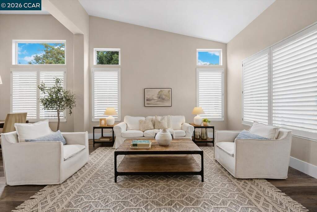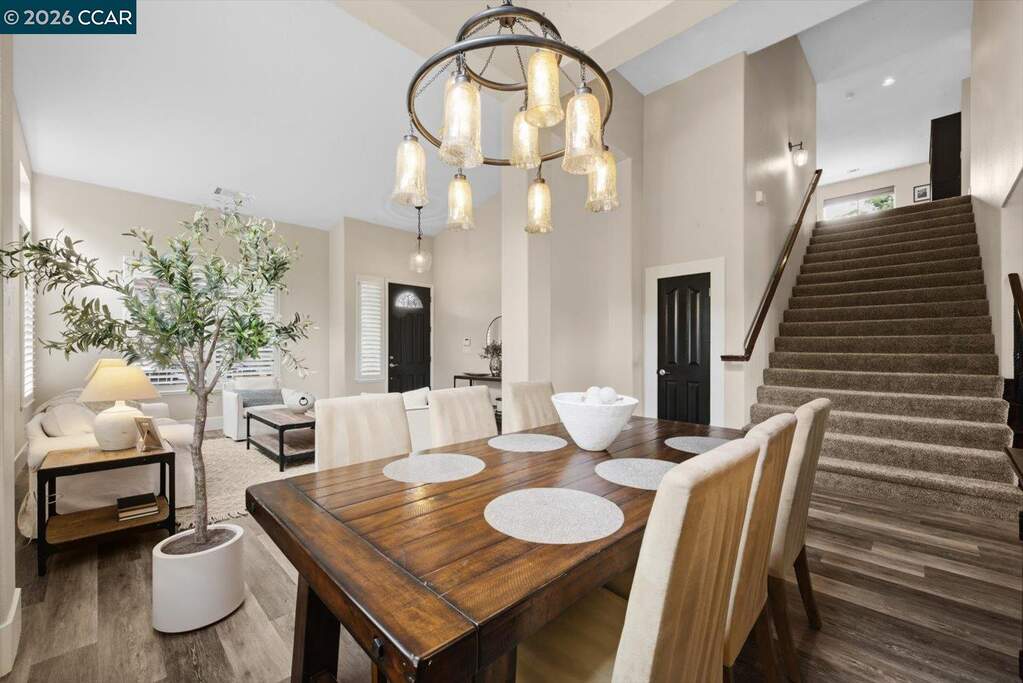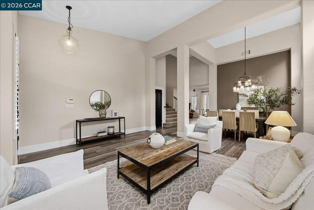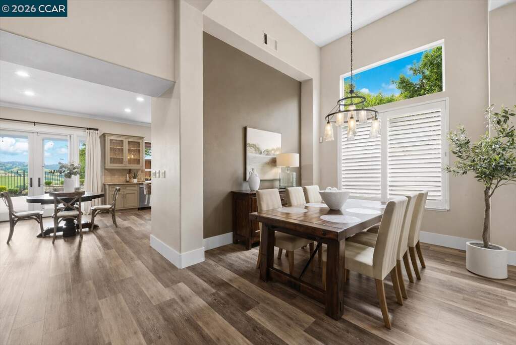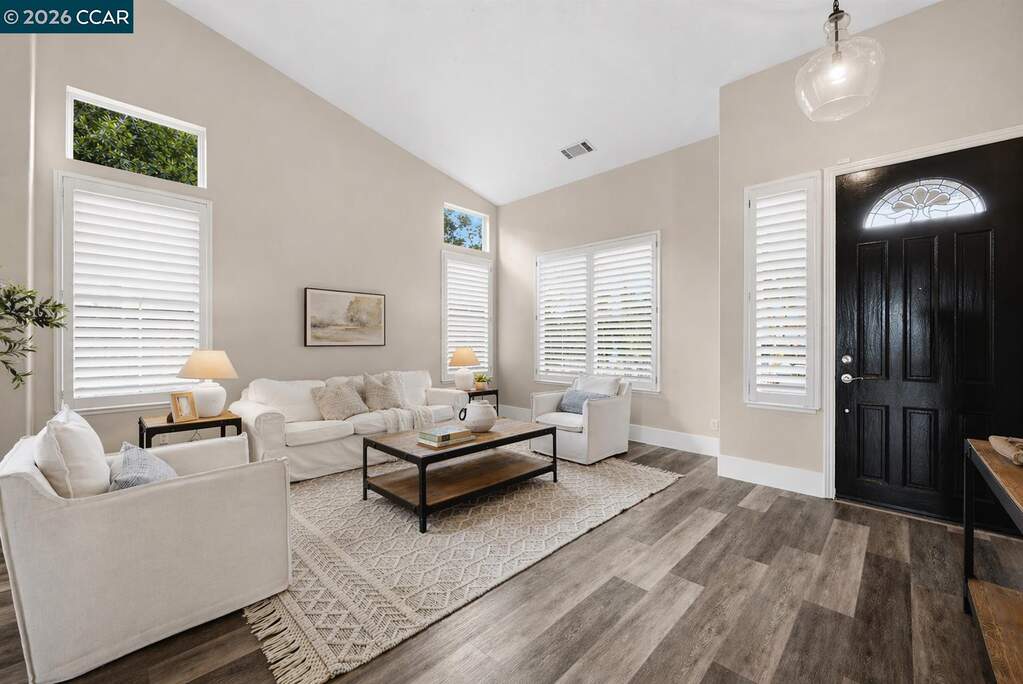 Welcome to 9013 Elk Drive in Clayton, a beautifully maintained 4-bedroom, 3-bathroom home offering 2,879 sq ft of comfortable living space, ideally situated on a quiet cul-de-sac. Step into a light-filled formal living and dining room featuring soaring ceilings, multiple windows, plantation shutters, and elegant vinyl plank flooring. The thoughtfully designed kitchen offers a breakfast bar, modern appliances including a recently upgraded dishwasher, stovetop, and Advantium oven, a generously sized pantry, and space for casual dining. French doors provide direct access to the backyard, while the adjoining family room features a striking fireplace and abundant windows, creating a warm and welcoming gathering space. The main level includes a bedroom and full bathroom, along with a convenient laundry room, offering flexibility for guests or multigenerational living. Upstairs, a versatile loft provides additional living, office, or flex space. The spacious primary suite serves as a private retreat, complete with a walk-in closet and beautiful hillside and Mt. Diablo views, with windows on two walls and a sliding door leading to a large private Trex deck. The en-suite bathroom features a soaking tub, double vanities, a large walk-in shower, and additional closet storage. Two secondary bedrooms share a well-appointed hall bathroom with double vanities and a tub. The backyard is designed for both entertaining and everyday enjoyment, featuring a large-paved patio area with an expansive covered structure spanning the back of the home, creating multiple shaded spaces for dining and lounging. Enjoy private hillside views, a sparkling pool (currently chlorine with option for saltwater), and a spa. An outdoor built-in barbecue with bar seating serves as a central gathering point, complemented by a small basketball court and low-maintenance landscaping with artificial turf and drought-tolerant plants. Recent upgrades include interior and exterior paint, remodeled bathrooms, updated HVAC, upstairs carpet, fencing, outdoor lighting, and fully owned solar. The pool system has also been fully updated, including sweep, heater, pump, lighting, tank, and filters. Enjoy the perfect balance of outdoor adventure and modern convenience, with nearby walking trails and a variety of shops and restaurants just a short drive away. With its serenity, sense of privacy and generous living space, this home offers an exceptional place to call home.