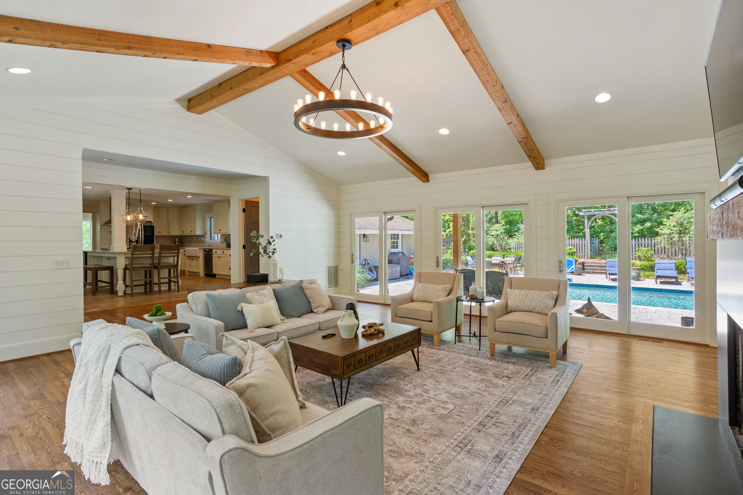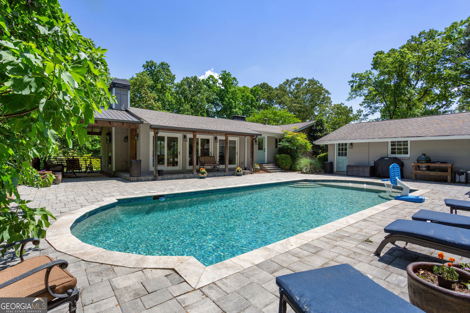 A rare, beautifully landscaped 2.5-acre property; this estate lives like a private retreat. It is thoughtfully designed for both everyday living and entertaining with a pool, sport court, and finished "party barn." The home offers over 5,000 square feet with 5 bedrooms and 4 full baths, plus a flexible layout ideal for multi-generational living. A classic four-sided brick exterior pairs with updated interiors, including a renovated kitchen with keeping room and dining area that flows seamlessly into an oversized great room with direct access to the pool and a fireside back porch overlooking the rolling lawn. The expanded layout features a spacious primary suite with a private office wing above that could be used for work from home, or an art/crafting studio. The fully finished basement includes a separate-entry in-law suite with a full kitchen, living area, bedroom, and bath. With both attached and detached garages for added storage or workshop space, and a location just minutes from Whitefield Academy, this property offers a rare blend of privacy, functionality, and convenience.
