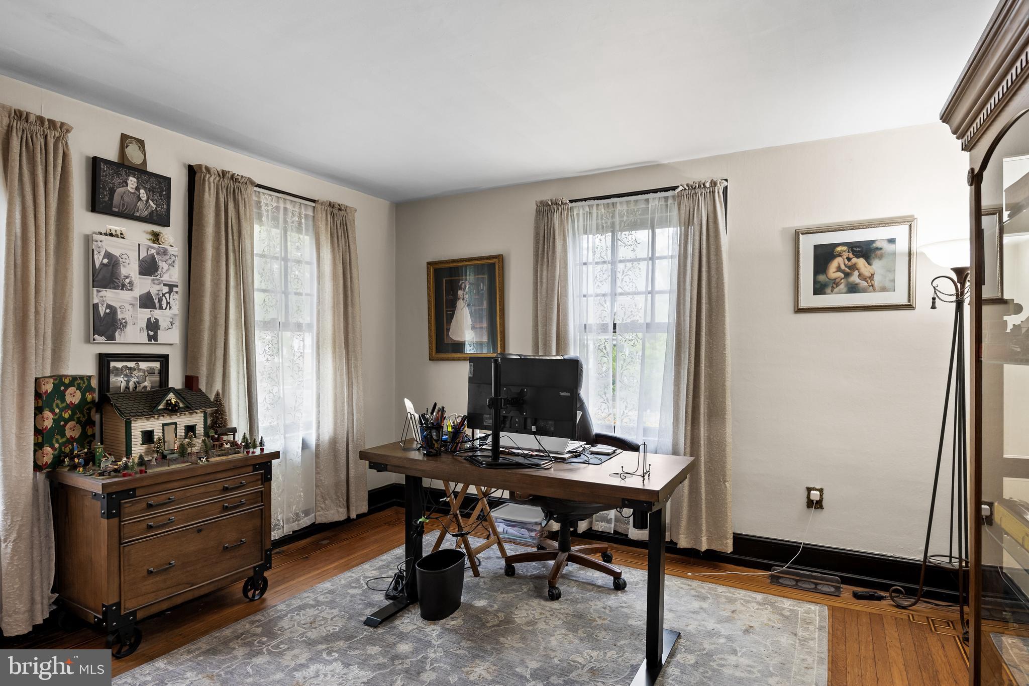 Step into a piece of History with this beautifully preserved and thoughtfully updated home! Built in 1890 and once the original hub of Shanahan's Express, where horse-and-carriage deliveries evolved into the age of automobiles, this property sits just a few lots from the town's "Community Center" - where you can partake in the community gardens, tennis courts, little league baseball, playground and of course rent out the center for showers, parties and fellowship! Rich with character and charm, this residence offers deceptively spacious rooms, timeless craftsmanship, and modern conveniences throughout. From the Inviting enclosed front porch to the expansive off-street driveway, the home's curb appeal is undeniably adorable. Inside, Original hardwood floors with intricate inlay set the tone, while the oversized Living Room, formerly separate parlor spaces now features an elegant arched detail that create a warm, open atmosphere. A versatile Den with dual French doors offers the perfect space for a home office or main-level bedroom. The formal Dining Room is generously sized and includes a dedicated china closet, ideal for entertaining. Just beyond, the recently updated Kitchen (2023) blends style and function with Quartz and butcher block countertop, stainless steel appliances, and a sunlit breakfast area that opens onto a large rear Deck complete with a sunshade, perfect for outdoor dining and relaxation. A convenient Half Bath and main-floor Laundry add to the ease of everyday living. Upstairs, you'll find 4 Spacious Bedrooms and an updated Full Bathroom with step in shower. The walk-up Attic presents exciting potential for a private suite, studio, or additional living space! Comfort is ensured year-round with 2-zoned Gas heating (lower level replaced in 2022) and Central Air (installed just 4 years ago) and hot water heater replaced in 2020. Original chestnut Woodwork throughout the home adds a touch of timeless elegance too! A standout feature is the MASSIVE 2 vehicle GARAGE originally designed with an electric setup and loading dock, making it an ideal space for car enthusiasts, artists, or hobbyists envisioning a workshop, studio, or even a golf simulator!! This one-of-a-kind property also includes a 1-year HSA home warranty with roof leak protection, offering added peace of mind. A rare opportunity to own a home where history and space come together while allowing plenty of Opportunity to continue to improve and put your own stamp on this property's history!